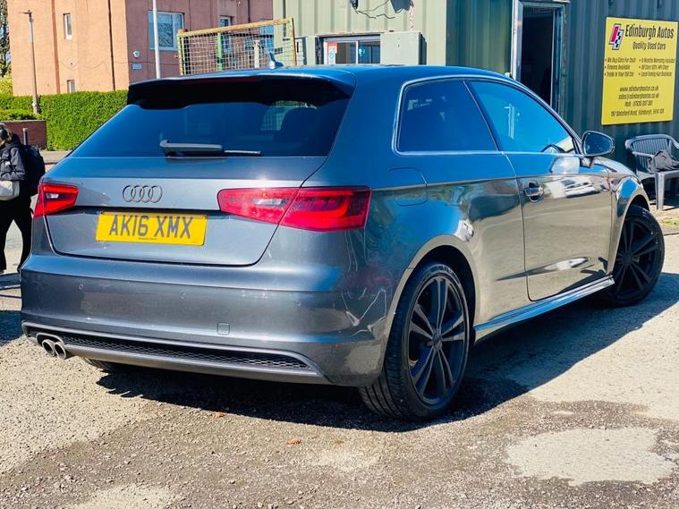 2016 AUDI A3 S-LINE 1.4 TFSI TURBO MANUAL. WOW LOOK AT THIS STORY BELOW. EURO 6 ULEZ COMPLIANT. ONLY 1 PREVIOUS OWNER. SAME MATURE OWNER FO RTHE LAST 6 YEARS. 35 ROAD TAX FOR 1 YEAR. 99998 MILES FROM NEW. STAMPED SERVICE HISTORY. TIMING BELT AND WATER PUMP CHANGED AT 81K MILES. WILL COME WITH FRESH SERVICE AT TIME OF SALE. MOT TILL 24TH OCTOBER 2026. WILL COME WITH NEW FRONT DISC AND PADS. DAB RADIO. PARKING SENSORS. 2 X KEYS. SAT NAV. CRUIS ECONTROL. SLASH CUT STEERING WHEEL. HALF LEATHER SEATS. LIST GOES ON. Free 6 Months* National Comprehensive Warranty Included. Free 12 Months* AA National Breakdown Cover Included. Finance option available. Part Exchange Welcome. Nationwide Delivery Available. Video Viewings Available. 100% HPI Clear. *Under 5k cars come with 3 months warranty and breakdown cover. Good quality, reliable used cars for sale at an extremely fair price in Edinburgh in West Lothian.