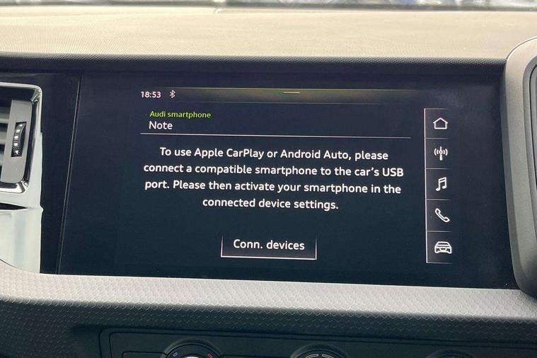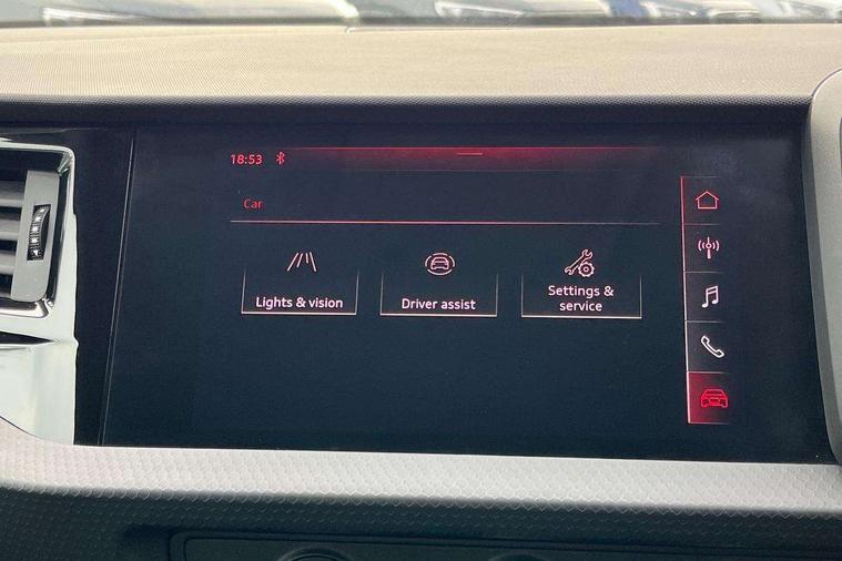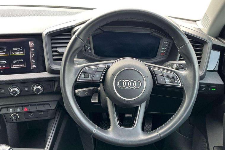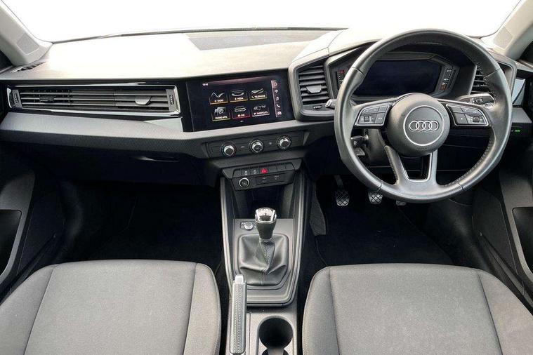 Black inlays polygon structure, Luggage compartment pack - A1, 15" 5 arm design alloy wheels, Anti theft alarm, Anti theft wheel bolts and loose wheel warning, Audi pre-sense front with pedestrain and cyclist recognition, Immobiliser, Remote central locking with 2 foldaway keys, 1 x SDXC card reader, 1 x USB type C and 1 USB type A charging points, 6 passive loudspeakers, DAB Digital radio, MMI radio plus with 8.8" colour MMI display screen and MMI touch, 3x3 point rear seatbelts, Brake assist function, Driver and front passenger airbag with front side and head airbags, Electronic Stability Control including ABS, EBD, ASR and EDL, Front and rear seatbelt reminder, Front passenger airbag deactivation switch, Hill hold assist, Seatbelt height adjustment for front seats, Seatbelt monitoring, Tyre pressure warning light, Warning triangle and first aid kit, Auto dimming rear view mirror, Body coloured bumpers, Body coloured door mirrors, Electric front and rear windows, Electrically adjustable, heated, folding door mirrors with integrated LED side indicator, Front side air inlets with front spoiler lip and rear diffuser in matt black grained, Heat insulating glass windscreen and side windows, Heated rear windscreen, LED headlights with LED rear lights + dynamic rear indicators + headlight adjustment and high beam, turning light + LED daytime running lights, Radiator grille in matt black, Rain and light sensors, Rear fog lights, Rear wiper, 12V socket in centre console with two cup holders, 3 rear seats with headrests, 3 spoke leather multifunction plus steering wheel, 40:60 Split folding rear seat or folded fully, Air vents, door handle recesses and centre console in black, Delta cloth upholstery, Driver and passenger seat with manual height adjust with forward and backwards adjustment, Front head restraints, Front/rear floor mats, ISOFIX child seat mounting for front passenger and outer rear seats including top tether attachment point of outer rear seats, Leather gear knob with aluminium trim, Leatherette handbrake grip, Luggage compartment light with front and rear reading lights, Manual air conditioning, Titanium grey cloth headlining, 10.25" Digital instrument cluster display classis style instrument dials + speed, odometer, time, outside temperature, telephone menu + fuel level warning, Audi connect safety emergency and service including E-call, Audi smartphone interface with connect compatible smartphone via USB directly MMI display + Nav, music, third party apps controlled via MMI controller, Automatic start/stop system, Bluetooth interface, Driver's information system, Electromechanical power steering, Lane departure warning system, Service interval indicator, Speed limiter, Voice control system, Washer fluid level indicator, Dynamic suspension,