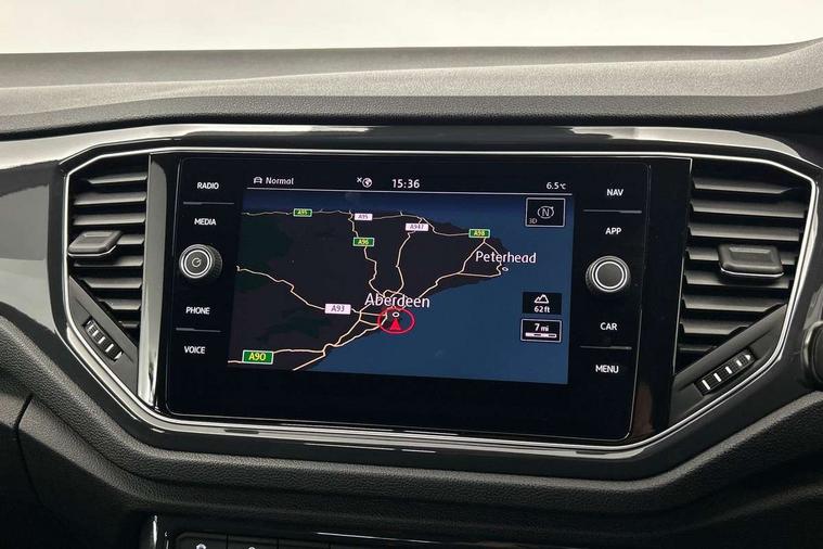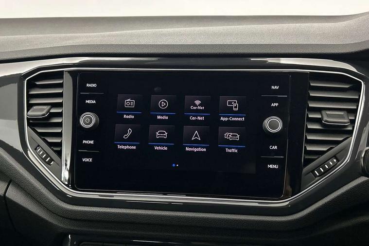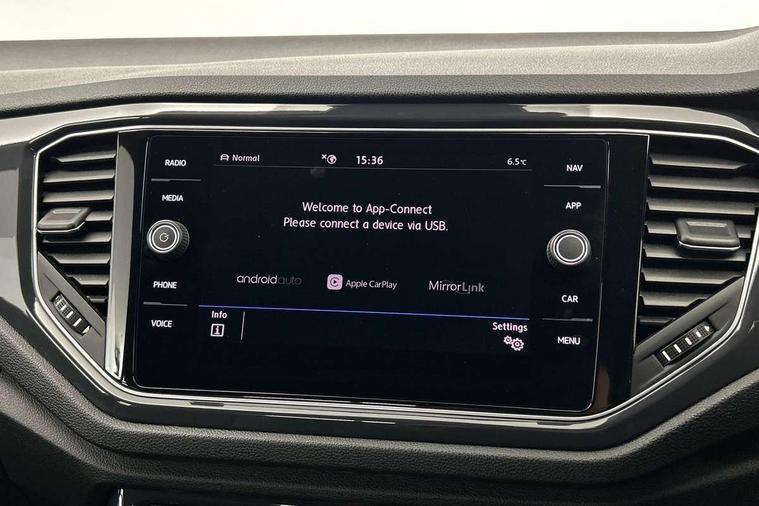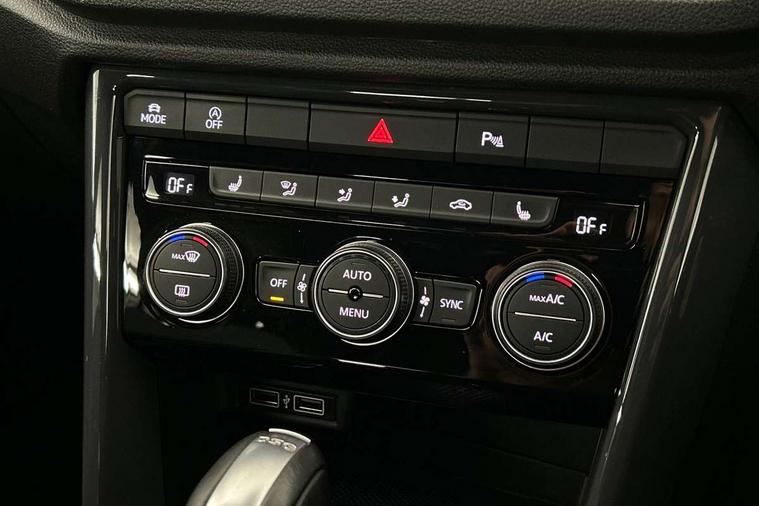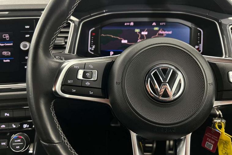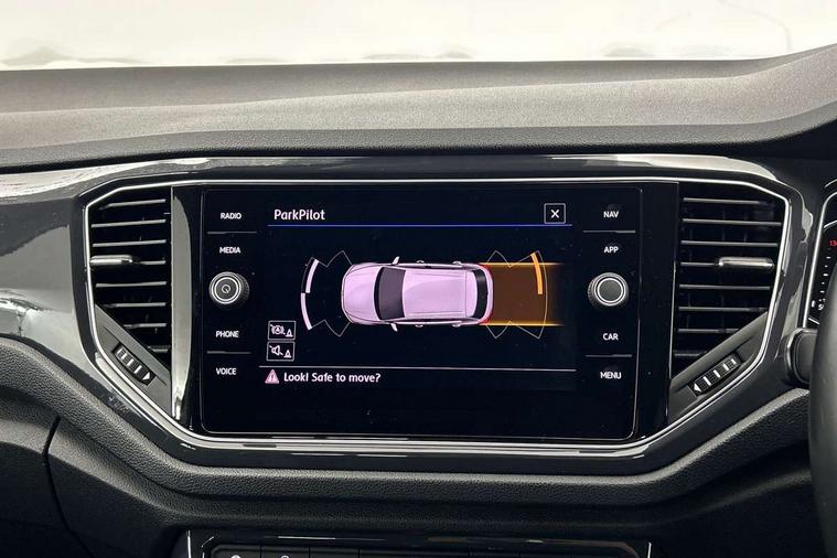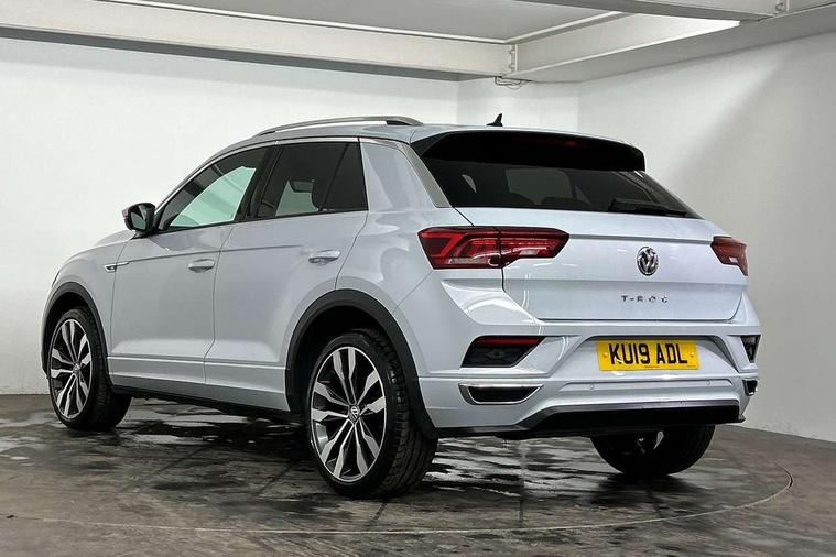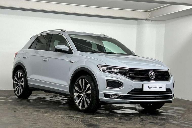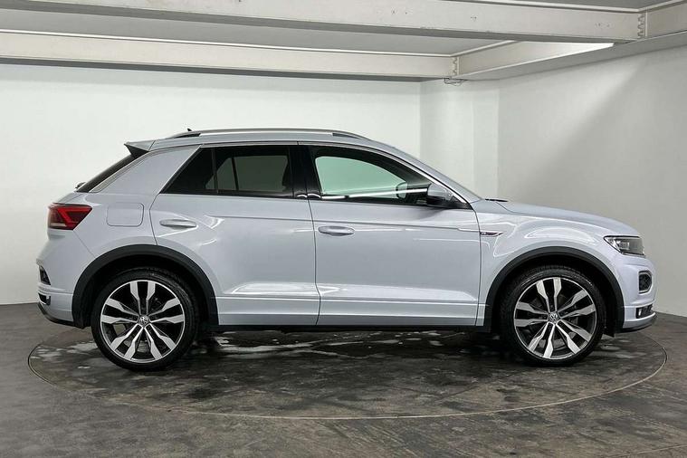Shadow steel decorative inserts in dash and door panel, R line styling pack - T-Roc, Winter pack - T-Roc, 19" Suzuka alloy wheels with low rolling resistance tyres and anti wheel bolts, Steel space saver spare wheel, Alarm with remote central locking and interior protection, Electronic engine immobiliser, Remote central locking with 2 remote folding keys, Bluetooth - Simultaneous pairing of 2 compatible mobile devices, DAB Digital radio, Dynamic navigation based on TMC+, Multi device interface (MDI) with USB connection, Music playback - MP3, WMA and AAC files, Premium USB cable in choice of either Apple or Android smartphone compatibility, SD card slot, SMS functionality - read, compose and send SMS messages using touch-screen display, Three route options - Fast, Short, Eco, Title and cover art display, 3 rear three point seatbelts, ABS, Driver and front passenger safety-optimised head restraints, Electronic parking brake with auto hold, ESC with EDL, ASR, EDTC and trailer stabilisation function, Front and rear curtain airbags, driver and front passenger airbags with passenger deactivation switch and front side impact airbags, Rigid safety cell with front and rear crumple zones, Three point height adjust front seatbelts + pretensioners, Tyre pressure loss indicator, Ventilated front and rear disc brakes, Volkswagen roadside assistance, Auto dimming interior rear view mirror, Automatic hazard lights activation under emergency braking, Black grained lower door protectors, Black grained wheel arches, Body colour door handles, Body colour rear roof spoiler, Chrome effect left and right trapezoid exhaust tailpipe fascia surround, Chrome trim on upper and lower radiator grille, Door mirror integrated indicators, Electrically foldable, adjustable and heated door mirrors with puddle lights and reverse activated kerb-view adjustment on passenger's door mirror, Front and rear electric windows, Front fog lights with static cornering function, Front windscreen wiper with intermittent wipe and 4 position delay, Fully galvanised body, Heated rear window, High level 3rd brake light, LED darkened rear light clusters, LED rear number plate lights, Manual coming/automatic leaving home lighting function, Rain sensor, Rear tinted glass from B-pillar backwards approx 65% tinted, Rear windscreen washer and wiper with interval delay, 12V socket in centre console storage area, 2 LED front and rear reading lights, 3 rear head restraints, 4 load lashing points in luggage compartment, Aluminium pedals, Ambient lighting in front footwell and light strips below trim in front doors, Black decorative sleeve on gear handles, Black roof lining and sun visors, Carbon flag cloth upholstery, Climate control - 2 zone electronic air conditioning with automatic air recirculation and allergy filter, Drawer under drivers seat, Front + rear carpet mats, Front centre armrest with storage compartment, longitudinal and height adjustable and two rear air vents, Front cupholders x 2, Front footwell illumination, Front seat back storage pockets, Front sport seats, Glovebox, Height adjustable front seats, Height/reach adjust steering wheel, Illuminated vanity mirrors, Instrument lighting, white adjustable panel illumination, Interior light delay, Isofix easy fit child seat preparation for 2 outer rear seats, Load through provision with single cup holder when folded down, Luggage compartment cover, removable, Luggage compartment lighting, R Line badge, Split folding rear seat backrests with centre armrest, Storage compartment in left and right luggage area, Storage compartment in rear doors, Storage compartments in driver and front passenger doors, Three spoke multi function leather trimmed steering wheel and gear knob including paddle shift, Unique R Line door sill protectors, App-Connect, 2 USB connection charging sockets, Active Info Display, 10.3" high resolution TFT dash display screen with customised information, Adaptive cruise control, Automatic start/stop system, Bluetooth telephone and audio connection for compatible devices, Car information display, Car-Net Security and Service, Discover navigation, 8" touch screen navigation/infotainment system with Car-Net, European map, CD/radio, 2D/3D map and speed limiter, Driver alert system with audible and visual fatigue detection system, Driver profile selection, Dusk sensor, Front assist, radar sensor controlled distance monitor, city emergency braking + predictive pedestrian protection, Lane assist, Multifunction computer with visual gear change recommendation for fuel consumption, Progressive power assisted steering, Service interval indicator, Think blue trainer driver tips and journey analysis, Voice activation, Warning sound and light for doors and tailgate open, Warning sound and light for front seatbelts unfastened, Battery regeneration during braking, Misfuel prevention device for diesel engine,