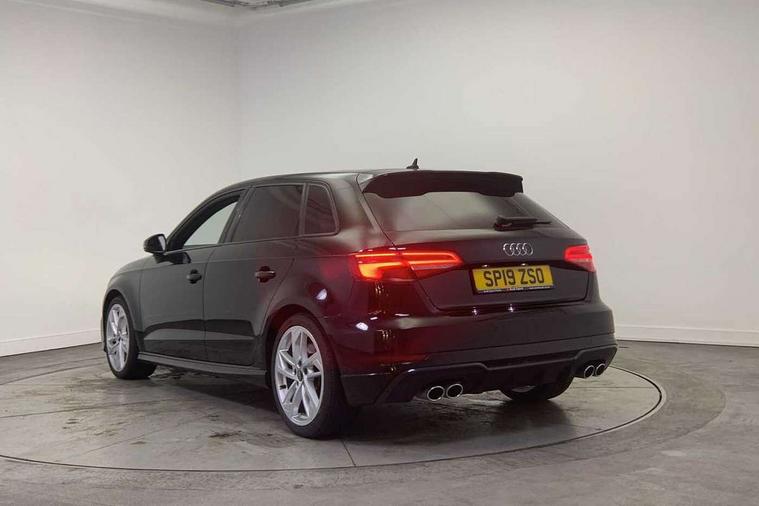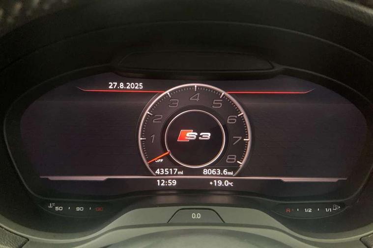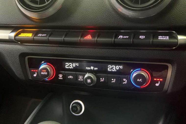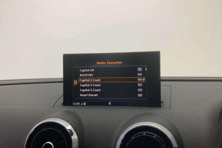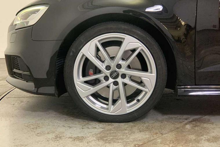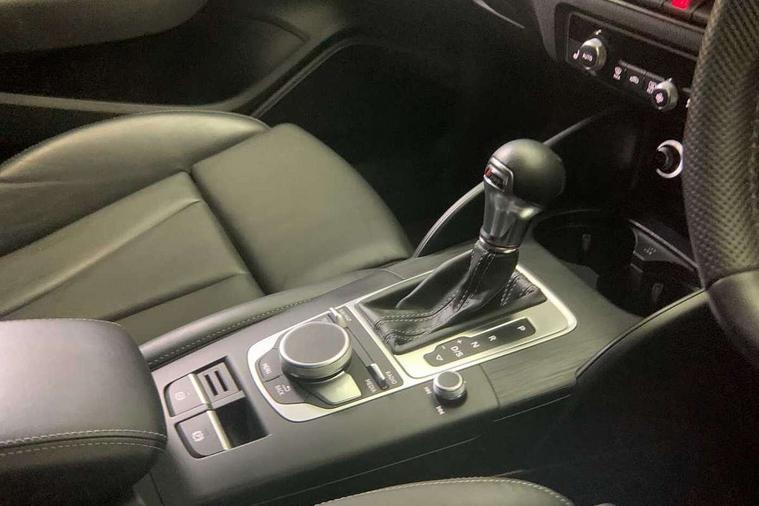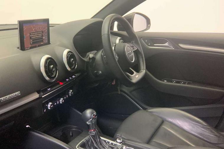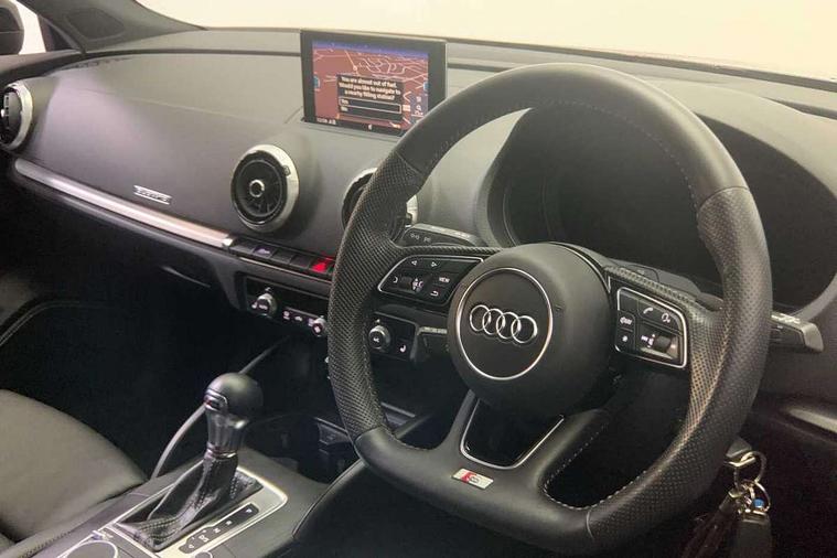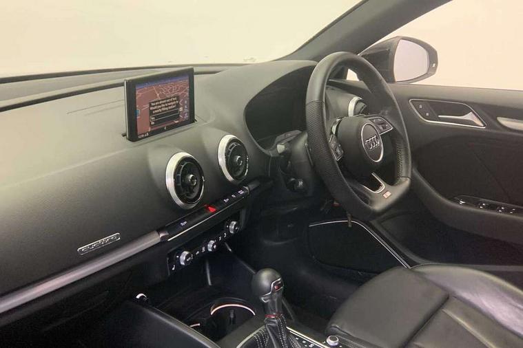 Aluminium air vent surrounds, Aluminium trim elements, Matt brushed aluminium inlays, Black styling pack - A3/S3, LED interior light pack - A3/RS3, Non smoking pack - A3, Storage and luggage pack - A3/RS3, Tyre repair kit, Anti theft alarm, Anti-theft wheel bolts, Remote control central locking, Thatcham category 1 alarm + immobiliser, 2 USB interfaces and Aux-In jack, Audi music interface, Bang and Olufsen sound system, CD player, DAB Digital radio, MMI radio plus with 7" colour MMI screen and MMI controller, 3 point seatbelts on all seats, ABS/EBD, Active bonnet, Active front headrests, Airbags - front driver/passenger, front & rear side, curtain, drivers knee, ASR, EDL, Electromechanical parking brake, ESC - Electronic Stability Control + traction control, Front passenger airbag deactivation, Hill hold assist, Manual rear child locks, Multi-Collision braking, Seatbelt warning, Tyre pressure warning, Warning triangle and first aid kit, Audi Beam uses LEDs to project the Audi Sport logo, Auto dimming rear view mirror with light and rain sensors, Black door mirrors, Body colour roof spoiler with aerodynamic inserts in high gloss black, Electric front windows, Electric rear windows, Electrically adjustable and heated door mirrors with integrated LED side indicators, Headlight washers, Heated windscreen washer jets, LED daytime running lights, Privacy glass - dark tinted rear and rear side windows from B-pillar backwards, Rear wiper, Sport specific side air inlet grille and diffuser insert, Twin oval chrome trimmed exhaust tailpipes, 3 adjustable rear headrests, 4 lashing points to secure luggage, Adjustable front centre armrest, Black cloth headlining, Dual zone electronic climate control, Front and rear interior lights with delay, Front/rear floor mats, Glovebox light, Heated front seats, Height and reach adjustable steering wheel, Illuminated door sill trims with S logo, Isofix child seat preparation for front passenger/outer rear seats inc passenger airbag deactivation, Stainless steel pedals, Storage compartments in doors side trims, centre console and under front drivers seat, Tool kit, Audi connect, Audi drive select, Audi smartphone interface, Automatic start/stop system, Colour driver's information system display, Instrument dials with S3 logo, Mobile telephone preparation - bluetooth interface, Progressive power assisted steering, SD card based satellite navigation system, Service interval indicator, Speed limit display, Voice control system, Voice recognition for navigation system, S sports suspension,