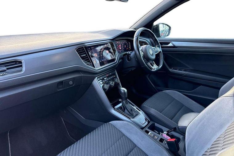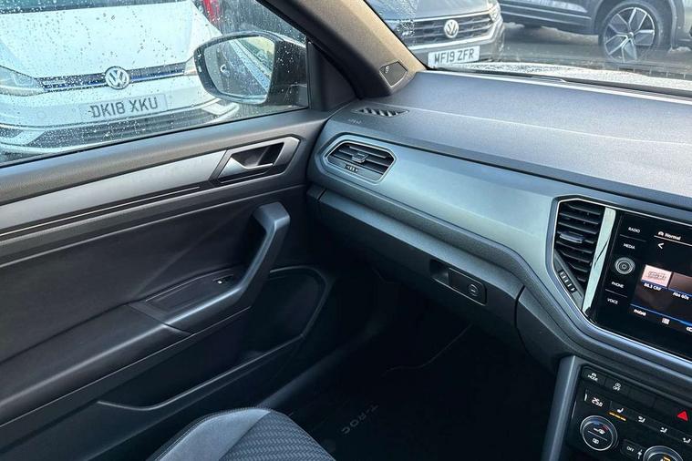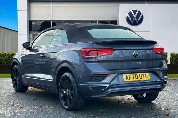 Shadow steel matt decorative inserts in dash and door panel, Alarm with interior protection and deactivation via infotainment system, Electronic engine immobiliser, Bluetooth - Simultaneous pairing of 2 compatible mobile devices, DAB Digital radio, Diversity antenna for FM reception, Front USB type C Interface 2X and USB charging socket, Music playback - MP3, WMA and AAC files, SMS functionality - read, compose and send SMS messages using touch-screen display, Title and cover art display, WeConnect plus, 2 x 3-point rear seat belts, ABS, Autonomous emergency braking, Driver and front passenger safety-optimised head restraints, Driver/Front Passenger airbags, Drivers seatbelt reminder, Electronic parking brake with auto hold, Electronic stability control (ESC) includes ASR, EDL, EDTC and trailer stabilisation function, Front passenger airbag deactivation, Front side airbags, Pedestrian monitoring, Rigid safety cell with front and rear crumple zones, Single tone horn, Three point height adjust front seatbelts + pretensioners, Tyre pressure monitor, Ventilated front and rear disc brakes, Volkswagen roadside assistance, Auto dimming interior rear view mirror, Automatic hazard lights activation under emergency braking, Automatic headlamp activation with manual coming home and automatic leaving function, Black door handles, Body colour rear roof spoiler, Body coloured comfort bumpers, Chrome effect left and right trapezoid exhaust tailpipe fascia surround, Chrome trim on upper and lower radiator grille, Darkened LED tail lamp, Electrically power adjustable, heated, folding, auto dimming, front passenger exterior door mirror lowering function, Front and rear electric windows, Front fog lights with static cornering function, High level 3rd brake light, LED dipped and main beam headlights with automatic range adjustment including signature LED daytime running lights, LED rear number plate lights, Power operated canvas convertible top, Rain sensor, Rear fog lamp, Volkswagen roundel, Windscreen wiper with intermittent wipe light, 12V socket in centre console storage area, 2 front reading lights, 50/50 rear seat bench split folding rear seat backrests, Brushed stainless steel pedals, Chrome plated radiator grille inserts, air vent surrounds and light switch surrounds in interior, Climate control - 2 zone electronic air conditioning with automatic air recirculation and allergy filter, Entry aid easy entry (Front folding seats), Front + rear carpet mats, Front centre armrest, Front cupholders x 2, Front seat back storage pockets, Front sports comfort seats with manual height adjustment, Glove Compartment with light, Height/reach adjust steering wheel, Illuminated vanity mirrors in sun visors with air bag label on sun visor and b-pillar, Instrument lighting, white adjustable panel illumination, Interior light delay, Interior light in footwell, Interior white ambient lighting and surround lighting, Isofix easy fit child seat preparation for 2 outer rear seats, leather wrapped multi functional sports steering wheel with paddle shift, Luggage compartment lighting, Power adjustable lumbar support in front, Rear head restraints, Scuff plates in door apertures, Storage compartments in driver and front passenger doors, 8" colour touch screen, Active Info display 10.25" high resolution TFT dash display with customisable menu and information, Adaptive cruise control, Bluetooth telephone and audio connection for compatible devices, Brake pad wear indicator, Car information display, Driver alert system with fatigue detection, Driver tips and journey analysis, Dusk sensor, Dynamic road sign display, Emergency call service, Front assist, radar sensor controlled distance monitor, city emergency braking + predictive pedestrian protection, Lane assist with warning text instrument cluster, Mobile phone interface, Modified key software - reduce switch off time for key status change to Long no motion, Multifunction computer with visual gear change recommendation for fuel consumption, Navigation system discover media including streaming and internet, Online services, Progressive power assisted steering, Service interval indicator, Start/stop system with brake energy recovery, Wired and wireless app connect,