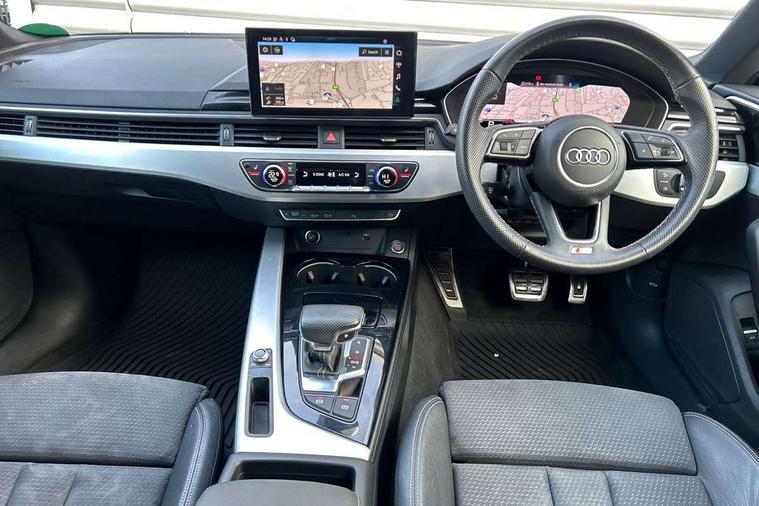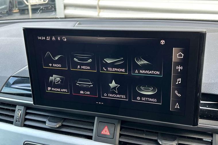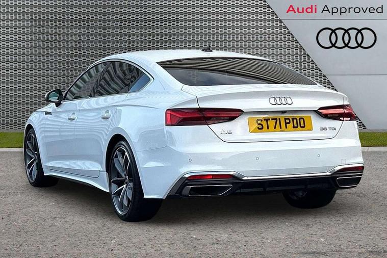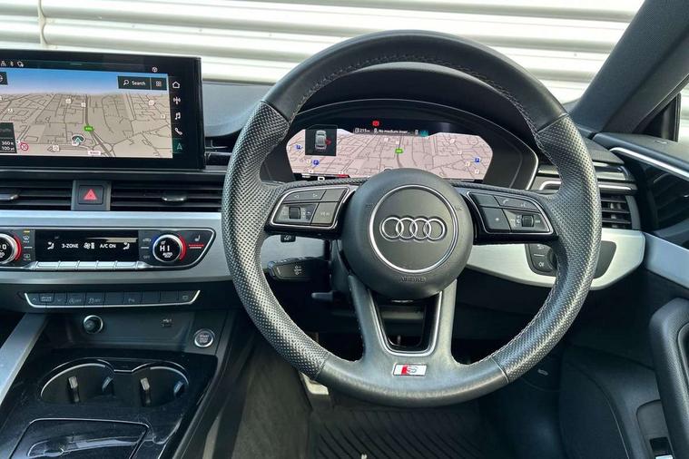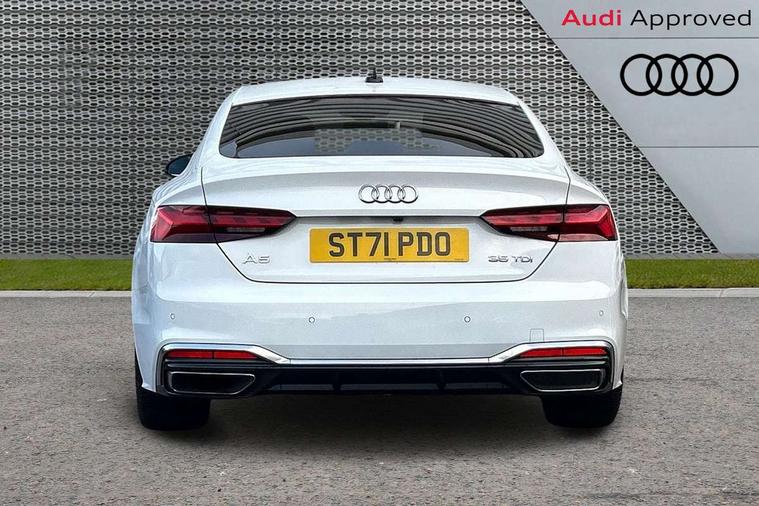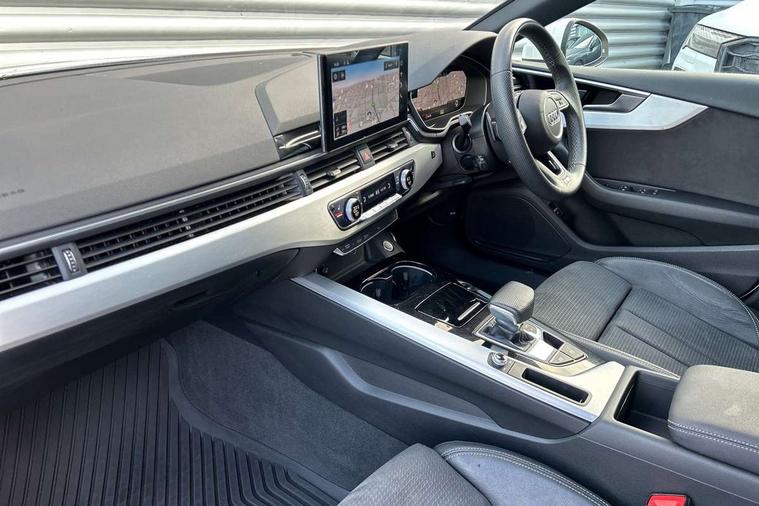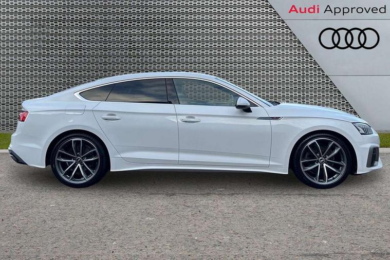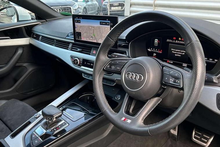 Matt brushed aluminium inlays, LED interior light pack - A5/RS5, Tyre repair kit, Anti theft alarm system, Anti theft wheel bolts, Immobiliser, Keyless Go, Remote central locking, 8 passive loudspeakers, CD player, DAB digital radio reception, Two additional USB ports for rear passenger in rear centre console, Two SDXC card slots, 3x3 point rear seatbelts, 6 airbags - Driver, front passenger, curtain and side airbags, Electromechanical parking brake, Electronic Stabilisation Control (ESC) including ABS, ASR and EDL, Front passenger airbag deactivation, Height adjustable front seatbelts, Hill hold assist, Multi collision brake assist, Pop-up bonnet for pedestrian protection, Pre sense city, Seatbelt monitoring, Tyre pressure warning, Variable restraint system, Warning triangle and first aid kit, Audi matrix LED headlights with LED rear lights + dynamic front and rear indicators, Auto dimming rear view mirror, Body colour bumpers, Body colour door handles, Body colour front spoiler lip, Body colour side sill trim, Body coloured door mirrors, Electric adjustable heated door mirrors, Electric folding door mirrors, Electric front windows, Front fog lights, Honeycomb structure radiator grille in grained matt black, LED daytime running lights, LED third brake light, Matt aluminium silver tailpipe trim, Privacy glass, Rain and light sensors, Rear side wing doors, S line badges on front wings, S line front and rear bumpers with side skirts, S Line rear diffuser in matt titanium black with trim strip in matt aluminium silver, Side air inlets in grained matt black with matt aluminium silver inlay, Variable front intermittent wipers, Windscreen with acoustic glazing, 4 way electric lumbar support for driver and front passenger, 40/20/40 split folding 3 seater rear bench seat, Adjustable steering column, Black cloth headlining, Black perforated leather gearknob, Contrast stitching on seats, steering wheel and gear lever gaiter, Deluxe 3 zone electronic climate control, Front centre armrest, Front head restraints, Front/rear floor mats, Heated front seats, Illuminated door sill trim with S logo, ISOFIX child seat mounting and top tether, Luggage compartment mat, Manual seat adjustment, Rear headrests, Single front passenger seat, Stainless steel pedals, Sunvisors with vanity mirrors, Tool kit, Audi connect safety and service (e-call), Audi connect with Amazon Alexa Integration, Audi drive select (Auto, Comfort, Dynamic, Efficiency and Individual), Audi parking system plus with front and rear sensors, Audi smartphone interface, Audi virtual cockpit - 12.3" full colour digital instrument cluster, vehicle/engine speed, 3D navi map, Radio/media information+Driver assistance systems, Automatic start-stop system with coasting functionality and efficiency programme, Bluetooth interface, Electro-mechanical power steering, Email, calendar and text messages displayed via MMI, MMI nav+ with MMI touch - 10.1" high resolution MMI display, touch sensitive, 3D map, route/country info, dynamic route guide, personal route assist, Power operated tailgate, Rear view camera, Service interval indicator, Voice control system, Diesel particulate filter, Sports suspension lowered by 23mm,
