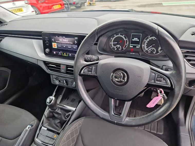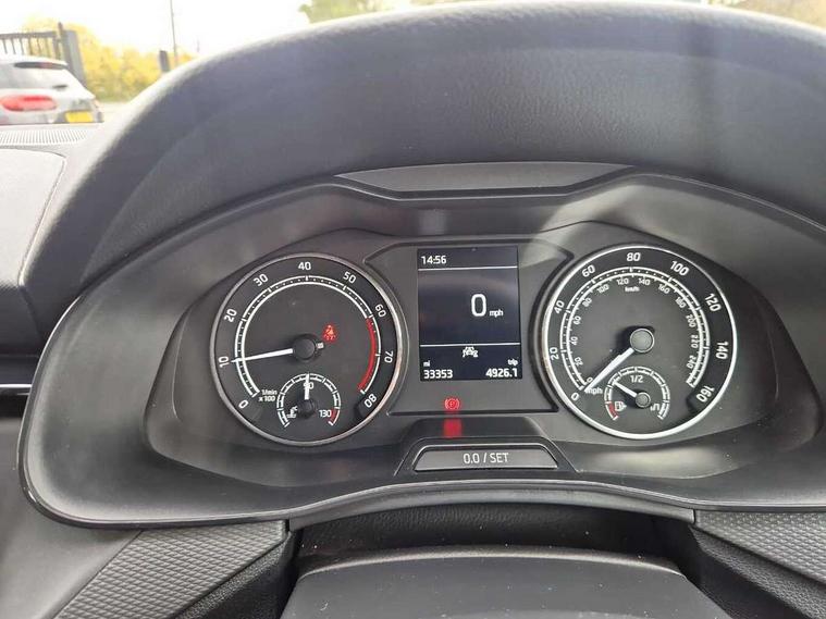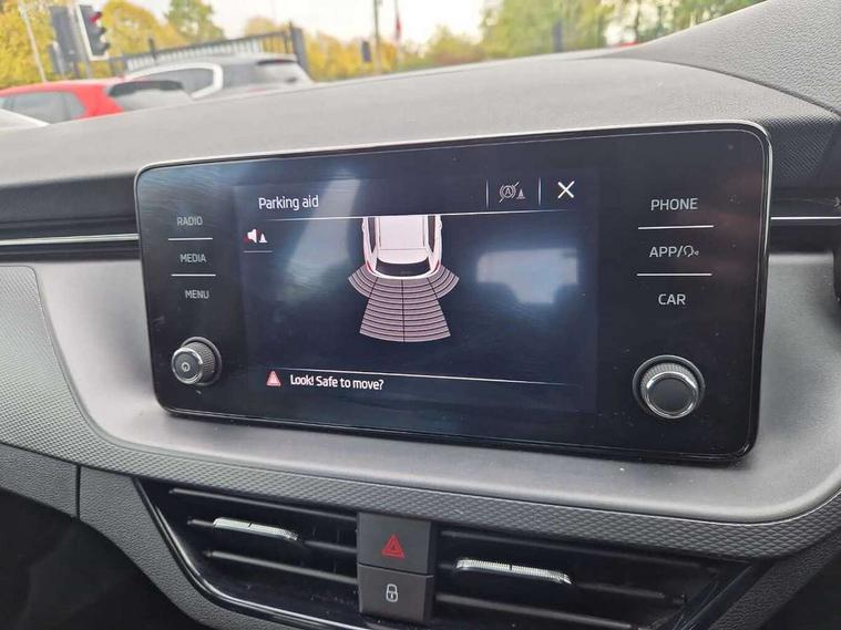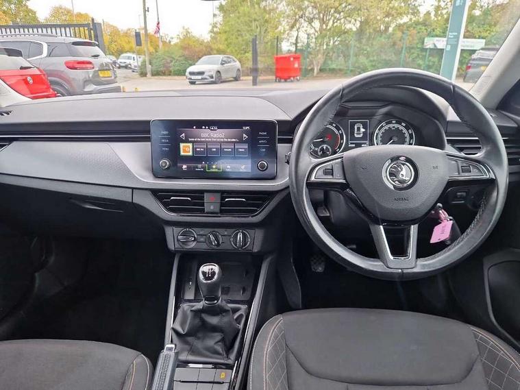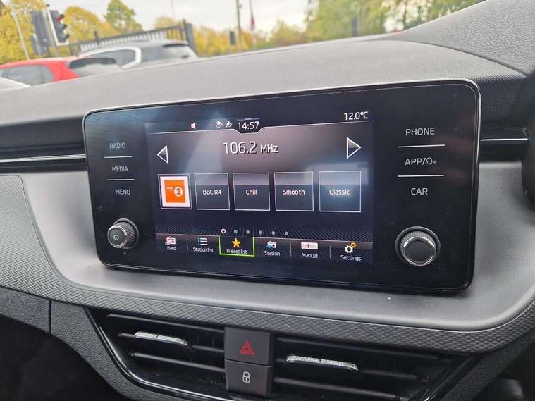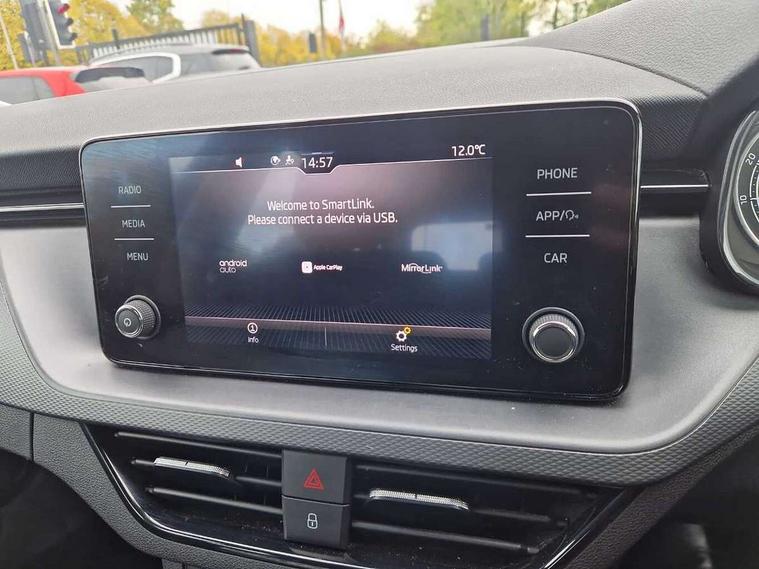 Alarm with interior monitoring, back up horn and tilt sensor with safe function and towing protection, Anti-theft wheel bolts, Immobiliser, Remote central locking with SAFE system, 2 USB - C ports with 1x adaptor cable, 8 speakers, Auxiliary input socket, DAB Digital radio, 3x3 point rear seatbelts, Airbags - driver and front passenger, ESP, Front passenger airbag deactivation switch, Front side airbags with curtain airbags, Hill hold control, Manual parking brake, One tone horn, Rear disc brakes, Seatbelt reminder for driver an co-driver, Traction control, Tyre pressure monitor, Auto dimming rear view mirror, Body colour bumpers, Body colour door mirrors and handles, Chrome grille surround, Electrically adjustable and heated door mirrors, Front and rear electric windows, Headlight range control, Heated rear window, Light and rain sensors, Rear fog lights, Rear wiper, 12V Accessory socket in centre console, Chrome inner door handles, Front head restraints, Glove compartment with illumination, Ice scraper, Isofix child seat fittings on outer rear seats, ISOFIX on front passenger seat, Manual lumbar support for front seats, Rake/reach adjustable steering wheel, Reading lights for driver and front passenger, Sun visor with make up mirror for front passenger, Textile floor mats, Third rear headrest, Top tether for front passenger seat, Umbrella in driver's door, Bluetooth system, E-call, Front assist system, Lane assist, PAS, Service indicator, Speed limiter, Trip computer, Wireless SmartLink for Apple Car Play,