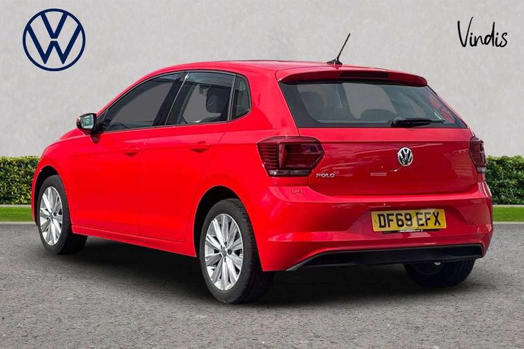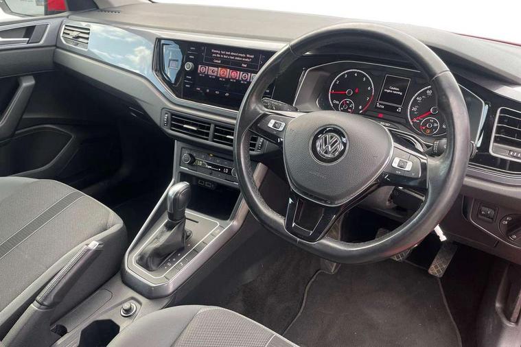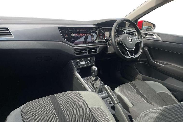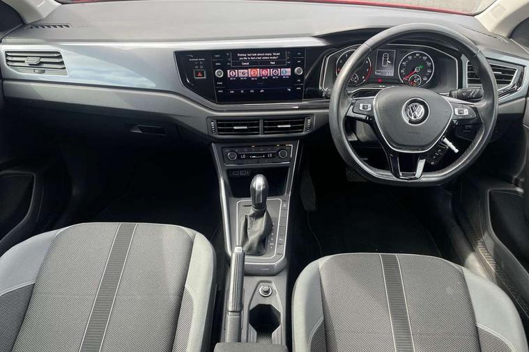 Chrome plated air vent surround, Chrome plated instrument surrounds, Deep iron decorative inserts, Discover navigation infotainment pack - Polo, Light and sight pack - Polo, Alarm with interior protection and deactivation via infotainment system, Electronic engine immobiliser, Remote central locking with 2 remote folding keys, 3 point height adj front seatbelts + pretensioners, 3x3 point rear seatbelts, ABS, Automatic post collision braking, Driver/front passenger airbag, Drivers and front passengers safety optimised head restraints, ESP with EDL + ASR, Front and rear passenger curtain airbags, Front passenger airbag deactivation, Front seat side impact airbags, Front/rear disc brakes, HBA (Hydraulic Brake Assist), Hill hold control, Single tone horn, Tyre pressure monitoring system, Black grille with chrome surround, Black radiator grille with chrome louvres, Body colour bumpers, Body colour door handles, Body coloured side sills, Chrome trimmed front air intake surrounds, Chrome trimmed strip on lower bumper, Electric front windows, Front fog lights including static cornering, Front windscreen washers and wipers with 4 speed intermittent delay, Heat insulating tinted glass, Heated rear window with auto timer, High level 3rd brake light, LED daytime running lights, LED rear number plate lights, Rear electric windows, Rear windscreen washer and wiper with interval delay, reverse activated, 2 bag hooks in luggage compartment, 2 front cupholders and 12 V socket with cover, 3 rear head restraints, 60/40 split folding rear seat, Ambient lighting in front foorwell, front/rear door and dashboard light strips, Centre console storage with open storage compartment, Chrome-plated electric mirror adjustment switch surround, Chrome-plated electric window button surround, Climate control - 2 zone electronic air conditioning with automatic air recirculation and allergy filter, Driver and front passenger sunvisors with illuminated vanity mirrors, Dust/pollen filter, Folding rear seat backrest, Front centre armrest with storage compartment and longitudinal adjustment, Front head restraints, Front seat backrest storage pockets, Gear lever gaiter in black trim surround, Glovebox, Handbrake grip button in chrome effect, Height/reach adjustable steering column, Instrument lighting, adjustable panel illumination, Interior light with delay, Isofix Preparation 2 Rear child seats, Jack and tool kit, Leather gear knob and handbrake grip, Leather multifunction steering wheel, LED interior lighting - 2 reading lights front and rear with interior delay and dimming function, Luggage compartment cover, removable, Luggage compartment lighting, Luggage compartment with variable load floor, Storage compartment in front doors, Storage compartment in rear doors, Storage compartment under front seats, App-Connect, Digital clock, Driver alert system, Lights on warning, Multifunction computer plus, Power assisted speed sensitive steering, Speedo and rev counter, electronic odometer, trip, service interval display and fuel gauge, Start/stop system, Volkswagen connect, Warning buzzer and light for front seatbelts unfastened, Battery regeneration during braking, Galvanished body,