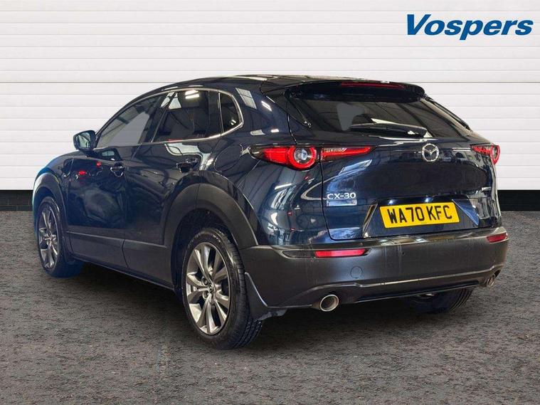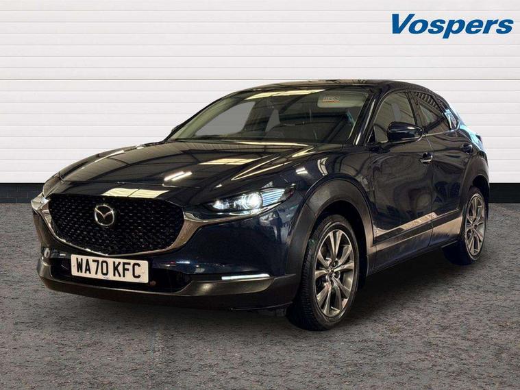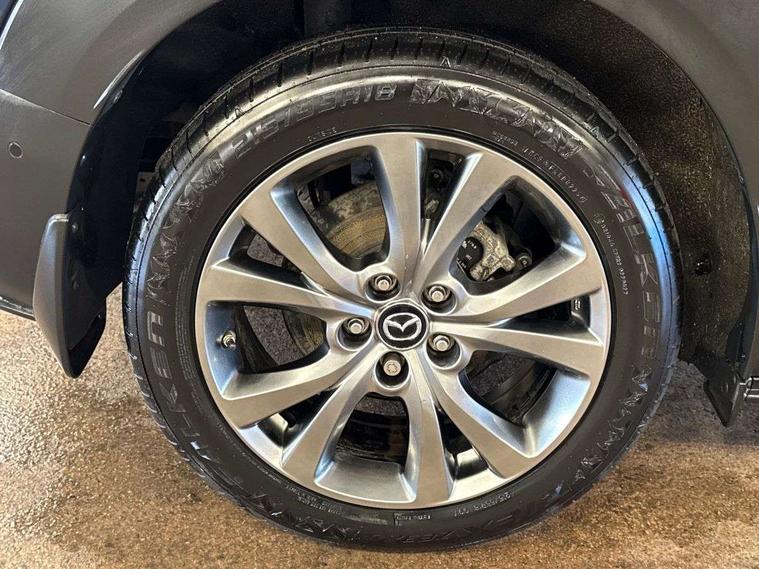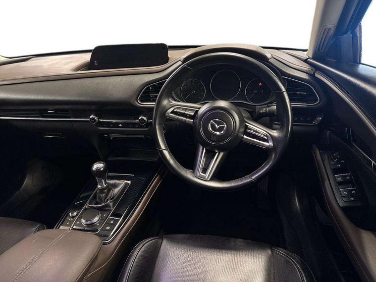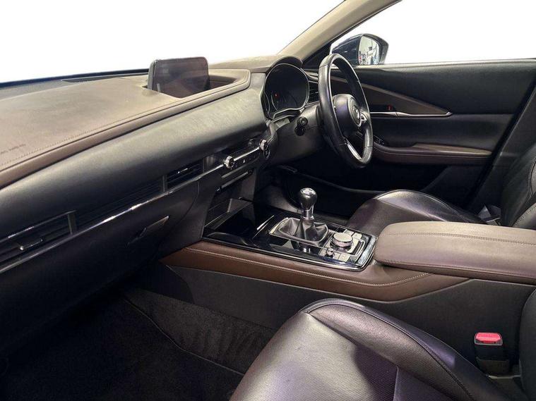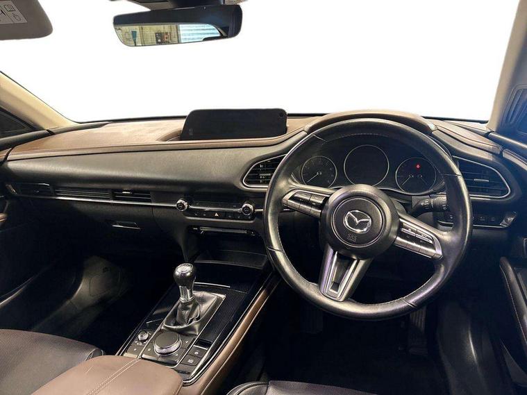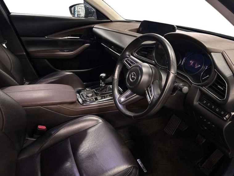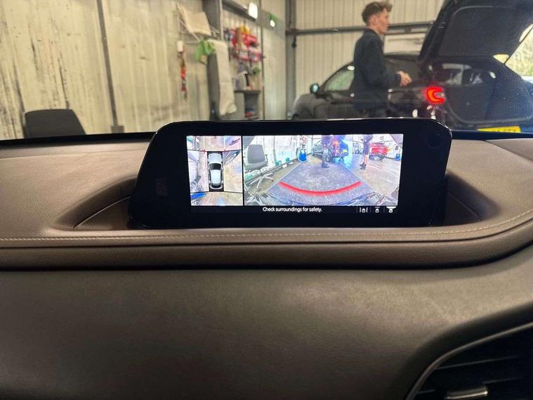 18" Bright silver metallic alloy wheels, Emergency tyre repair kit, Remote central locking with deadlocking and automatic door lock when driving, Smart keyless entry, Thatcham accredited alarm and immobiliser, 2 USB charging ports, Bose surround sound system with 12 Speaker, Bose center point, Bass match and audio pilot technology, CD player, DAB Digital radio, Multimedia Commander including separate volume dial, Steering wheel mounted audio/bluetooth controls, 3 point ELR front seat belts x2 with pretensioners, 3 point ELR rear seat belts, Anti-lock braking system (ABS), Driver/Front Passenger airbags, Drivers knee airbag, DSC - Dynamic Stability Control, Electronic parking brake with auto disengage function and auto hold function, Front and rear curtain airbags, Front and rear smart city brake support, Front passenger airbag cut-off switch, Front side airbags, G-Vectoring control plus, Hill launch assist, Mild Hybrid system with regenerative braking, Rear cross traffic braking, Seatbelt reminder for driver/front passenger and rear seats, Traction control system (TCS), Tyre pressure monitoring system (TPMS), Adaptive LED Headlights, Auto dimming driver's door mirror, B-pillar and C-pillar garnishes in gloss black finish, Body coloured, electrically adjustable, heated auto power folding door mirrors with integrated indicators, Coming/leaving home lighting function, Door mirrors with tilt-down function when reversing, Dual chrome exhaust, Dusk sensing headlights, Electric front/rear windows with one touch auto up/down, Frameless auto dimming interior rear view mirror, Front kodo turn signal, Gloss black front grille, Gloss black rear roof spoiler, High beam assist, LED headlamps with auto levelling, Power tilt/slide sunroof, Privacy glass (rear side windows and rear screen), Rain sensing front wipers with adjustable speed and intermittent wipe, Rear fog lights, Rear wiper, Signature front LED daytime running lights, Signature LED rear combination lights with LED rear turn lights, 12V power outlet in centre console, 60/40 split fold down rear seats, Chrome horn pad ring, Dashboard, door cards and front centre armrest in rich brown leather, Driver and front passenger visors with covered vanity mirror and driver ticket holder, Driver seat memory function, Driver's seat, power tilt, slide, recline, height and lumbar adjustment, Driver, Front passenger and two rear grab handles with coathooks, Dual zone climate control air conditioning with rear air vents, Folding rear centre armrest with two cup holders, Front and rear (x3) head restraints, Front and rear door pockets, Front and rear LED lighting, Front armrest, Front centre storage with two cupholders, Front passengers seat manual slide, recline and height adjustment, Gear shift indicator, Glovebox illumination, Heated front seats with 3 stage setting, Heated steering wheel, ISOFIX child seat anchorage points attached on outer rear seats, Leather wrapped gear shift knob, Leather wrapped steering wheel with telescopic and tilt adjustment, Luggage compartment light, Rear passenger seat map pockets, Roof mounted sunglasses holder, Vinyl leather door panel inserts, 360 View Monitor, 7" TFT Colour driver instrument panel display, 8.8" Colour centre touch screen display with Mazda Connect infotainment, Adaptive cruise control (Mazda radar cruise control) features stop and go, Apple car play/Android Auto, Blind spot monitoring with rear cross traffic alert, Cruising Traffic Support, Driver attention alert system, Driver monitoring system, E-call with GPS, Emergency stop signalling system, Engine start/stop button, Front and rear parking sensors, Front Cross Traffic Alert, Integrated bluetooth, Integrated Mazda navigation system, Intelligent speed assist, Lane keep assist system (LAS) with Lane departure warning system (LDWS), PAS, Power lift gate, Service indicator, Trip computer, Window projected colour active driving display (head up display) with traffic sign recognition, i-stop,