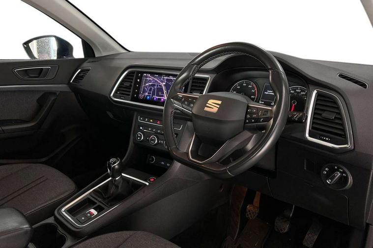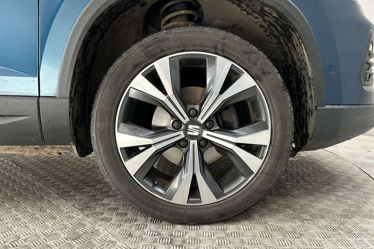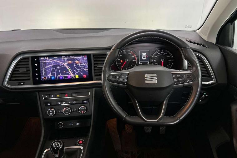 Chrome interior detailing, Interior lighting pack - Ateca, Navigation system pack with DAB - Ateca, 18" Performance machined alloy wheels 36/2 in nuclear grey, Alarm, Keyless entry, Locking wheel bolts, Steering wheel mounted audio/phone controls, 3x3 point rear seatbelts, ABS, Traction control system (TCS), Electronic stability control (ESC) and Electronic differential lock system (XDS), Airbags - Driver and front passenger airbag with deactivation, front side, two curtain and driver's knee airbags, Electric parking brake with auto hold function, Front and rear seatbelt reminder, Front assist with autonomous emergency braking, Hill hold control, Tiredness recognition system, Traction control, Tyre pressure monitoring system, Black wheel arch surrounds, Body colour bumpers, Chrome front grille frame, Chrome roof rails, Chrome side window trim, Daytime running lights, Door mirrors with welcome light silhouette, Dynamic headlight range control with self adjusting whilst driving, Electric adjustable/heated/folding door mirrors, Front and rear electric windows, Full LED headlamps with lens and LED front fog lamps with cornering function, LED rear tail lights with dynamic indicators, Rear fog lights, Rear wash/wipe, Simulated exhaust pipes, 12v socket in front, 60/40 split folding rear seat, Cloth upholstery with front comfort seats, Dual zone climate control, Front and rear head restraints, Front centre armrest, Front seat back storage pockets, Height adjustable driver and passenger seat with lumbar adjustment, ISOFIX points in outer rear seats with top tether anchorage points, Leather steering wheel and gear knob, Rear armrest and easy back seat release mechanism from boot, Storage compartment in roof console for sunglass, Storage compartment under driver's seat, Cruise control system with speed limiter, Outside temperature gauge, PAS, SEAT drive profile with driving experience button - Normal, Sport, Eco and Individual mode, steering and throttle response, Self parking functionality (includes front and rear parking sensors), Trip computer, Wireless full link smartphone integration, Wireless phone charger,