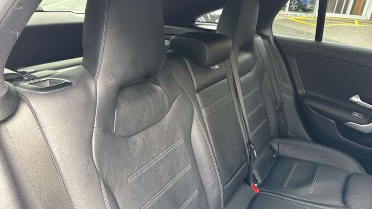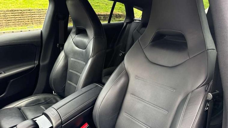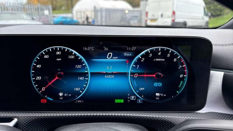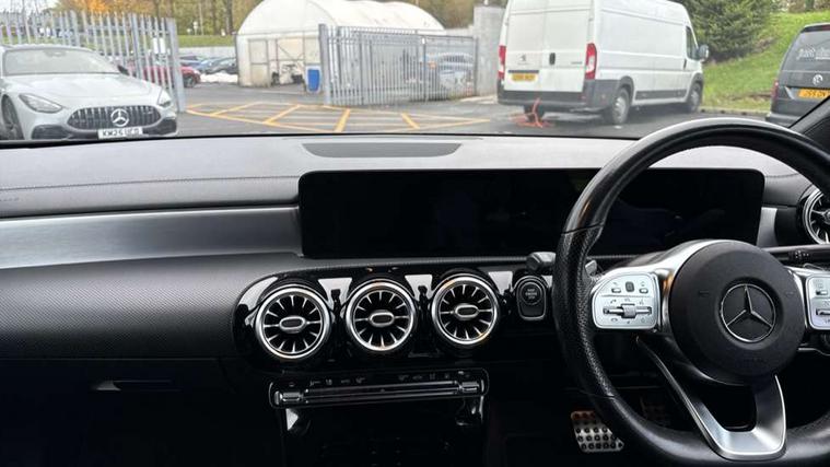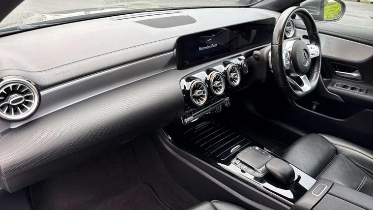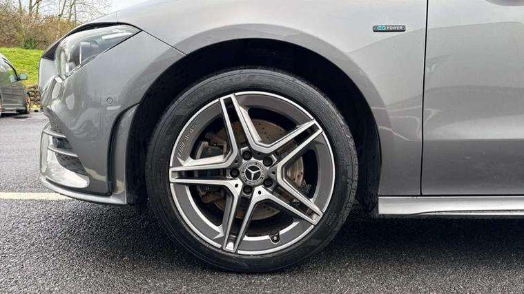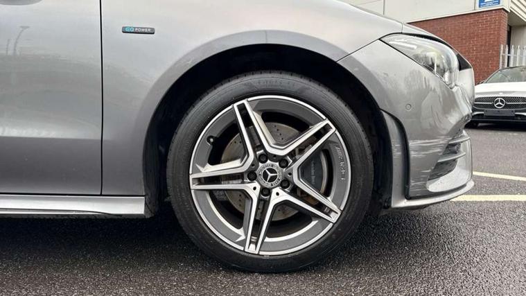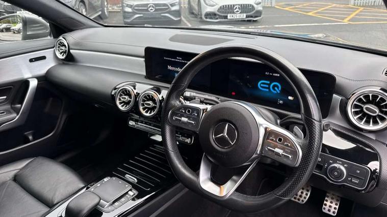 Light aluminium with longitudinal grain interior trim, Keyless go pack - CLA, Light and sight pack - CLA, Mirror pack - CLA, Parking package - CLA, Seat comfort pack - CLA, 18" 5 twin spoke design alloy wheels painted in titanium grey with high sheen finish, Summer tyres, Tirefit tyre sealant kit, Remote central locking and crash sensor with emergency opening function, Urban guard vehicle protection system with immobiliser and interior protection, DAB digital radio tuner, MBUX multimedia system with DAB digital radio and touchpad including satellite navigation, Mercedes Benz advanced sound system (225 W) with 10 speakers, 1 central speaker, speakers on doors, a tweeter on door, one sub woofer + boost amplifier, USB (type C) ports (2) in stowage compartment and 1 in front of centre console, Active bonnet pedestrain safety measure which detects an impact and raises bonnet by 65mm, Active brake assist includes forward collision warning system with autonomous braking, Adaptive brake assist with hold function and hill start assist, Anti-lock braking system (ABS), Black seat belts, Bonnet with power domes, Brake pad wear warning indicator, Childproof locks manually operated for rear doors and electrically operated for rear power windows, Crash responsive emergency lighting, Driver and front passenger head and sidebags, Driver and front passenger windowbags, Drivers knee airbag, Dual stage driver and front passenger airbags, Electric parking brake, Electronic stability programme with acceleration skid control, ESP curve dynamic assist, Front and rear seatbelt reminder, Front passenger seat occupancy sensor, Perforated front brake discs, Radar-based recuperation, Three point rear seat belts, Tyre pressure monitoring system, Warning triangle and first aid kit, Adaptive brake lights, AMG body styling with AMG front apron and rear apron and visible exhaust tailpipe in chrome trim elements, AMG bodystyling side skirts, Body colour bumpers, Body colour door handles, Chrome beltline strips, Chrome weather strip, Diamond radiator grille pins in chrome with silver painted louvres and chrome insert, Electric windows, Electrically adjustable and heated door mirrors with integrated LED indicators, EQ badging, Exhaust system with 2 Visible tailpipe trim elements and rear apron with trim in chrome, Headlamp assist automatic headlamp activation, Heated glass rear windscreen + timer control, High level LED third brake light, Interior mirror with black reading lamps and frameless, LED high performance headlamps with integrated LED daytime running lights, LED tail lamp, Privacy glass with dark tinting on rear side windows and rear window, Rain sensing windscreen wipers with two sensitivity settings, Rear fog lamp, Window line trim strip in chrome, 3 spoke flattened bottom nappa leather multifunction steering wheel with perforated leather in grip area, 40:20:40 split folding rear seats with backrest, Air conditioning - Two zone thermotronic luxury automatic climate control with display, Air vents with surround in silver chrome, Automatic child seat recognition sensor, Black roof lining, Brushed stainless steel sports pedals with rubber studs, Charging socket, Floor mats with stitched AMG lettering, Front centre armrest with stowage, Galvanished gear shift paddles on steering wheel, Heated front seats, Illuminated glove compartment stowage, Illuminated Mercedes benz door sills with Mercedes Benz lettering, Interior lighting - 64 colour Ambient lighting, Luggage net on driver/front passenger seat backrest, Manually adjustable front seats, Manually height and reach adjustable steering column, Pre-entry climate control, Rear armrest with two integral cup holders for drinks, Rear head restraints, Sport seats with fixed head restraints, Stowage compartment in centre console with retractable cover, Sunvisors with illuminated vanity mirrors, Touchpad on center console, Twin front cupholders, Two outer rear seat isofix and top tether child seat fixing points, 10.25 inch Instrument display with digital cockpit, 10.25 inch touchscreen media display, Acoustic ambient protection, Active lane keeping assist, Attention assist - Monitors steering behaviour and long journey fatigue, Bluetooth connection, Car wash mode, Cruise control with limiter, Direct steer system with speed sensitive power steering, DYNAMIC SELECT with a choice of driving modes (ECO, Comfort, Sport and Individual), Easy-pack tailgate, ECO start/stop function, Fluid level warning indicator for fuel, oil, coolant and washer fluid, Hard-disk navigation, Hey Mercedes Voice activation, Lamp failure indicator, MBUX augmented reality for navigation, Mercedes me connect including emergency call system, accident recovery, breakdown management and maintenance, Outside temperature gauge, Owners manual and service booklet in English, Pre-installation for remote and navigation services, Pre-installation for Vehicle Monitoring, Pre-installation for Vehicle Setup, Pre-installation of private car share, Preinstallation for Mercedes Benz link, Radio aerial integrated into front and rear windshields, Service indicator (ASSYST), Smartphone integration with Apple CarPlay and Android auto, Speed limit assist, Trip computer in multifunction display with current consumption indicator, Wireless charging, 3 Pin charging cable, 4m charging cable for wall box/charging stations, 7.4 kW onboard charger, Comfort suspension, Rear axle multi-link,