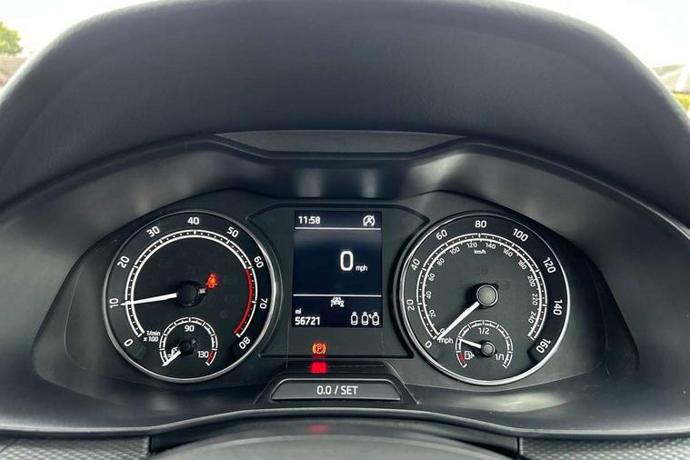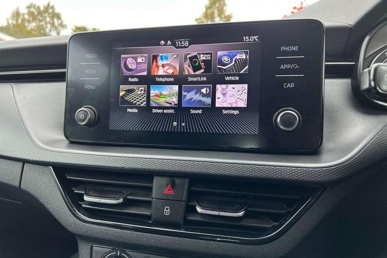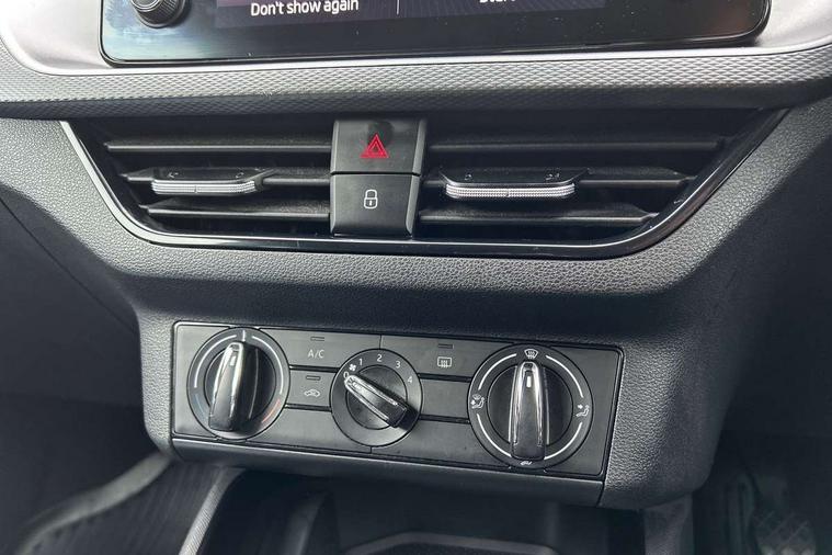 Temporary space saver wheel, Alarm, Anti-theft wheel bolts, Remote central locking with 2 remote folding keys, SAFE function for remote central locking, 2 USB - C ports, 8 loudspeakers, Bolero radio with 8" touchscreen display, DAB Digital radio, 3x3 point rear seatbelts, Curtain airbags, Emergency call and proactive services, Front head and side airbags, Hill hold control, One tone horn, Passenger airbag switch off function, Seat belt reminder for all seats, Automatic headlamp activation with Coming home and Leaving home feature, Body colour door mirrors and handles, Chrome grille surround, Electrically adjustable and heated door mirrors, Front and rear electric windows, Tinted windows, 12V Accessory socket in centre console, Chrome inner door handles, Cloth upholstery, Decor strip on dashboard and door panel, Front head restraints, Glasses storage in roof liner, Height adjustable passenger seat, Instrument cluster with chrome painted decor ring, ISOFIX for rear passenger seat, Leather gearknob and handbrake lever, Manual lumbar support for front seats, Reading lights for driver and front passenger, Sun visor with make up mirror for front passenger, Third rear headrest, Umbrella, Bluetooth system, Easy light assist, Front assist system, PAS, Rain and light assist with auto dimming rear view mirror, Speed limiter,