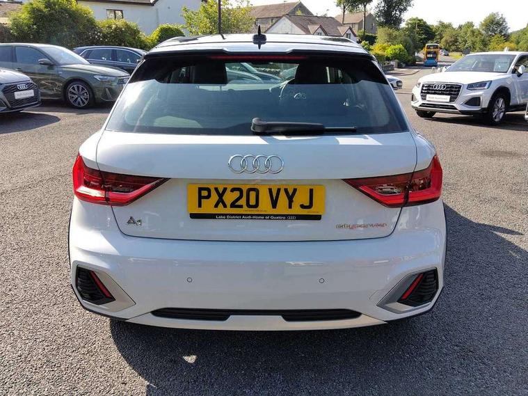 Aluminium trim for control switches, air vents and digital instrument cluster, Silver grey accent areas including air vents, door handle recesses and centre console in diamond paint finish, Slate grey inlays polygon structure in fine paint finish, LED interior lighting pack - A1, Luggage compartment pack - A1, 17" 5 spoke Y design alloy wheels, Anti theft alarm, Anti theft wheel bolts and loose wheel warning, Audi pre-sense front with pedestrain and cyclist recognition, Immobiliser, Remote central locking with 2 foldaway keys, 1 x SDXC card reader, 1 x USB type C and 1 USB type A charging points, DAB Digital radio, MMI radio plus with 8.8" colour MMI display screen and MMI touch, 3x3 point rear seatbelts, Brake assist function, Driver and front passenger airbag with front side and head airbags, Electronic Stability Control including ABS, EBD, ASR and EDL, Front and rear seatbelt reminder, Front passenger airbag deactivation switch, Hill hold assist, Seatbelt height adjustment for front seats, Seatbelt monitoring, Tyre pressure warning light, Warning triangle and first aid kit, Auto dimming rear view mirror, Body coloured bumpers, Body coloured door mirrors, Citycarver badge on tailgate, Citycarver roof spoiler, Electric front and rear windows, Electrically adjustable, heated, folding door mirrors with integrated LED side indicator, Heat insulating glass windscreen and side windows, Heated rear windscreen, LED headlights with LED rear lights + dynamic rear indicators + headlight adjustment and high beam, turning light + LED daytime running lights, Lower bumper, wheel arch trims, door panel and side sills in manattan grey, Octagonal radiator grille in matt black, Rain and light sensors, Rear fog lights, Rear wiper, 12V socket in centre console with two cup holders, 3 rear seats with headrests, 40:60 Split folding rear seat or folded fully, Door sill trims with aluminium inlay, Driver and passenger seat with manual height adjust with forward and backwards adjustment, Front head restraints, Front side air inlets, diffuser and underbody protection in Stainless steel effect paint, Front/rear floor mats, Height and reach adjustable steering wheel, ISOFIX child seat mounting for front passenger and outer rear seats including top tether attachment point of outer rear seats, Leather gear knob with aluminium trim, Leatherette handbrake grip, Manually adjustable lumbar support in front seats, Novum cloth upholstery with front sport seats, Titanium grey cloth headlining, 10.25" Digital instrument cluster display classis style instrument dials + speed, odometer, time, outside temperature, telephone menu + fuel level warning, Audi connect safety emergency and service including E-call, Audi drive select - power steering assistance + engine + gear shift 3 preset modes (auto, dynamic, efficiency and an Individual mode), Audi smartphone interface with connect compatible smartphone via USB directly MMI display + Nav, music, third party apps controlled via MMI controller, Automatic start/stop system, Bluetooth interface, Cruise control, Electromechanical power steering, Lane departure warning system, Rear parking sensor, Service interval indicator, Speed limiter, Voice control system, Washer fluid level indicator, Citycarver suspension,