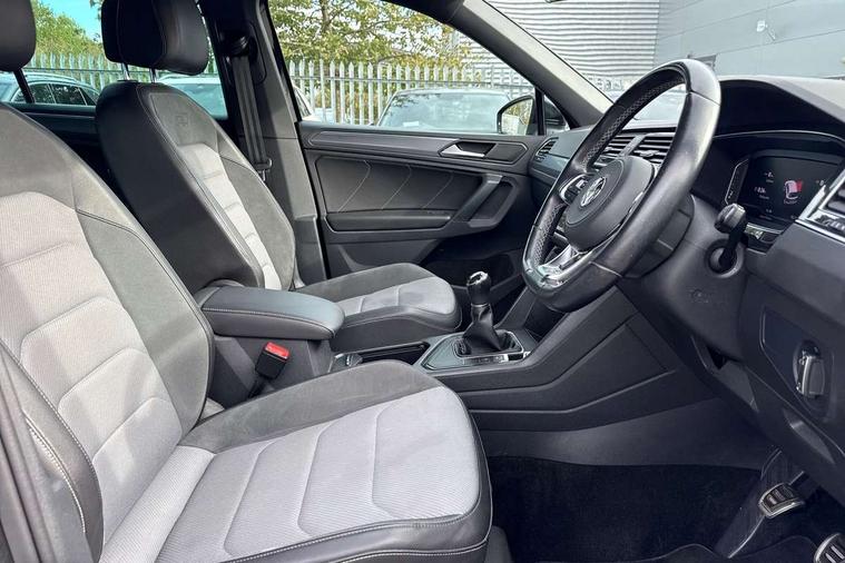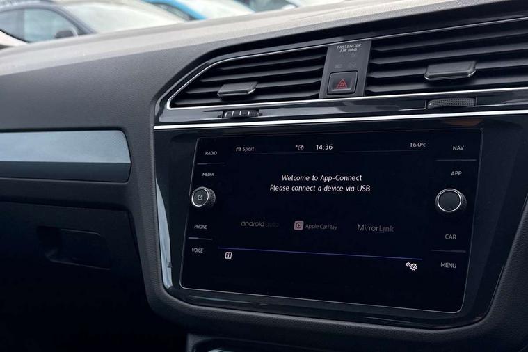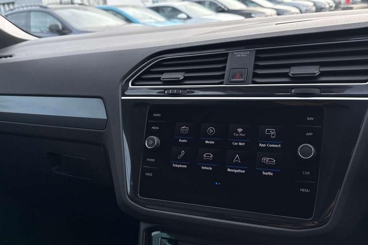 Chrome door trim inserts, Dark grey decorative inserts in dash and door panel, Piano black decorative inserts in centre console, Ambient lighting pack - Tiguan, Alarm with interior protection, Electronic engine immobiliser, Remote central locking with 2 remote folding keys, 2 x USB connection + USB charging socket, 4 X 20 watt output, DAB Digital radio, SD card slot, Simultaneous pairing of 2 compatible mobile devices, SMS functionality - read, compose and send SMS messages using touch-screen display, Title and cover art display, 3 rear 3 point seatbelts, ABS+EBD+Brake assist, Active bonnet, Active pedestrian safety system, Curtain airbags, Driver/Front Passenger airbags, Driver/Passenger whiplash optimised head restraints, Drivers knee airbag, DTC - Drag torque control, Electronic parking brake with auto hold, ESC with EDL, ASR, EDTC and trailer stabilisation function, First aid kit, Front seat side impact airbags, Front side airbags, Front ventilated disc brakes and rear disc brakes, Head airbag system, Height adjustable front 3 point seatbelts + pretensioners, Hill hold control, Passenger airbag deactivate switch, Passenger knee airbag, Pre crash preventive occupant protection, Rear side airbags, Rigid safety cell with front and rear crumple zones, Two tone horn, Warning sound and light for front seat belts if unfastened, Warning triangle, 3D effect cherry red LED rear tail lights, Auto dimming interior mirror, Automatic activation of hazard warning lights, Black grained lower door protectors with chrome inserts, Body colour door handles, Body colour door mirrors, Body coloured bumpers, Chrome side window surrounds, Chrome trimmed radiator grille, Coming/leaving home lighting function, Dusk sensor + auto driving lights, Electric panoramic sunroof with sunblind, Electrically heated and foldable door mirrors, door mirror puddle lights and reverse activated kerb view adjustment on passenger's door mirror, Front and rear electric windows, Heated rear window, High level 3rd brake light, LED headlights with dynamic light assist daytime running lights and cornering front fog lights, LED rear number plate lights, Piano black front air intake and rear diffuser, Rain sensor windscreen wipers, Rear tinted glass from B-pillar backwards approx 65% tinted, Rear windscreen washer and wiper with interval delay, Side door sills with chrome inserts, Silver front underbody protection and rear diffuser, Silver roof rails, Windscreen wipers/ intermittent wipe + 4 position delay, 12V socket in centre console storage area, 2 cup holders in front, 3 rear headrests, 3 zone climate control, 4 load lashing points, 40:20:40 split folding rear seats, Bag hook in luggage compartment, Driver and front passenger under seat drawer, Foldable front passenger seat backrest, Front + rear carpet mats, Front centre armrest with 12v socket, Front centre armrest with storage + rear 2 air vents, Front seat back storage pockets, Front seatback folding tables, Height/reach adjust steering wheel, Illuminated driver/passenger vanity mirrors, Illuminated scuff plates, Instrument lighting white adjustable panel illumination, Interior light with delay, Isofix Preparation 2 Rear child seats, Leather gear knob, Load through provision with 2 cupholders when folded, Lockable cooled glovebox, Luggage compartment lighting, Map pockets on front seats, Passenger seat height adjuster, Removable luggage cover, Sliding/reclining rear seats, Storage compartment in driver's door, Storage compartment in passenger's door, Storage compartment in rear doors, Storage compartments in luggage area left and right, Storage tray on dashboard, Sunglasses storage, Variable boot floor, height adjustable and removable, App-Connect, 2D/3D map view, Active information display, Adaptive cruise control, Bluetooth phone integration system, Car information display, Distance control assist, Driver profile selection, Front assist, radar sensor controlled distance monitor, city emergency braking + predictive pedestrian protection, Instrument cluster, Lane assist, Lights on warning, Multifunction computer with visual gear change recommendation for fuel consumption, Outside temperature display, Service interval indicator, Speed limiter, Start/Stop function, Warning sound and light for doors and tailgate open, Battery regeneration during braking, XDS electronic differential lock for improved traction and handling,
