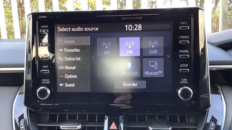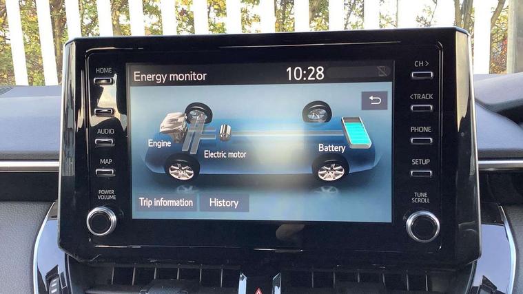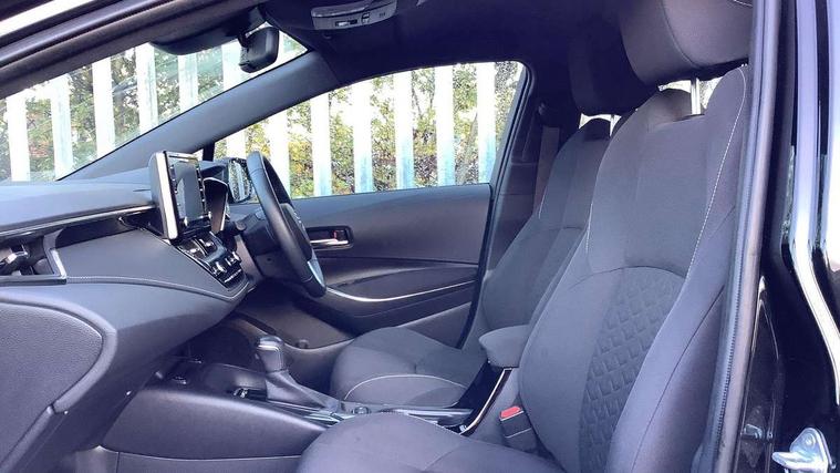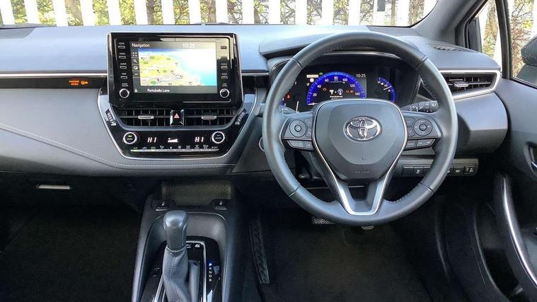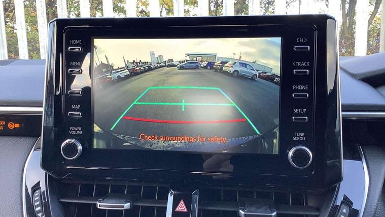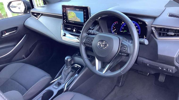 Satin chrome dash trim, Soft touch texture on uppder dashboard, Parking pack - Corolla, Toyota safety sense 2 pack - Corolla, Unique wheel finish with red wheel cap, Acoustic vehicle alert system (AVAS), Alarm with motion sensor and immobilizer, Remote central locking + deadlocks, 6 speakers, 8" Touchscreen with MM19 Multimedia system and voice recognition, AM/FM radio, DAB Digital radio, Toyota touch 2 with go navigation system, USB and Aux in connectors + 12V front outlet, 3x3 point rear seatbelts, Adjustable driver and front passenger seat belt extender to top anchor point, Anti lock braking system + Electronic brake force distribution, Brake assist function, Downhill Assist Control (DAC), Electronic parking brake, Emergency brake light signal (EBS), Front passenger airbag on/off switch, Front seatbelt reminder, HAC-Hill-start Assist Control, Rear seat belt reminder, Seatbelt pretensioners and force limiters, Supplemental restraint system (SRS) 7 airbags - dual driver, dual side curtain, side impact and driver knee airbags, Traction control, Tyre pressure warning system, Anti-jam protection on power windows, Auto up and down function on all power windows, Automatic headlights with high beam assist, Black metallic surround on lower front grille, Black toyota logo in front, Black window frames, Body colour rear spoiler, Body coloured bumpers, Body coloured door mirrors, Body coloured outside door handles, Follow me home headlights, LED daytime running lights, LED front fog lights, LED High mounted stop light, LED multi-reflector headlights with manual headlight levelling, LED rear combi lights with LED lightguide, Manual day/night rear view mirror, Power adjustable heated door mirrors, Power front windows, Power rear windows, Rear window defogger, Rear window wiper, Shark fin antenna, Time adjustment on intermittent wiper, Turning signal integrated indicators in door mirrors, Unique lower skirt, Unique side rocker with black insert, UV-filter on driver and passenger windows, 3 rear headrests, 3 spoke leather steering wheel + gear knob, 60/40 split folding rear seat, Adjustable speed limiter switch on steering wheel, Audio, multimedia and telephone switches on steering wheel, Boot light, Centre room light, Clean air filter, Driver and front passenger personal light, Driver and passenger assist grip, Driver and passenger sun visor with mirror and light, Dual zone automatic air conditioning with ECO mode switch, Fabric armrests, Front and rear cup and bottle holders, Front door pockets, Front head restraints, Heated driver and front passenger seats, Illuminated entry system in room lamp, ISOFIX seat fixing (2 fixings on rear outer seats), Leather gear shift with satin chrome on gear shift console, Manual height adjustable for driver and front passenger seat, Parcel shelf, Passenger seat back pocket, Pollen filter, Power adjustable lumbar support on driver seat, Power window switches with satin chrome inserts, Quilted fabric upholstery with grey stitches seats, Rear armrest with 2 cupholders, Rear passenger coat hooks (2), Satin chrome inside door handles, Shopping bag hooks in luggage compartment, Sliding armrest on centre console box, Slow opening glovebox with lights, Tilt/telescopic steering column, Voice recognition switch on steering wheel, Whiplash Injury Lessening (WIL) feature (active headrest) for seats, 7" Multi information display screen, Bluetooth telephone connectivity, Connected car functionality upgrade, tracker, remote status and e-care, Dynamic radar cruise control (with RSA) including switch on steering wheel, E-call, Electrically assisted power steering, EV drive indicator, Intelligent park assist, Lane Departure Alert (LDA) switch on steering wheel, Memory on adjustable speed limiter, Push button start, Reversing camera, Smartphone integration with Apple CarPlay and Android auto, Gasoline particulate filter, Vehicle Stability Control (VSC),