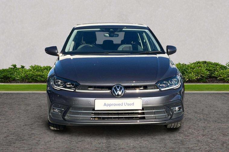 Chrome applications on rotary light, mirror adjustment, window regulator switches, outlet with frame in black, Deep iron gloss decorative inserts in dash and front door panels, IQ LED matrix headlights pack - Polo, Light and vision pack - Polo, Low rolling resistance tyres, Alarm with interior protection, Anti-theft alarm system with interior monitoring, backup horn, and towing protection, Anti-theft wheel bolts, Electronic engine immobiliser, DAB Digital radio, Diversity antenna for FM reception, Front and rear 6 speakers, 3 point height adj front seatbelts + pretensioners, 3x3 point rear seatbelts, ABS, Driver and front passenger airbag with front passenger airbag deactivation, Drivers and front passengers safety optimised head restraints, ESC (Electronic stability control) + EDL (Electronic Differntial lock) and ASR (Traction control), Extended and predictive pedestrian/ cyclist protection, Front curtain and side airbags with center airbag, Front disc brakes, Hill hold control, Manual child lock in rear doors, Rear drum brakes, Single tone horn, Tyre pressure loss indicator, Automatic dimming interior rear view mirror, Automatic headlights, Body colour door handles, Body coloured bumpers and radiator grille with chrome trims, Chrome plated radiator grille inserts, air vent surrounds and light switch surrounds, Electric front windows, Front fog lights with static cornering function, Heat insulating glass in side and rear windows, Heat insulating glass windscreen, LED separate daytime running lights with coming/leaving home function, Power folding adjustable/heated exterior mirrors and front passenger exterior mirror lowering function, Rain sensor, Rear electric windows, Rear fog light, Rear side wing doors, Rear windscreen washer and wiper with interval delay, Third brake light, 12V power socket in centre console, 2 USB-C ports in the front, 2 USB-C charging sockets on the center console in the rear, 3 rear head restraints, 60/40 split folding rear seat and rear seat bench not split, Air care climatronic air conditoning system with active combination filter and 2-zone temperature control, Ambient lighting, Ceramique headliner, Door and side trim panel, Driver and front passenger seat height adjustment, Driver/passenger sunvisors with illuminated vanity mirrors, Front + rear carpet mats, Front centre armrest, Front footwell illumination, Front seat backrest storage pockets, Front sports comfort seats, Handbrake lever handle in leather, Isofix child seat preparation easy-fit (for two outer rear seats, and front passenger seat) compatible with I-size, Leather trimmed gear knob, LED interior light with switch off delay and dimmer, 2 reading lights front and rear, Luggage compartment cover, Luggage compartment floor, Luggage compartment lighting, Lumbar adjustment for front seats, Multifunction steering wheel, Single front passenger seat, Standard pedal cluster, Adaptive cruise control without follow-to-stop and speed limiter, Bluetooth mobile phone interface, Digital Cockpit Pro with 10.25" Display, Driver alert system, Dynamic road sign display, Emergency call service, Power assisted speed sensitive steering, Preparation for We connect and We connect plus, Speedo and rev counter, electronic odometer, trip, service interval display and fuel gauge, Standard rear axle, Travel Assist - Lane keeping system and traffic jam assist, Travel assist including emergency assist, Trip computer, Warning signal and warning light for front and rear seatbelts not fastened, Washer fluid level indicator, Wireless app connect, Front wheel drive, Rear shock absorpion, Start-stop system with battery regeneration (recuperation - energy recovery during braking),