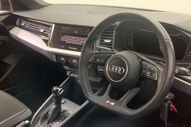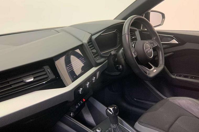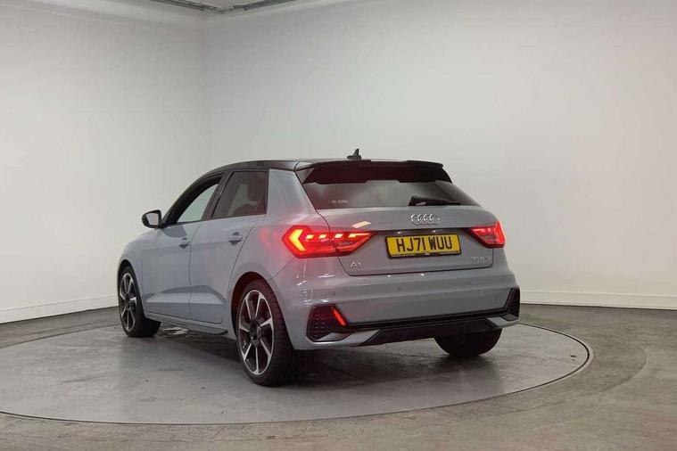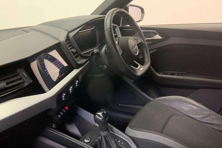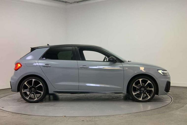 Aluminium trim for control switches, air vents and digital instrument cluster, Silver grey inlays polygon structure in diamond paint finish, Structured grey accent areas including air vents, door handle recesses and centre console in quartz paint finish, Black styling pack - A1 Sportback Black Edition, LED interior lighting pack - A1, Luggage compartment pack - A1, 18" 7 spoke rotor design alloy wheels in gloss anthracite black, diamond cut finish, Anti theft alarm, Anti theft wheel bolts and loose wheel warning, Audi pre-sense front with pedestrain and cyclist recognition, Immobiliser, Remote central locking with 2 foldaway keys, 1 x SDXC card reader, 2 x USB type C connection points, DAB Digital radio, MMI radio plus with 8.8" colour MMI display screen and MMI touch, 3x3 point rear seatbelts, Brake assist function, Driver and front passenger airbag with front side and head airbags, Electronic Stability Control including ABS, EBD, ASR and EDL, Front passenger airbag deactivation switch, Hill hold assist, Manual rear child locks, Seatbelt height adjustment for front seats, Seatbelt monitoring, Tyre pressure warning light, Warning triangle and first aid kit, Auto dimming rear view mirror, Black door mirrors, Black side skirts, Body coloured bumpers, Door sill trims with aluminium inlays and logo, Electric front and rear windows, Electrically adjustable, heated, folding door mirrors with integrated LED side indicator, Front side air inlets in grained matt black and C frame in titanium black, Heat insulating glass windscreen and side windows, Heated rear windscreen, High level LED brake light, LED headlights with LED rear lights + dynamic rear indicators + headlight adjustment and high beam, turning light + LED daytime running lights, Radiator protective grille frame in matt aluminium silver, Rain and light sensors, Rear diffuser strip in matt titanium black, Rear fog lights, Rear side wing doors, Rear wing door, Rear wiper, Side front spoiler lips in grained matt black, 12V socket in centre console with two cup holders, 3 rear seats with headrests, 3 seat bench in 2nd row, 3 spoke flat bottomed multi-function plus leather steering wheel with S badging, grips in preforated leather, contrast stitching and paddle shift, 40:60 Split folding rear seat or folded fully, Black cloth headlining, Driver and passenger seat with manual height adjust with forward and backwards adjustment, Front and rear black floor mats with contrast stitching in fine silver, Front head restraints, Front passenger seat, Height and reach adjustable steering wheel, ISOFIX child seat mounting for front passenger and outer rear seats including top tether attachment point of outer rear seats, Leather gear knob with aluminium trim, Luggage compartment light with front and rear reading lights, Manually adjustable lumbar support in front seats, Stainless steel pedals, 10.25" Digital instrument cluster display classis style instrument dials + speed, odometer, time, outside temperature, telephone menu + fuel level warning, Audi connect safety emergency and service including E-call, Audi drive select - power steering assistance + engine + gear shift 3 preset modes (auto, dynamic, efficiency and an Individual mode), Audi smartphone interface with connect compatible smartphone via USB directly MMI display + Nav, music, third party apps controlled via MMI controller, Automatic start/stop system, Bluetooth interface, Cruise control, Driver's information system, Electromechanical power steering, Emergency services call system, Lane departure warning system, Service interval indicator, Speed limiter, Voice control system, Washer fluid level indicator, Sports suspension,