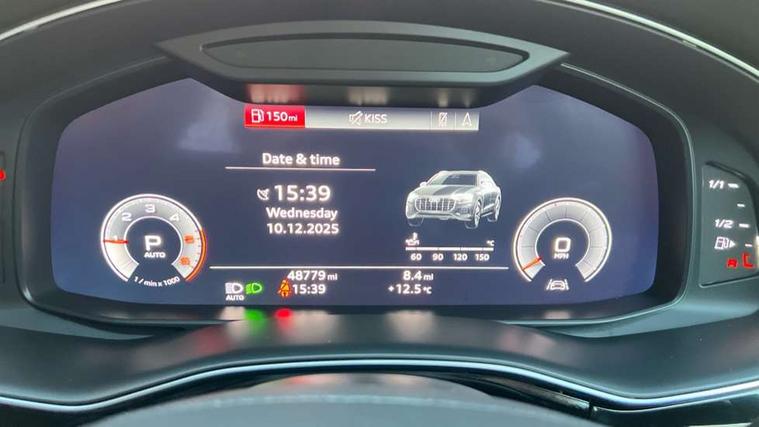 Tyre repair kit, Anti theft alarm, Anti-theft wheel bolts and wheel loosening detection, Immobiliser, Keyless Go access/ignition system, Remote central locking, 2 USB ports, Audi music interface, Aux-in socket, DAB Digital radio, 3 point seatbelts on all seats, ABS, Curtain airbags, Driver and passenger airbags, EDL + ASR, Electromechanical parking brake, Electronic stability control, ESP, Front passenger airbag deactivation, Front side airbags, Hill descent control, Hill hold assist, Pre sense front, Predictive pedestrian protection, Seatbelt warning, Traction control, Tyre pressure monitoring system, Warning triangle and first aid kit, Acoustic windscreen, Auto dimming rear view mirror, Coming/leaving home lighting function, Electric front+rear windows, Electric/heated/folding door mirrors with memory, HD Matrix LED headlights with dynamic front and rear indicators, Headlight washers, Heat insulating glass, LED daytime running lights, LED signature DRL, Privacy glass, Rain and light sensors, Rear wiper, S line badges on front wings, S Line body styling, S line front and rear bumpers, air inlets and door trim strips, 4 way electrically adjustable lumbar support for drivers seat, 4 way electrically adjustable lumbar support for front passenger seat, 40:20:40 split folding rear bench seat, Black cloth headlining, Door sill trims with S line logo, Front centre armrest with storage compartment and angle adjustment, Front head restraints, ISOFIX on front passenger and rear outer seats, Luggage compartment sill protection in stainless steel, Rear centre armrest with 2 cupholders, Rear headrests, Self-locking centre differential, Stainless steel pedals, Sunvisors with illuminated vanity mirrors, Tool kit, Top tether anchor plate for isofix child seat, 10.1" and 8.6" Dual colour touchscreens, Audi connect safety and service (e-call), Audi drive select, Audi lane departure warning, Audi phone box with wireless charging, Audi smartphone interface, Automatic start/stop system, Electro-mechanical PAS, Low washer fluid indicator, MMI - Multi Media Interface control system, MMI navigation plus with MMI touch, On board computer, Operating buttons in black, glass look with haptic feedback, Power operated tailgate, Rear view camera, Service interval indicator, Virtual cockpit, Voice control system, Adaptive air suspension, Diesel particulate filter,
