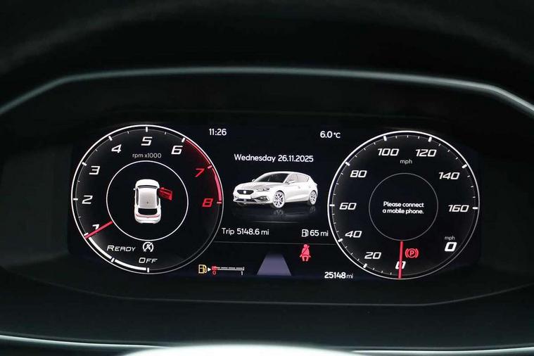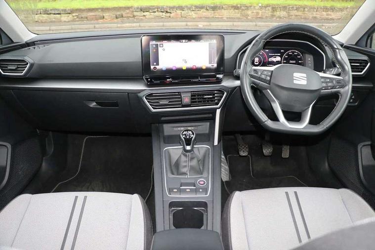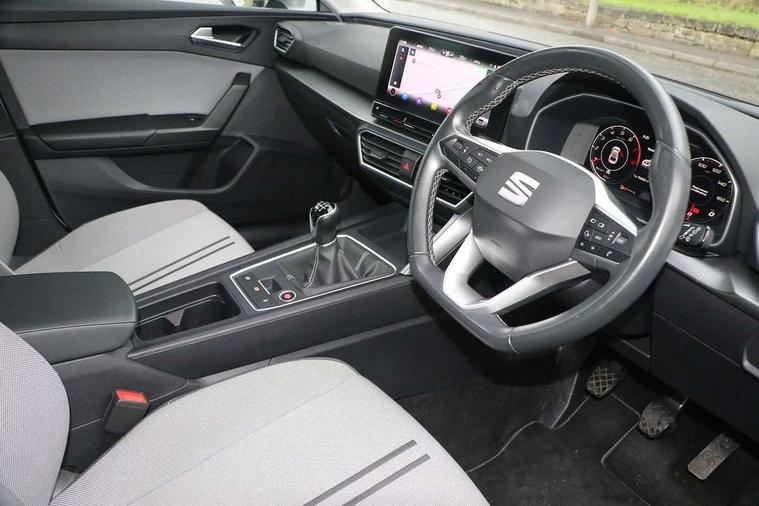 Chrome interior detailing, Media system plus with navigation - Leon SE, 17" Dynamic tri-spoke alloy wheels with 91W tyres, Anti theft alarm system with interior monitoring in cab, backup horn and towing protection, KESSY Go (Keyless start), Locking wheel bolts, 7 speakers, Auxiliary input socket, 3 point seatbelts on all rear seats, ABS, Brake control system - ESC and brake booster, Child proof door locks, Driver and front passenger airbags with front passenger airbag de-activation, front side and curtain airbags, Electronic parking brake, Extended safety system - seat belt tensioner, window closure and hazard lights, Hill hold control, Rear disc brakes, Seat belt reminder for front and rear seats, Tiredness recognition system, driver alert system, Tyre pressure monitoring system, Body colour door handles, Body coloured bumpers, Body coloured exterior mirrors with integrated LED indicators, Dark tinted rear windows, Electric front/rear windows, Electrically adjustable and heated door mirrors, LED front fog lamps with cornering function, LED headlights and LED tail lights, LED rear fog lamp, Manual dimming rear view mirror, Rain sensor, Rear side wing doors, Rear wash/wipe, Separate daytime running light with automatic headlight control, Third brake light, 12v power point in centre console, 3 seat bench in 2nd row, 60/40 split rear bench seat, Cloth upholstery, Driver seat lumbar adjustment, Driver/passenger manual seat height adjustment, Dust/pollen filter, Folding boot cover, Front and rear height adjustable headrests, Front and rear reading lights X 4, Front centre armrest, Front seatback storage pockets, Grey headlining, Height/reach adjust steering wheel, Illuminated glove box interior lighting, ISOFIX points in outer rear seats with top tether anchorage points, Leather flat bottomed, perforated steering wheel and leather gearstick, Luggage tie-down hooks, Single front passenger seat, Sunvisors with mirror, Three zone climate control, Tool kit, Cruise control with speed limiter, Digital cockpit, E-call, Four x USB Type C ports, Front assist with forward collision warning braking reaction to vehicles, pedestrians and cyclists, Full link smartphone integration with Mirror Link, wireless Apple CarPlay and wired Google Android Auto, Lane assist, Lockable tailgate, Park assist (inc front/rear parking sensors), Power assisted speed sensitive electro-mechanical steering, RPM, trip computer, outside temp gauge, instrument light brightness, low fuel warning light, lights on reminder, gearshift indicator, Service interval indicator, Start/stop system with regenerative braking, Standard suspension, XDS electronic differential lock and dynamic traction support,