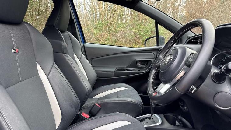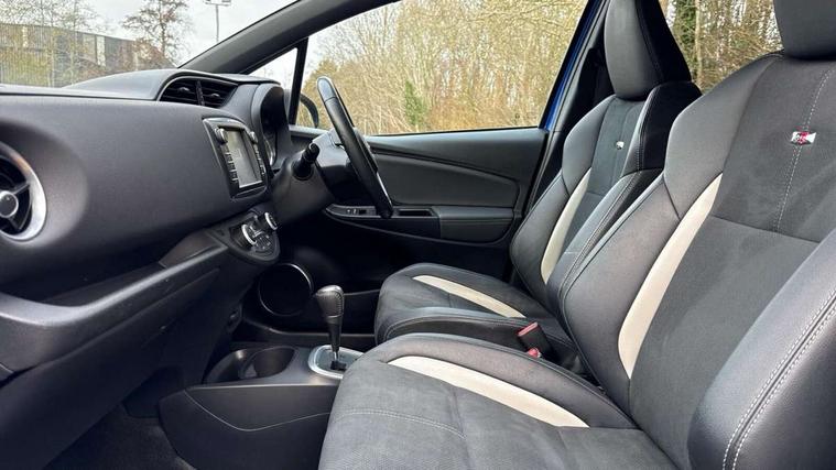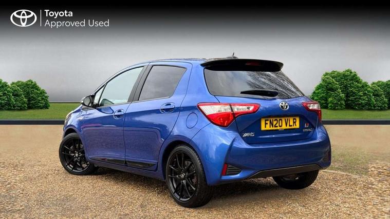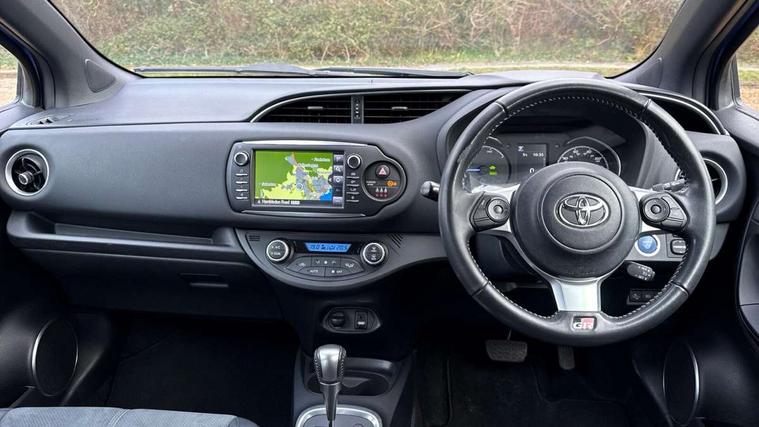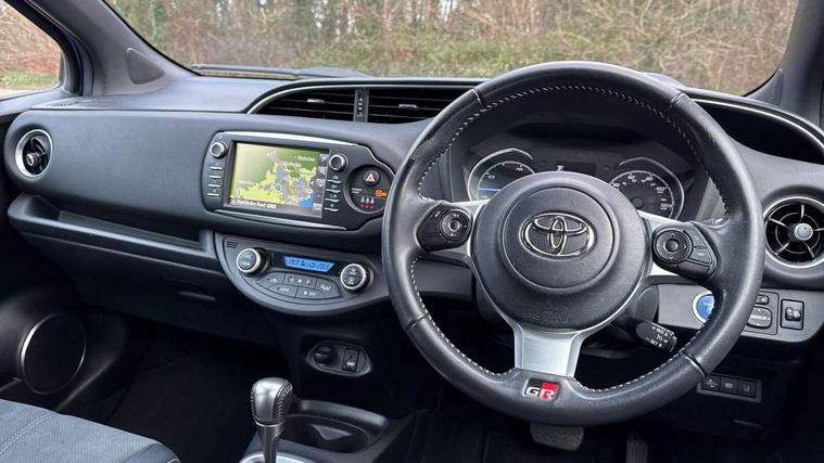 4.2" coloured LED TFT multi information display, Analogue speedometer, Analogue tachometer, Auto speed limiter, Bluetooth connectivity, Cruise control, External temperature gauge, Fuel indicator with low level warning, Hybrid energy display, Hybrid system indicator, Key reminder warning, Lights on warning, Multi information display switches on steering wheel, Power Steering, Push button start, Reversing camera, Trip computer, GR Sport Suspension, 6 speakers, Auxiliary input socket, Steering wheel mounted audio/telephone switches, Toyota Touch 2 with DAB, USB connection, Auto up and down function on drivers window, Automatic wipers, Bi-tone black roof, Black contrasting colour door mirrors, Black door moulding, Black style finishes projector headlights, Body colour bumpers, Body colour door handles, Daytime running lights, Electric adjustable heated door mirrors, Electric front windows, Electric rear windows, Follow me home headlights, Front fog lights, Gloss black honeycomb lower front grille, GR Sport logo, Headlight cut-off reminder, LED High mounted stop lamp, Manual dimming rear view mirror, Privacy glass, Rain sensitive windscreen wipers, Rear combination lights bulb type, Rear spoiler, Rear window defogger, Rear wiper, Turning signal integrated indicators in door mirrors, 12v power outlet - front, 3 adjustable rear headrests, 3 Spoke GR Sport leather steering wheel, 60/40 split folding rear seat, Alcantara ultrasuade upholstery, Boot light, Data Communication Module (DCM) connected services, Driver and front passenger personal light, Driver and front passenger Whiplash Injury Lessening seats, Dual zone automatic air conditioning, Front and rear cup holders, Front map reading lights, Front seats with lumbar support, Glovebox, Height adjustable driver's seat, Height adjustable front head restraints, Illuminated entry system, Isofix seat fixing, Leather gearshift, Leather parking brake handle, Map pockets on the backs of the front seats, Pollen filter, Removable rear parcel shelf, Sliding front seats, Soft touch inner door garnish, Tilt/telescopic steering column, 3 point seatbelts on all rear seats, ABS+EBD+Brake assist, Active headrests, Collision mitigation braking system, Emergency brake light system (EBS), Front passenger airbag on/off switch, Front seatbelt reminder, Height adjustable front seatbelts with pre-tensioners and load limiters, Hill start assist control (HAC), Rear child proof door locks, Rear seat belt reminder, Road sign information display, Seatbelt warning lamp and buzzer, Supplemental restraint system (SRS) airbags - 7 airbags including driver, front passenger, curtain, side and knee airbags, Toyota safety sense including Road sign assist, Pre collision system, auto high beam and lane departure alert), Tyre pressure warning system, Vehicle stability control VSC + traction control, Engine immobiliser, Power and remote door locking, Interior satin accents, Soft touch instrument panel, 17" Black alloy wheels, Tyre repair kit,