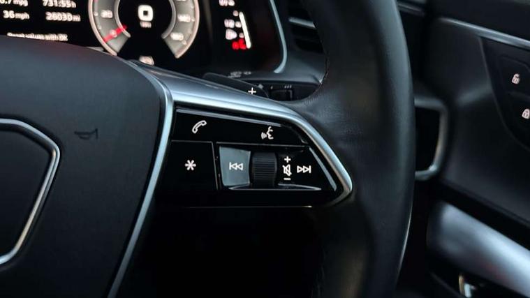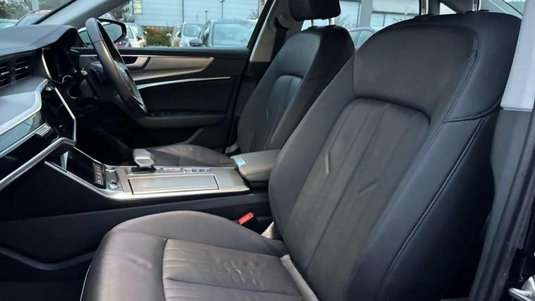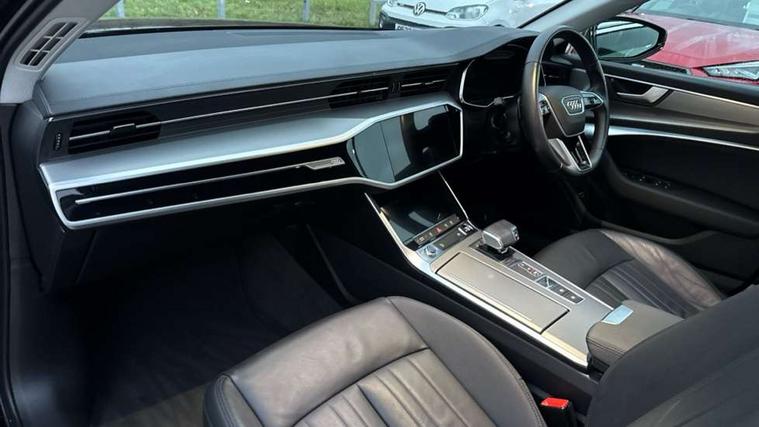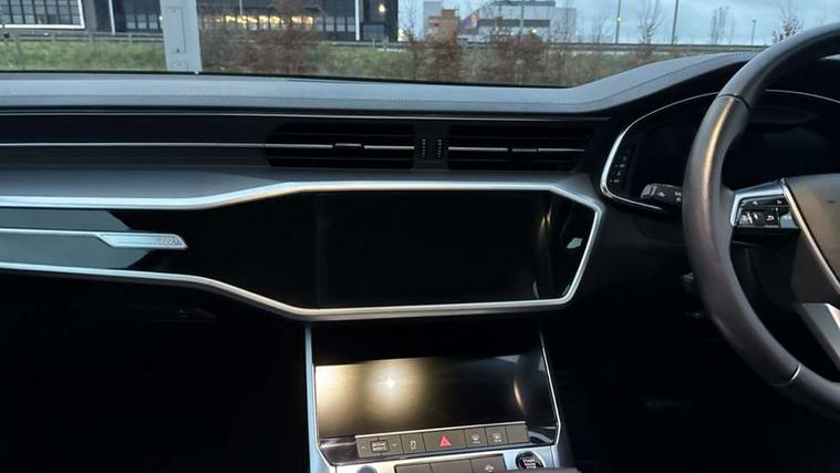 Aluminium fragment inlay, LED Interior Ambient Lighting Pack - A6, Non smoking pack - A6, Technology pack - A6, Anti theft alarm with tow away protection, Anti-theft wheel bolts and wheel loosening detection, Immobiliser, Keyless Go, Remote central locking, Audi front music interface, Audi sound system, Auxiliary input socket, DAB Digital radio, USB connection, 3 point seatbelts on all seats, Airbags - Front side, front and rear including head, Audi pre-sense front, EBD - Electronic brakeforce distribution, Electromechanical parking brake, Electronic Stability Control (ESC) including ABS, ASR and EDL, Extended pedestrian protection measures, Manual child proof rear door locks, Seatbelt monitoring, Tyre pressure warning light, Warning triangle and first aid kit, All weather LED headlights, Body colour bumpers, Body coloured door mirrors, Daytime running lights, Electric front/rear windows, Frameless auto dimming interior rear view mirror, Front intermittent wipers, Heat insulating glass in side and rear windows, Heat insulating glass in windshield, LED rear lights, LED third brake light, Matt black rear diffuser with diffuser strip and tailpipes in chrome, Matt black side air intake grille with inlay in matt aluminium, Radiator grille in titanium black matt, single frame in chrome and horizontal struts in matt aluminium silver, Rain and light sensors, Rear boot, Rear side wing doors, 2 zone deluxe electronic climate control, 3 spoke high multi-function leather steering wheel with shift paddles, 4 way electric lumbar support for driver and front passenger, 40/20/40 split folding 3 rear seat bench in 3 parts with rear centre armrest, Black steering wheel insert, Centre armrest matches seat colour, Door sill trims with aluminium inlay, Front centre armrest, Front head restraints, Heated front seats, Height/reach adjust steering wheel, Illuminated sun visors with vanity mirrors, ISOFIX child seat mounting and Top Tether with front passenger airbag deactivation, Leather gear knob, Lunar silver cloth headlining, Rear headrests, Single front passenger seat, 7" high resolution colour driver information display system, Audi connect safety and service (e-call), Audi connect with Amazon Alexa Integration, Audi drive select, Audi parking system plus - acoustic and visual park assist system for front and rear, Audi smartphone interface includes wireless Apple carplay/Android Auto, Automatic start/stop system with coasting functionality, Bluetooth interface, Cruise control + speed limiter, Electric boot lid release, Lane departure warning system, Progressive steering, Rear view camera, Service interval indicator, Voice control system, Standard suspension,