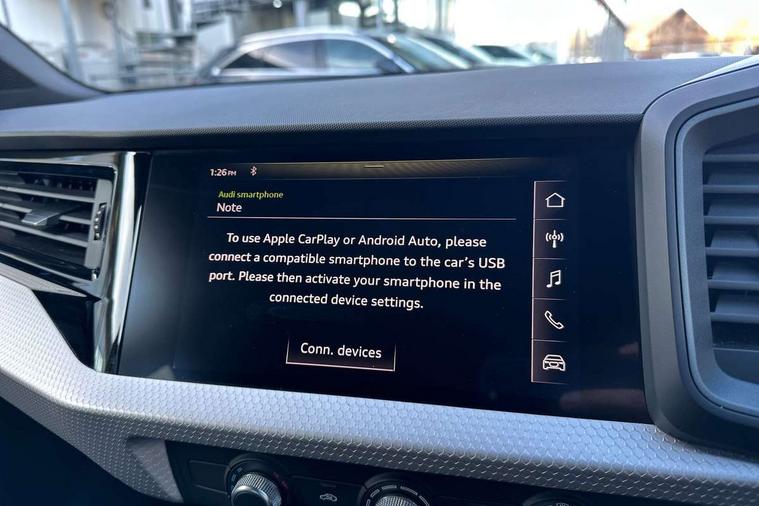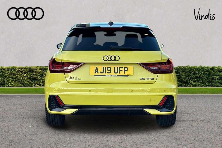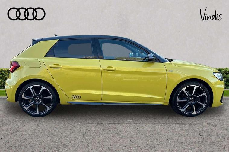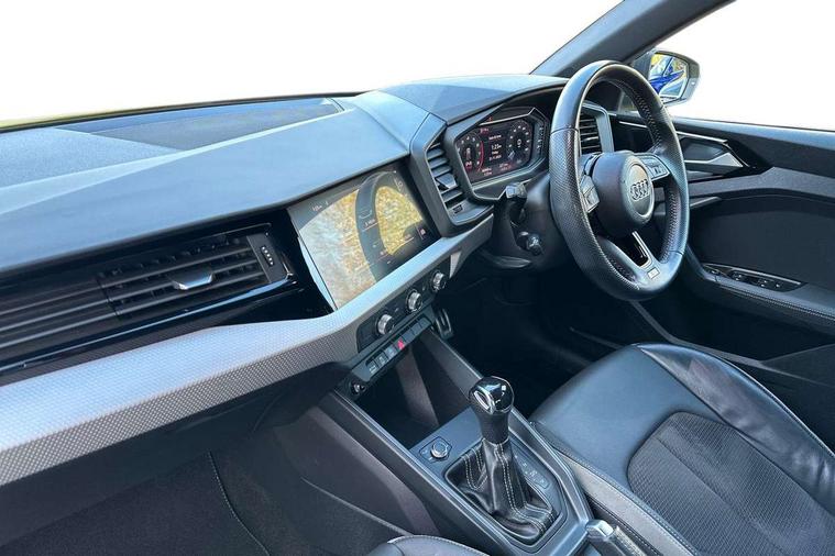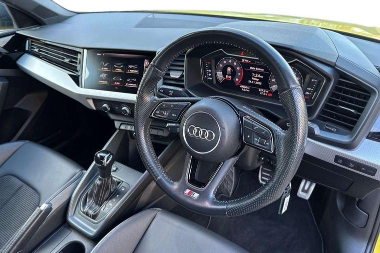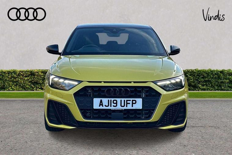 Aluminium trim for control switches, air vents and digital instrument cluster, Silver grey inlays polygon structure in diamond paint finish, Structured grey accent areas including air vents, door handle recesses and centre console in quartz paint finish, Black Styling pack - A1 Sportback, 18" 7 spoke rotor design alloy wheels in gloss anthracite black, diamond cut finish, Anti theft alarm, Anti theft wheel bolts and loose wheel warning, Audi pre-sense front with pedestrain and cyclist recognition, Immobiliser, Remote central locking with 2 remote folding keys, 1 x SDXC card reader, 1 x USB type C and 1 USB type A charging points, Audi music interface, Bluetooth audio streaming, DAB Digital radio, MMI radio plus with 8.8" colour MMI display screen and MMI touch, 3x3 point rear seatbelts, Brake assist function, Driver and front passenger airbag with front side and head airbags, Electronic Stability Control including ABS, EBD, ASR and EDL, Front and rear seatbelt reminder, Front passenger airbag deactivation switch, Hill hold assist, Seatbelt height adjustment for front seats, Seatbelt monitoring, Tyre pressure warning light, Warning triangle and first aid kit, Audi rings logo foil in black, Auto dimming rear view mirror, Body colour side sill mouldings, Darkened LED headlights with LED rear lights + dynamic rear indicators, Door sills with aluminium inlays and S Line logo, Electric front and rear windows, Exterior mirrors in contrast colour, Front side air inlets in grained matt black and C frame in titanium black, Heat insulating glass windscreen and side windows, Heated rear windscreen, Matt aluminium silver tailpipe trim, Matt black radiator grille frame, Matt platinum grey in front spoiler clip and rear diffuser clip, Metallic paint, Privacy glass - dark tinted rear and rear side windows from B-pillar backwards, Rain and light sensors, Rear fog lights, Rear wiper, S line badges on front wings, S line exterior bumpers, S line roof spoiler, Side air inlet frames titanium black, Side front spoiler lips in grained matt black, 12V socket in centre console with two cup holders, 3 rear seats, Black cloth headlining, Driver and passenger seat with manual height adjust with forward and backwards adjustment, Frequency alcantara/leather upholstery with contrast stitching in fine silver and S embossed logo + front sports seats, Front and rear black floor mats with contrast stitching in fine silver, Front head restraints, Height and reach adjustable steering wheel, ISOFIX child seat mounting in front passenger and rear outer seats, Leather gear knob with aluminium trim, Leatherette handbrake grip, Luggage compartment light with front and rear reading lights, Lumbar adjustment for front seats, Rear head restraints, Split folding rear seats, Stainless steel pedals, 10.25" Digital instrument cluster display screen, Audi connect safety emergency and service including E-call, Audi drive select, Audi smartphone interface, Automatic start/stop system, Bluetooth interface, Driver's information system, Electromechanical power steering, Lane departure warning system, Service interval indicator, Speed limiter, Voice control system, Washer fluid level indicator, Sports suspension,