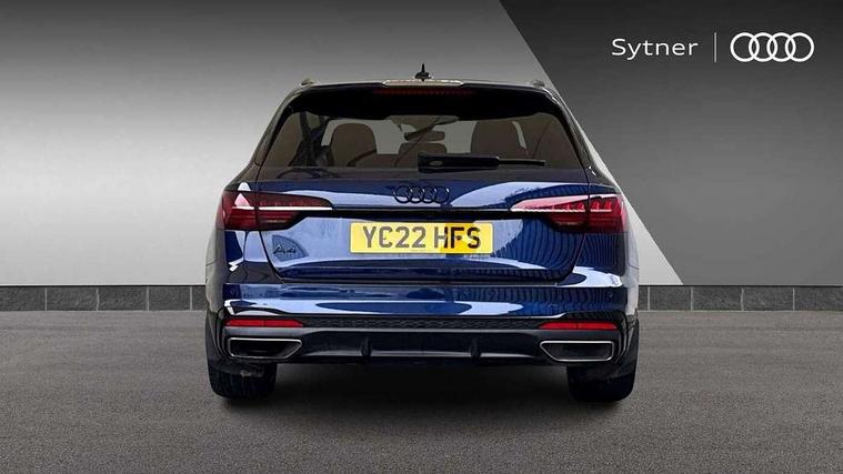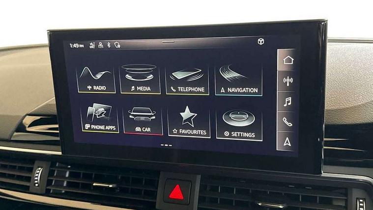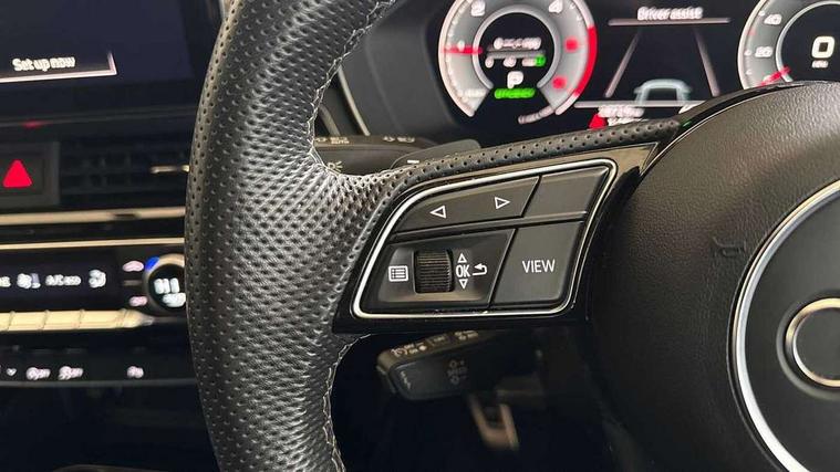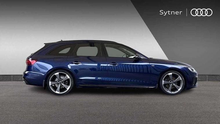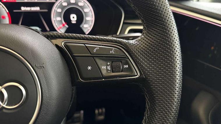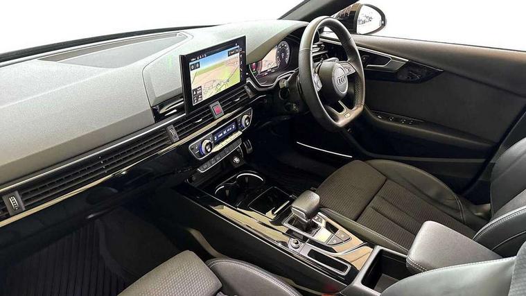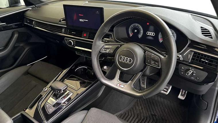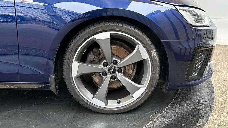 Piano black finish inlay, Black styling pack - A4 Avant, LED Interior light pack - A4/S4, Tyre repair kit, Anti theft alarm, Anti theft wheel bolts, Central locking, Keyless Go, 2 USB charging ports, 8 passive loudspeakers, DAB digital radio reception, 3 rear seatbelts, 6 airbags - Driver, front passenger, curtain and side windows, Electronic Stabilisation Control (ESC) including ABS, ASR and EDL, Hill hold assist, Multi collision brake assist, Pop-up bonnet for pedestrian protection, Pre sense city, Rear door child safety locks, Seatbelt monitoring, Warning triangle and first aid kit, Auto dimming rear view mirror, Black Audi rings and black badging (model name in black badging, no engine badging), Body colour door handles, Body colour front spoiler lip, Body colour side sill trim, Electrically folding auto dimming/adjustable/heated door mirrors with LED side indicators and kerb view function for passenger side, Front and rear bumpers with side skirts, Front wing badges, Grained matt black side air inlets with matt aluminium silver inlay, High beam assistant, High gloss black B pillar trims and triangular rear door trim, LED headlights with LED rear lights + dynamic rear indicators + headlight adjustment and high beam, turning light + LED daytime running lights, LED third brake light, Matt aluminium silver tailpipe trim, Privacy glass, Rain and light sensors, Rear diffuser in matt titanium black with trim strip in matt aluminium silver, Rear side wing doors, Rear wiper, RS4 rear spoiler in body colour, S Line roof edge spoiler, Variable intermittent front wash/wipe, Windscreen with acoustic glazing, 4 way electric lumbar support for driver and front passenger, 40/20/40 split folding 3 rear seat bench in 3 parts with rear centre armrest, Black cloth headlining, Black perforated leather gearknob, Contrast stitching on seats, steering wheel and gear lever gaiter, Deluxe 3 zone electronic climate control, Door sill trims with aluminium inlay, Electric load area cover, Front and rear head restraints, Front centre armrest, Heated front seats, Illuminated door sill trims with S logo, ISOFIX child seat mounting and top tether, Manual seat adjustment, Single front passenger seat, Stainless steel pedals and foot rest, Tool kit, Audi connect safety and service (e-call), Audi connect with Amazon Alexa Integration, Audi drive select, Audi parking system plus with front and rear sensors, Audi smartphone interface, Audi virtual cockpit, Automatic start-stop system with coasting functionality and efficiency programme, Bluetooth interface, Electromechanical power steering, Email, calendar and text messages displayed via MMI, MMI Navigation plus with MMI touch includes 10.1" high resolution colour MMI display, 3D map, Power operated tailgate, Rear view camera, Voice control system, Sports suspension lowered by 23mm,