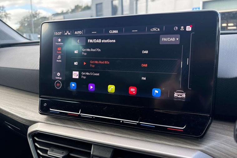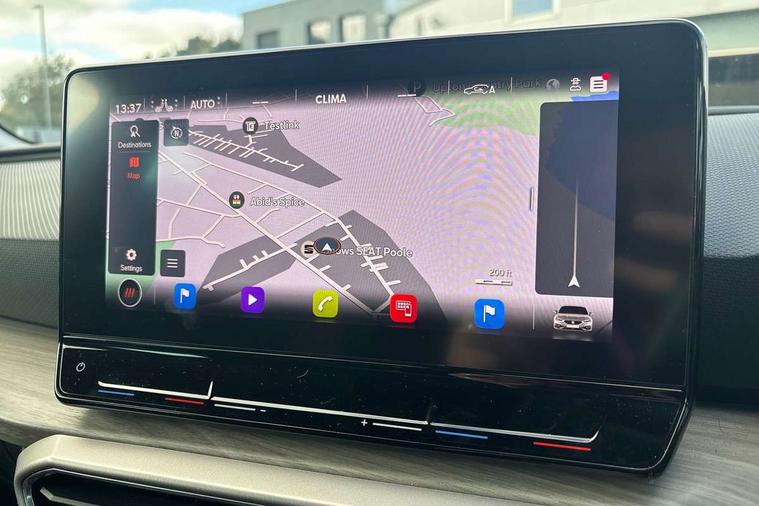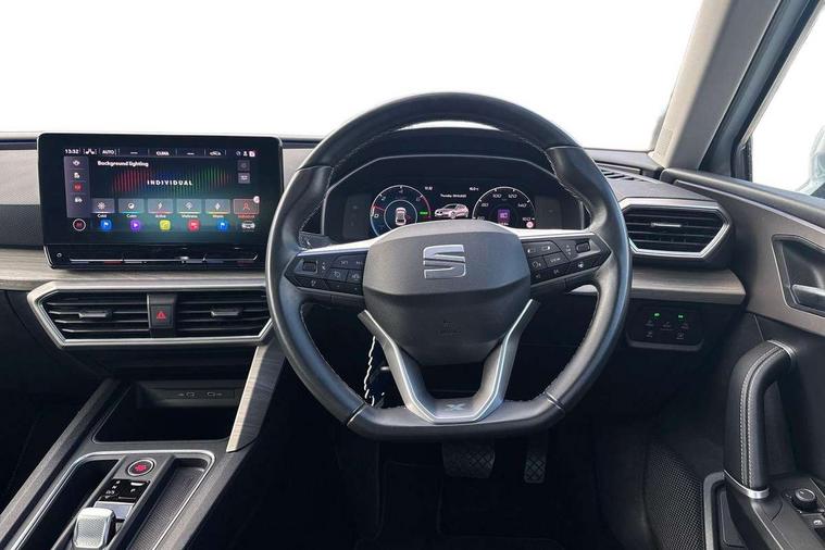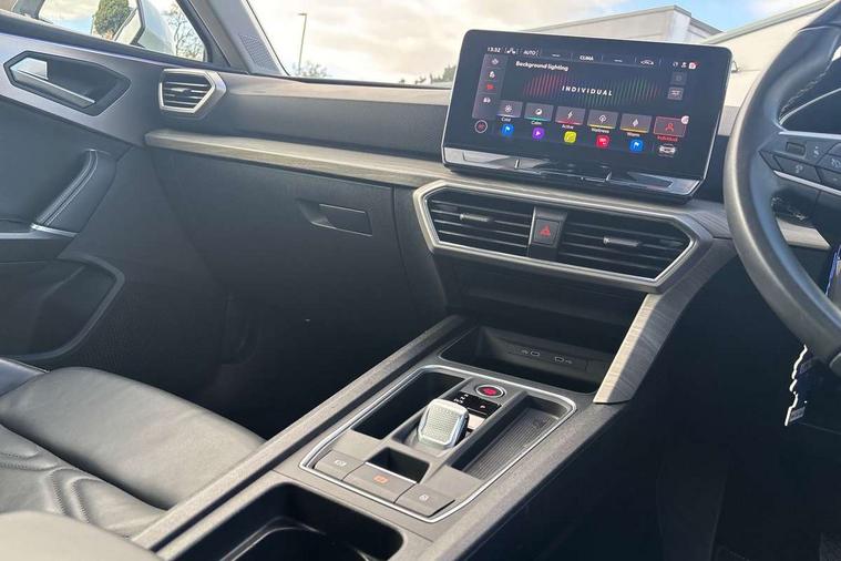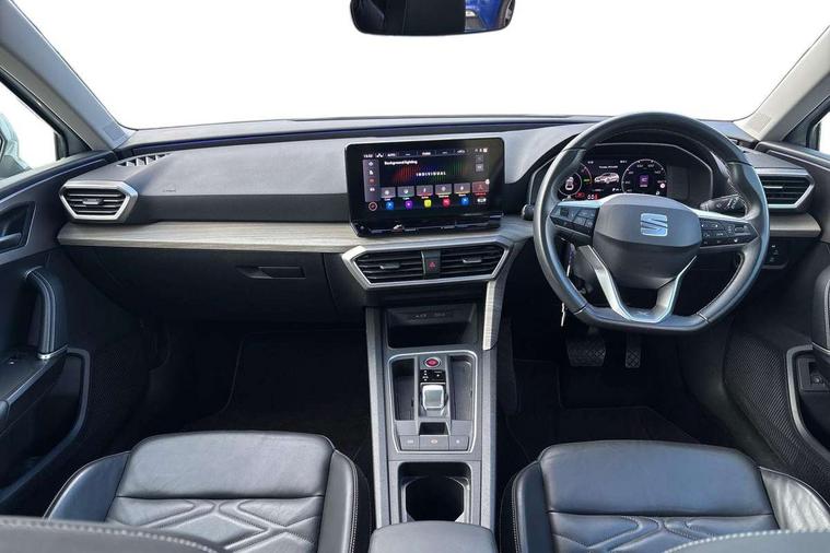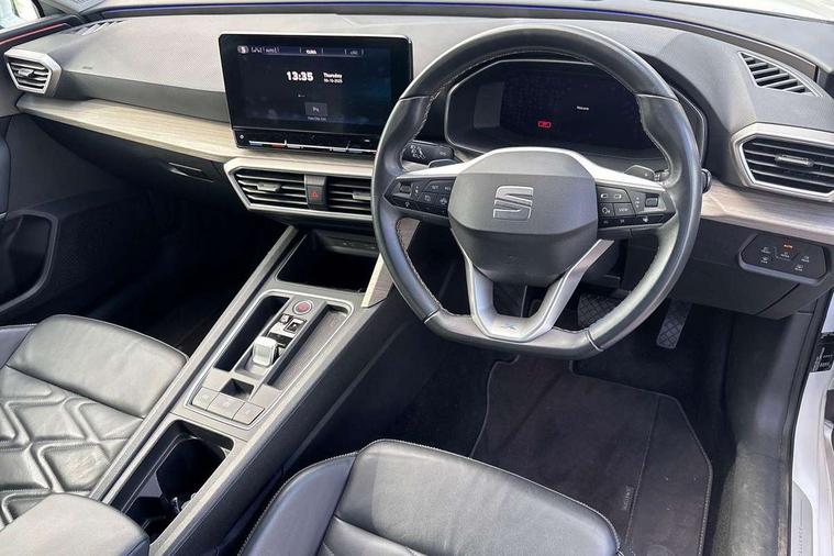 Chrome interior detailing, Media system plus with navigation - Leon, Safety and Driving pack (M) - Leon, 18" Aerodynamic performance nuclear grey alloy wheels with 92Y XL tyres, Emergency tyre repair kit, Anti theft alarm system with interior monitoring in cab, backup horn and towing protection, KESSY Advanced - Keyless start, keyless entry with SAFELOCK, Locking wheel bolts, Wireless phone charging, 7 speakers, Auxiliary input socket, 3 point seatbelts on all rear seats, ABS, Brake control system - ESC and brake booster, Child proof door locks, Driver and front passenger airbags with front passenger airbag de-activation, front side and curtain airbags, Electronic parking brake, Extended safety system - seat belt tensioner, window closure and hazard lights, Hill hold control, Rear disc brakes, Seat belt reminder for front and rear seats, Tiredness recognition system, driver alert system, Tyre pressure monitoring system, Auto dimming rear view mirror, Body colour door handles, Body coloured bumpers, Dark tinted rear windows, Door mirror LED indicator lights, Electric adjustable/heated/folding door mirrors with memory, Electric front/rear windows, Illuminated front door sill, LED front fog lamps with cornering function, LED headlights and tail lights with dynamic turn signals, welcome light silhouette from exterior mirrors and dynamic headlight range control, LED rear fog lamp, Rain sensing wipers, Rear wash/wipe, Separate daytime running light with automatic headlight control and coming home feature, 12v power point in centre console, 60/40 split rear bench seat with armrest, Ambient lighting with glovebox, footwell and single monocolour, Dust/pollen filter, Electric driver lumbar support + passenger manual lumbar support, Folding boot cover, Front and rear height adjustable headrests, Front and rear reading lights X 4, Front centre armrest, Front seatback storage pockets, Grey headlining, Heated front seats, Heated leather steering wheel with leather gearshift paddles, Height/reach adjust steering wheel, ISOFIX points in outer rear seats with top tether anchorage points, Luggage tie-down hooks, Nappa leather upholstery, Power driver seat with memory and manual height adjustable passenger seat, Sunvisors with covered illuminated mirror, Three zone climate control, Tool kit, Wraparound lighting, Digital cockpit, Four x USB Type C ports, Front assist with forward collision warning braking reaction to vehicles, pedestrians and cyclists, Full link smartphone integration with Mirror Link, wireless Apple CarPlay and wired Google Android Auto, Lane assist, Lockable tailgate, Park assist (inc front/rear parking sensors), Power assisted speed sensitive electro-mechanical steering, Rear view camera, RPM, trip computer, outside temp gauge, instrument light brightness, low fuel warning light, lights on reminder, gearshift indicator, Service interval indicator, Start/stop system with regenerative braking, 10 amp mode 2 charging cable, 16 amp mode 3 charging cable, XDS electronic differential lock and dynamic traction support,