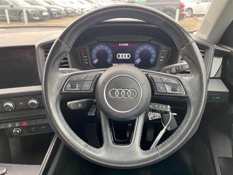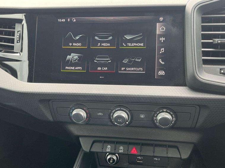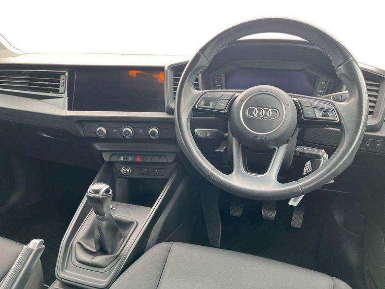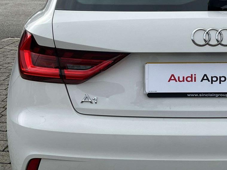Black inlays polygon structure, Luggage compartment pack - A1, 15" 5 arm design alloy wheels, Anti theft alarm, Anti theft wheel bolts and loose wheel warning, Audi pre-sense front with pedestrain and cyclist recognition, Immobiliser, Remote central locking with 2 foldaway keys, 1 x SDXC card reader, 1 x USB type C and 1 USB type A charging points, 6 passive loudspeakers, DAB Digital radio, MMI radio plus with 8.8" colour MMI display screen and MMI touch, 3x3 point rear seatbelts, Brake assist function, Driver and front passenger airbag with front side and head airbags, Electronic Stability Control including ABS, EBD, ASR and EDL, Front and rear seatbelt reminder, Front passenger airbag deactivation switch, Hill hold assist, Seatbelt height adjustment for front seats, Seatbelt monitoring, Tyre pressure warning light, Warning triangle and first aid kit, Auto dimming rear view mirror, Body coloured bumpers, Body coloured door mirrors, Electric front and rear windows, Electrically adjustable, heated, folding door mirrors with integrated LED side indicator, Front side air inlets with front spoiler lip and rear diffuser in matt black grained, Heat insulating glass windscreen and side windows, Heated rear windscreen, LED headlights with LED rear lights + dynamic rear indicators + headlight adjustment and high beam, turning light + LED daytime running lights, Radiator grille in matt black, Rain and light sensors, Rear fog lights, Rear wiper, 12V socket in centre console with two cup holders, 3 rear seats with headrests, 3 spoke leather multifunction plus steering wheel, 40:60 Split folding rear seat or folded fully, Air vents, door handle recesses and centre console in black, Delta cloth upholstery, Driver and passenger seat with manual height adjust with forward and backwards adjustment, Front head restraints, Front/rear floor mats, ISOFIX child seat mounting for front passenger and outer rear seats including top tether attachment point of outer rear seats, Leather gear knob with aluminium trim, Leatherette handbrake grip, Luggage compartment light with front and rear reading lights, Manual air conditioning, Titanium grey cloth headlining, 10.25" Digital instrument cluster display classis style instrument dials + speed, odometer, time, outside temperature, telephone menu + fuel level warning, Audi connect safety emergency and service including E-call, Audi smartphone interface with connect compatible smartphone via USB directly MMI display + Nav, music, third party apps controlled via MMI controller, Automatic start/stop system, Bluetooth interface, Driver's information system, Electromechanical power steering, Lane departure warning system, Service interval indicator, Speed limiter, Voice control system, Washer fluid level indicator, Dynamic suspension,