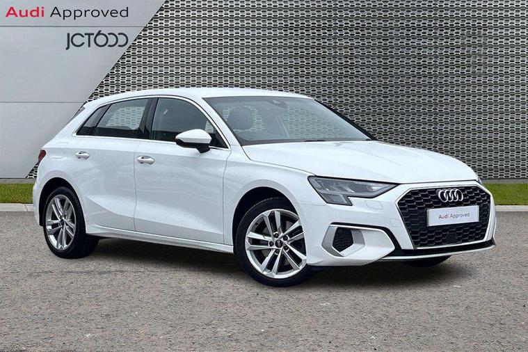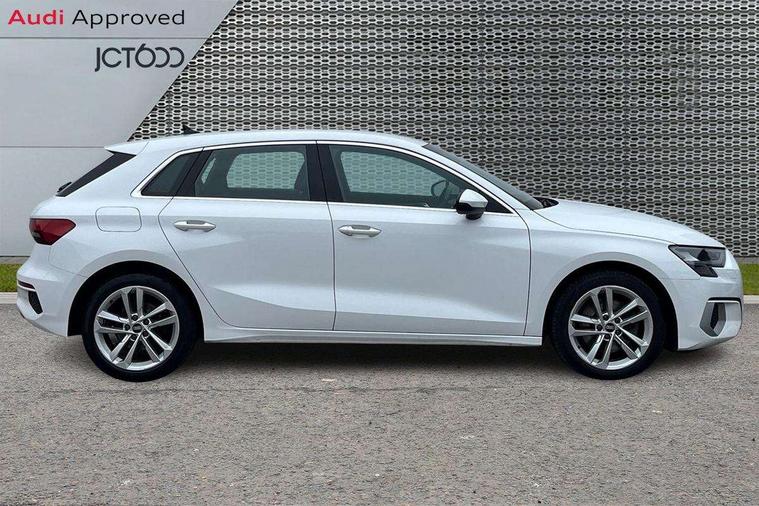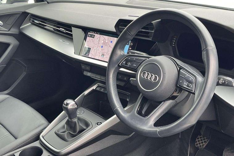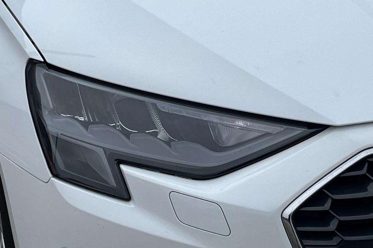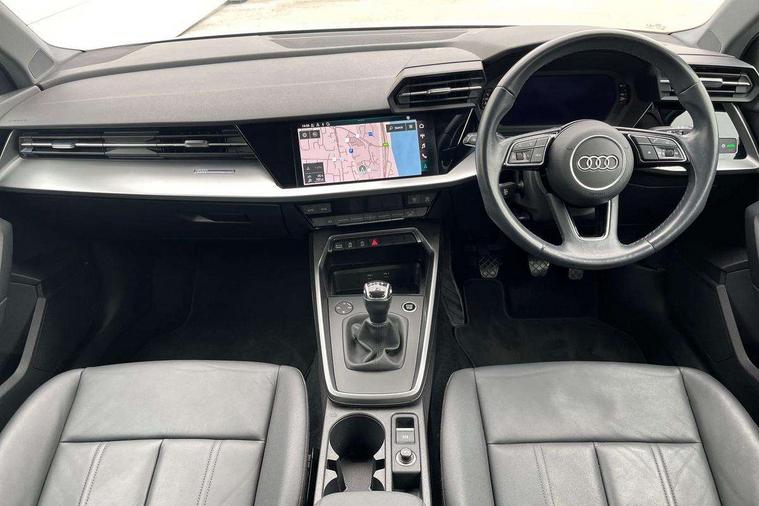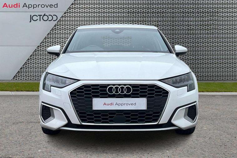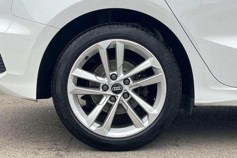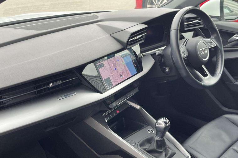 Inlays with silk effect paint in platinum grey, Aluminium interior elements pack - A3 Sportback, Sport styling pack - A3 Sportback, Anti theft alarm, Anti-theft wheel bolts, Electronically operated child lock, Immobiliser, Remote control central locking, 2xUSB-C connection with data and charging functions, 6 passive loudspeakers, DAB Digital radio, 3x3 point rear seat belts, Driver and front passenger airbag with passenger airbag deactivation, Electronic Stabilisation Control (ESC) including ABS, ASR and EDL, First aid kit with warning triangle and 2 safety vests, Front side airbags with head airbags and interaction airbag, Hill hold assist, Pre-sense front with pedestrian and cyclist detection, Seatbelt monitoring, Tyre pressure loss indicator, Acoustic glass windscreen, Aluminium window trim, Auto dimming frameless rear view mirror, Body colour exterior mirrors, Body colour roof spoiler, Electrically adjustable/heated/folding/dimming door mirrors with kerb view includes integrated LED indications + kerb view function for passenger side, Front electric windows, LED daytime running lights, LED headlights and halogen rear lights, Light and rain sensors, Rear electric windows, Rear window, rear door windows and rear side windows in clear glass, Rear wiper, 12V socket and storage compartment in front centre console, 40/20/40 split folding rear seat bench with cupholder, Dual zone electronic climate control, Front and rear centre armrest, Front and rear headrests, Front door sill trims with aluminium inlay, Front/rear floor mats, Height and reach adjustable steering wheel, Interior lighting - Front and rear roof module including reading lights, glove compartment light and right hand side, Luggage compartment floor covering, Manual boot compartment lid, Manually adjustable front seats, Seat side bolsters, Steel grey cloth headlining, Twin leather upholstery, Audi connect emergency call and service, Audi drive select (Auto, Comfort, Dynamic, Efficiency and Individual), Audi smartphone interface, Audi Virtual Cockpit - 10.25" digital and colour instrument cluster, Automatic start/stop system with recuperation, Bluetooth interface, Collision avoidance assistant, Cruise control, Electromechanical power speed sensitive steering, Lane departure warning system, MMI Navigation Plus with high resolution 10.1" colour touch screen display, Rear parking sensors, Service indicator, Trip computer, Voice control system with natural language interaction, Standard suspension,