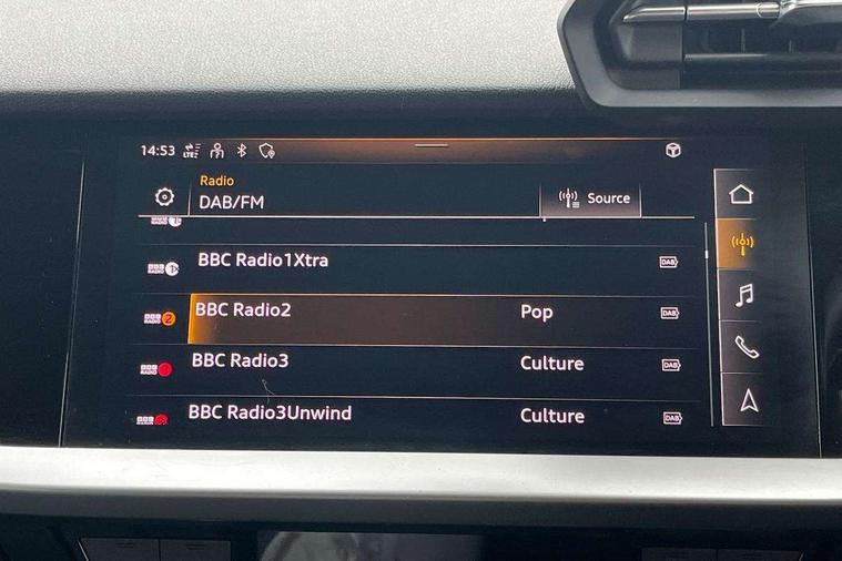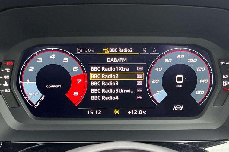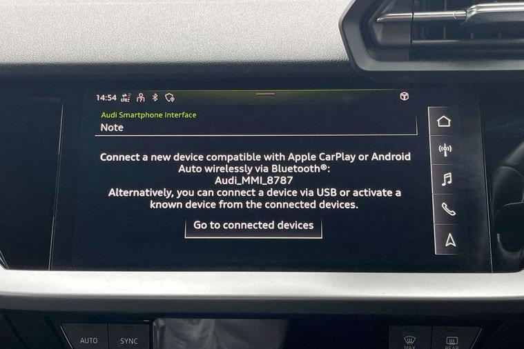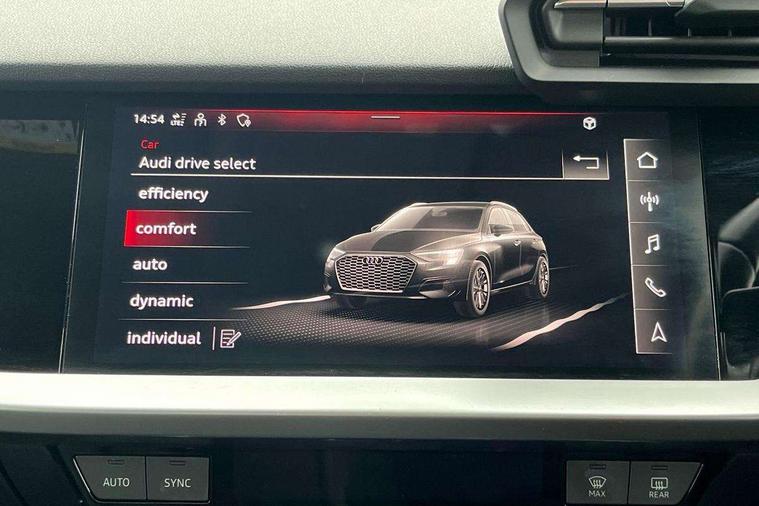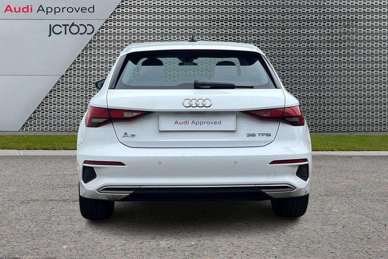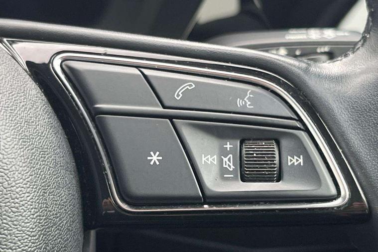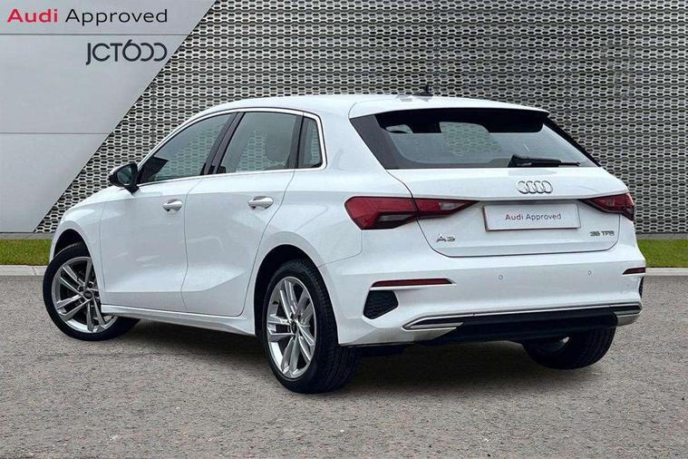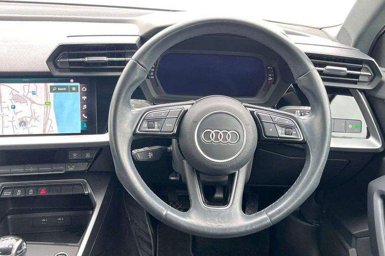 Inlays with silk effect paint in platinum grey, Aluminium interior elements pack - A3 Sportback, Sport styling pack - A3 Sportback, Anti theft alarm, Anti-theft wheel bolts, Electronically operated child lock, Immobiliser, Remote control central locking, 2xUSB-C connection with data and charging functions, 6 passive loudspeakers, DAB Digital radio, 3x3 point rear seat belts, Driver and front passenger airbag with passenger airbag deactivation, Electronic Stabilisation Control (ESC) including ABS, ASR and EDL, First aid kit with warning triangle and 2 safety vests, Front side airbags with head airbags and interaction airbag, Hill hold assist, Pre-sense front with pedestrian and cyclist detection, Seatbelt monitoring, Tyre pressure loss indicator, Acoustic glass windscreen, Aluminium window trim, Auto dimming frameless rear view mirror, Body colour exterior mirrors, Body colour roof spoiler, Electrically adjustable/heated/folding/dimming door mirrors with kerb view includes integrated LED indications + kerb view function for passenger side, Front electric windows, LED daytime running lights, LED headlights and halogen rear lights, Light and rain sensors, Rear electric windows, Rear window, rear door windows and rear side windows in clear glass, Rear wiper, 12V socket and storage compartment in front centre console, 40/20/40 split folding rear seat bench with cupholder, Dual zone electronic climate control, Front and rear centre armrest, Front and rear headrests, Front door sill trims with aluminium inlay, Front/rear floor mats, Height and reach adjustable steering wheel, Interior lighting - Front and rear roof module including reading lights, glove compartment light and right hand side, Luggage compartment floor covering, Manual boot compartment lid, Manually adjustable front seats, Seat side bolsters, Steel grey cloth headlining, Twin leather upholstery, Audi connect emergency call and service, Audi drive select (Auto, Comfort, Dynamic, Efficiency and Individual), Audi smartphone interface, Audi Virtual Cockpit - 10.25" digital and colour instrument cluster, Automatic start/stop system with recuperation, Bluetooth interface, Collision avoidance assistant, Cruise control, Electromechanical power speed sensitive steering, Lane departure warning system, MMI Navigation Plus with high resolution 10.1" colour touch screen display, Rear parking sensors, Service indicator, Trip computer, Voice control system with natural language interaction, Standard suspension,