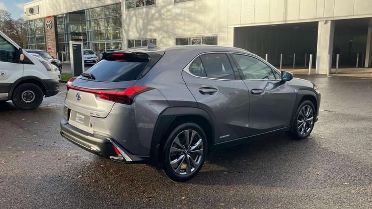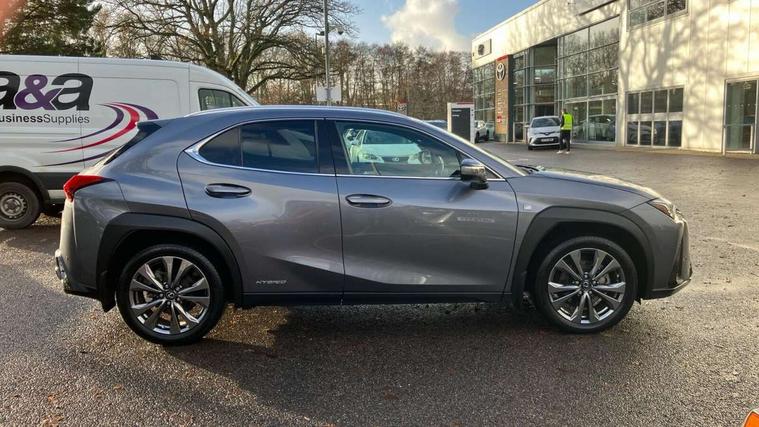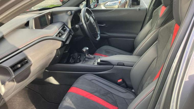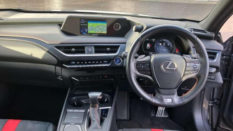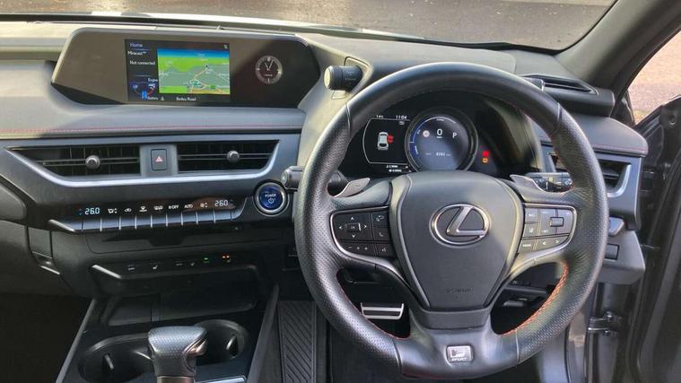 18" F Sport alloy wheels with run flat tyres, 2 x remote key fobs, Anti theft system : Alarm instruction sensor, glass breakage sensor and engine immobiliser, Locking wheel nuts, Remote central door locking, Speed sensitive auto door locking, Two motion door lock with double lock, VIN Window etching, 2 front USB and 2 rear USB charging points, 6 speakers, AM/FM and DAB radio, AUX socket with VTR compatibility, CD player, 2 x Isofix child rear seat restraints, 3x3 point rear seatbelts, Anti-lock braking system (ABS), BAS (Brake Assist System), Driver and front passenger 2 stage airbag, Driver and front passenger knee airbag, Driver/front passenger side airbags, EBD - Electronic brakeforce distribution, ECB (Electronically Controlled Brake System), Electric parking brake, Front adjustable seatbelt anchor points, Front and rear curtain shield airbags, Front outer seatbelt+pre-tensioners, force limiter+tension reduction: 3-point with active safety link to PCS, Hill start assist control (HAC), Passenger airbag cut-off device, Rear outer seatbelt+pre-tensioners, force limiter+tension reduction: 3-point with active safety link to PCS, Centre belt w/o pre tensioner+force limiter, Secondary Collision Brake (SCB), TRC (Traction Control), Tyre pressure warning, Acoustic windscreen, Aero stabilising arch mouldings, Aero stabilising rear lights, Aero ventilated wheels, Aluminium roof rails, Auto dimming interior rear view mirror, Bi-LED (low and high beam) headlights with Auto High Beam (AHB), Black roof drip mouldings, Body adhesive, laser screw welding and laser brazed roof structure, Body coloured bumpers, Colour coded wheel arches, Electric adjustable/heated door mirrors, F SPORT exterior styling consists of black Mesh front grille, enhanced side rockers, metallic coated front bumper and F SPORT badging, Front and rear one touch power windows, with anti-jam protection, Headlight cleaners, LED cornering headlights, LED daytime running lights, LED front and rear fog lights, LED tail lights, LED third brake light, Privacy glass, rear doors and tailgate, Rain sensor windscreen wipers, Rear wiper, Shark fin roof aerial, Single hidden exhaust pipe, Towing preparation, Variable front intermittent wipers, 12V accessory port centre console and luggage compartment, 2 cup holders in the front and rear centre console, 2 way electrical lumbar adjustment for driver, 2 x folding shopping bag hooks in boot, 2 x sun visors with vanity mirror and lamp, 4 x tie down hooks in the boot, 5 headrests, 60/40 split folding rear seat, 8 way driver/passenger electrically adjustable front seats, Active sound control, Card holder installed in driver and passengers sun visors, Centre armrest with storage, Driver and passenger door pocket, Dual zone electronic climate control + Nano-E humidity sensor, F SPORT Aluminium front scuff plates, F Sport aluminium sports pedals, F SPORT dimpled leather gear lever, F SPORT front seat headrest adjustable forwards and backwards, F Sport interior styling, F Sport leather steering wheel with paddle shifts, Fabric/Tahara leather upholstery, Glovebox, Heated front seats, Heated steering wheel, Illuminated entry system, LED interior illumination, Map pockets in the rear of passenger's front seat, Rear air vents with 2 USB chargers, Rear armrest with 2 cupholders, Storage tray under audio panel, Textile carpet mats, Tilt/reach adjustable steering column, Under deck storage, Under desk side storage, 4 driving modes EV/Eco/Normal/Sport, 7" Lexus media display, 8" LFA inspired TFT meters with movable meter ring, Analogue clock with GPS function, Apple car play/Android Auto, Compatible mobile phone bluetooth with audio streaming, E-call, Electric power steering (EPS) with speed sensitive features, Front and rear parking sensor with intelligent clearance sonar, Lane change flasher function, Lexus link connected services, Lexus navigation system, Lexus safety systems + includes dynamic radar cruise control, pre collision system day and night, lane tracing assist, road sign assist, Push button start, Remote touch interface, Reversing camera with back guide lines, Trip computer, F Sport suspension tuning and rear performance dampers, Vehicle Dynamics Integrated Management (VDIM), Vehicle Stability Control (VSC),