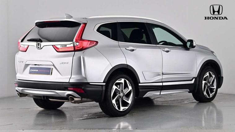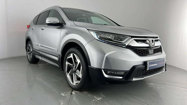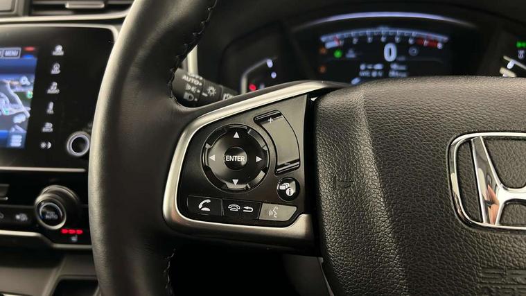 19" Alloy wheels, Temporary spare wheel, Honda super locks, Immobiliser, Remote keyless entry, Security alarm, Ultrasonic sensor and tilt sensor, 2 USB sockets in rear, 2x USB sockets in front, 8 speakers, DAB Digital radio, Steering wheel mounted controls, Subwoofer, 5 x 3 point seatbelts, ABS/EBD, Anti-whiplash front headrests, Brake assist function, Collision mitigation braking system, Deflation detection system, Driver airbag, Electronic parking brake with auto hold, Front and rear curtain airbags, Front side airbags, Hill start assist, Passenger airbag deactivate switch, Aspheric door mirrors, Auto dimming rear view mirror, Automatic headlights with dusk sensor, Body colour bumpers, Body colour door handles, Cornering light, Door mirrors tilt when reversing, Electric front windows/one touch facility, Electric rear windows + one touch facility, Electrically adjustable and heated door mirrors, Electrically retractable door mirrors, Front windscreen de-icer, High beam assist, LED daytime running lights, LED front fog lights, LED Headlights, LED rear lights, Panoramic opening glass sunroof, Rain sensor, Rear privacy glass, Rear wiper, Roof rails, Shark fin roof aerial, Trailer stability assist, Welcome home function, 60/40 split folding rear seat, 8 way electrically adjustable drivers seat + mirror memory, Accessory sockets, Ambient interior lighting, Ambient light in roof, AWD emblem rear, Cargo hooks, Courtesy lights, Driver's electric adjustable lumbar support, Driver/passenger front seatback pockets, Driver/passenger sunvisors with illuminated vanity mirrors, Dual zone automatic climate control, Electric lumbar adjustment on passenger's seat, Footwell ambient lighting, Front centre armrest, Front map lights, Front passenger seat height adjust, Gear shift indicator, Heated front seats, Heated rear seats, Heated steering wheel, Illuminated glovebox, Instrument panel with garnish wood film, Isofix child seat preparation, Leather gearknob, Leather steering wheel, Leather upholstery, Rear air vents, Rear centre armrest, Rear headrests, Rear reading lights, Silver interior door handles, Sunglasses holder with mirror, Tilt/telescopic adjustable steering wheel, Tonneau cover, Trunk light, Adaptive cruise control, Agile handling assist, BLIS (Blind Spot Information System) with dual power heated blind spot mirrors, Bluetooth hands free telephone connection, Economy mode, Electric power steering, Emergency stop signalling system, Forward collision warning, Front and rear parking sensors, Hands free tailgate, Head up Display, Honda CONNECT with GARMIN Navigation + 7" touchscreen, DAB radio, Apple CarPlay, Android Auto, Aha app integration and internet browsing, Idle stop, Intelligent multi info display, Lane departure warning system, Lane keep assist system, Rear view camera, Road departure mitigation, Speed limiter, Traffic sign recognition, Vehicle stability assist,