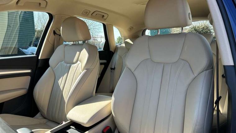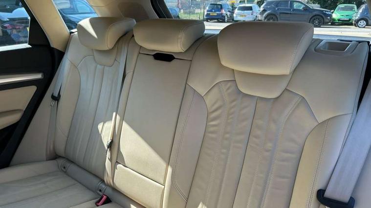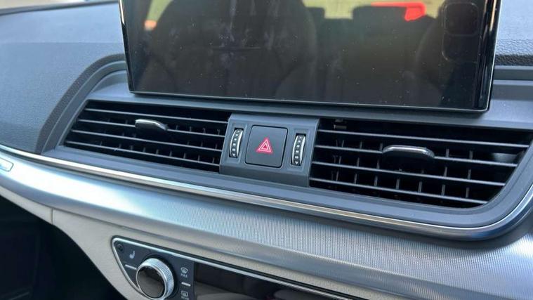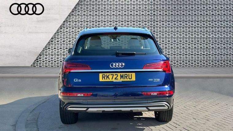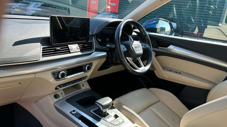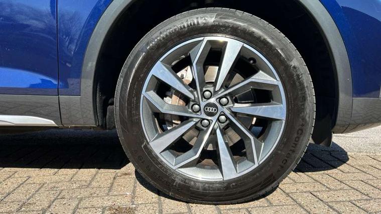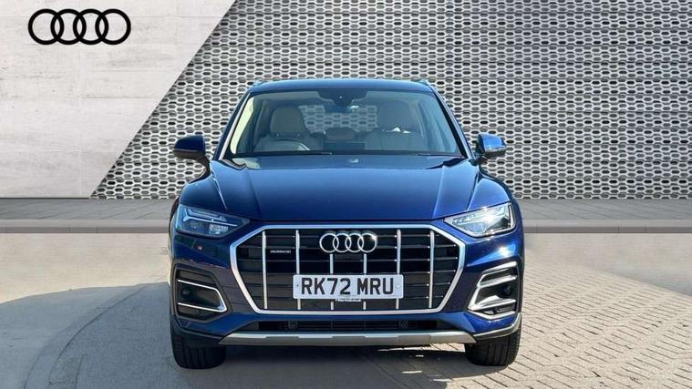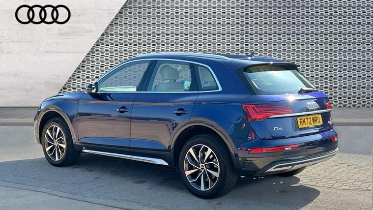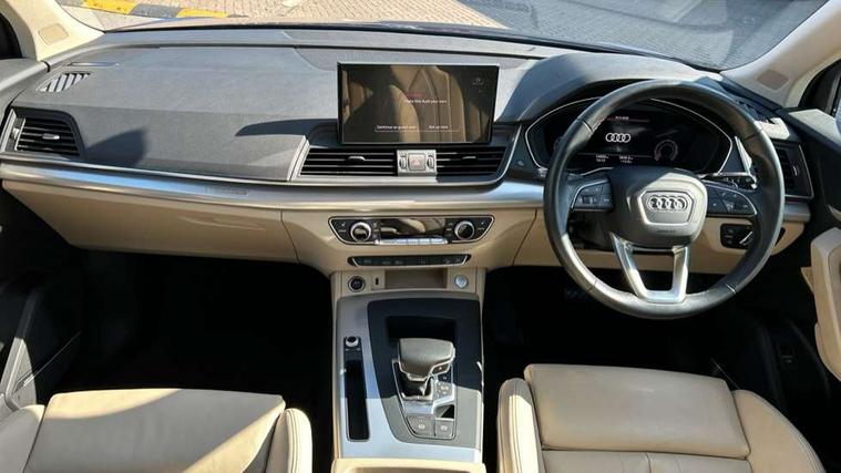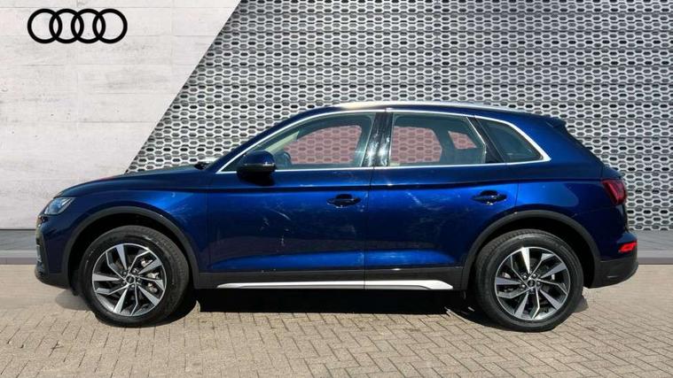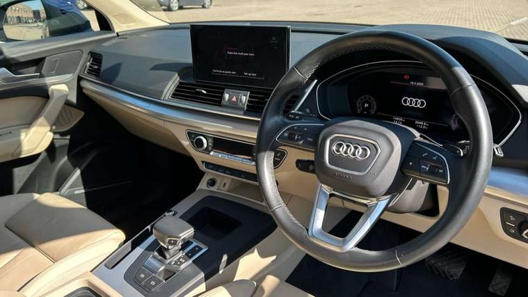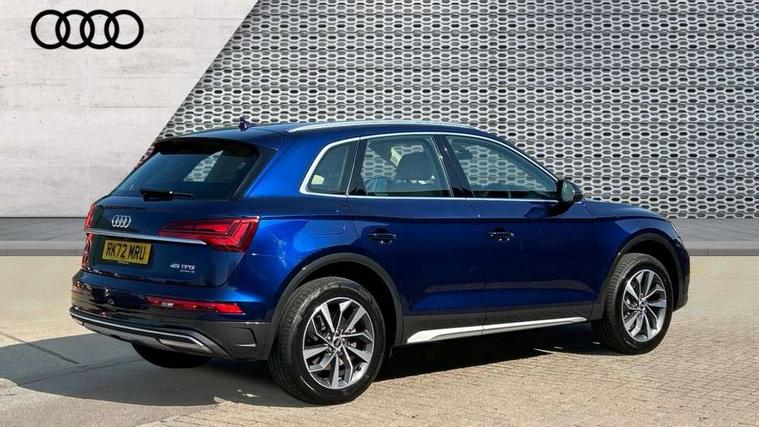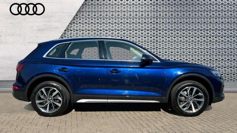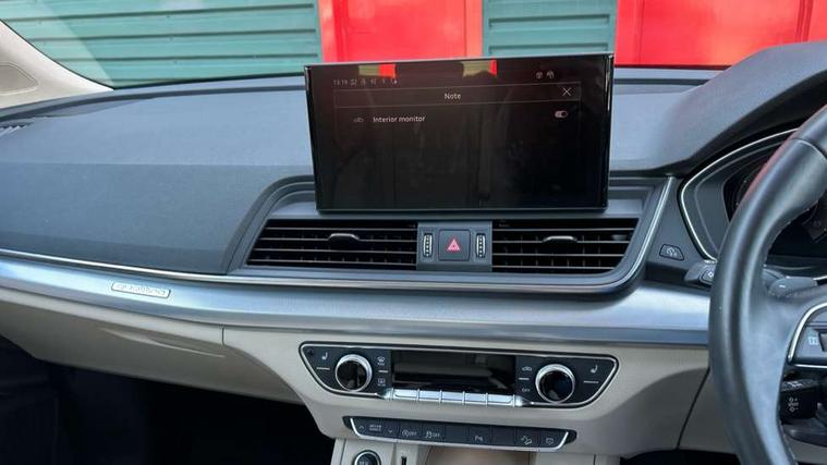 Audi connect safety and service (e-call), Audi connect with Amazon Alexa Integration, Audi drive select, Audi virtual cockpit plus with 12.3" screen and three different layout designs, Audi wireless smartphone interface, Automatic start-stop system with coasting functionality and efficiency programme, Bluetooth interface, Cruise control + speed limiter, Electro - mechanical power assisted steering, MMI navigation plus with 10.1" touch screen, Power tailgate, Reversing camera, Service interval indicator, Voice control system with Audi hotword activation "Hey Audi", Dynamic suspension, Quattro on demand, DAB Digital radio, 3rd brake light, Acoustic windscreen, Air inlets in matt titanium black with blades in matt aluminium silver, Aluminium roof rails, Auto dimming door mirrors, Auto dimming rear view mirror, Automatic headlight adjustment, Automatic headlights and windscreen wipers, Body colour bumpers, Body colour door mirrors, Chrome plated exhaust trims, Daytime running lights, Door sills in Selenite silver, Electric adjustable/heated/folding door mirrors, Front and rear electric windows, LED headlights and LED tail lights, Lower bumpers painted in contrast Manhattan grey, Matt selenite silver underbody protection, Matt twilight grey radiator grille with chrome vertical struts, Rear chrome trim strip below lights, Rear diffuser strip in selenite silver, Rear side wing doors, Rear spoiler, Rear wiper, Roof bars, 2 x USB charging port with aux input socket, 3 rear headrests, 3 spoke multifunction leather steering wheel with shift paddles, 40:20:40 split folding 3 rear bench seat in 2nd row with rear centre armrest, Comfort front centre armrest, Deluxe 3 zone electronic climate control, Door sills trims with aluminium inlays, Front/rear floor mats, Heated front seats, Height adjustable front head restraints, Height/reach adjustable steering column, ISOFIX child seat mounting and top tether, Luggage compartment cover, Manual seat adjustment with 4-way electric lumbar support, Removable luggage compartment floor, Silver cloth headlining, Single front passenger seat, Sunvisors with vanity mirrors, Twin leather upholstery + front sports seats, High gloss pack - Q5, LED interior light pack - Q5, 3 point seatbelts on all seats, 6 airbags - Driver, front passenger, curtain and side airbags, Electrically operated child locks on rear doors, Electromechanical parking brake, Electronic stabilisation control including ABS, ASR and EDL, Front passenger airbag deactivation, Hill descent control, Hill hold assist, Multi collision brake assist, Pop-up bonnet for pedestrian protection, Pre sense city, Seat belt force limiter, Seatbelt monitoring, Tyre pressure warning, Warning triangle and first aid kit, Anti theft alarm, Anti-theft wheel bolts, Keyless Go access/ignition system, Remote central locking, Aluminium rhombus inlay,