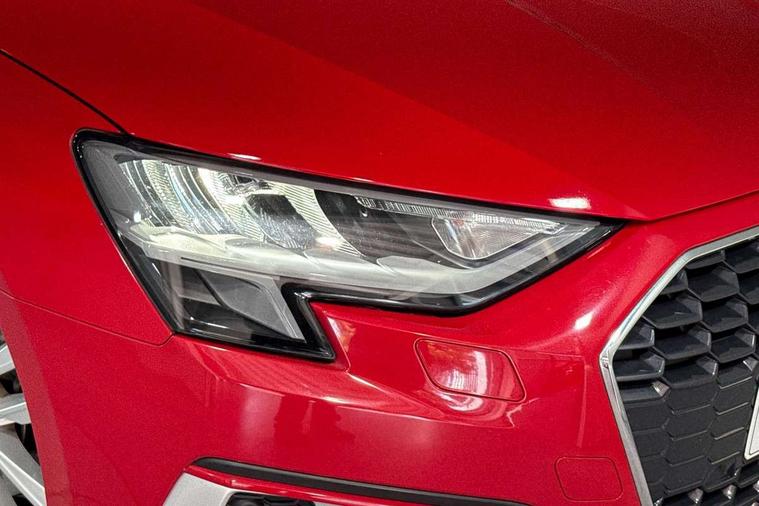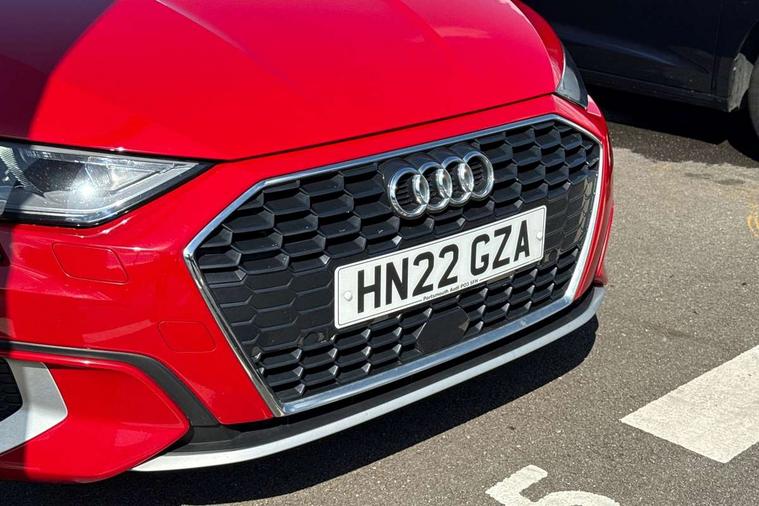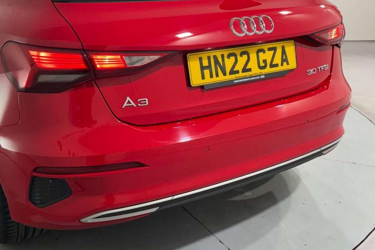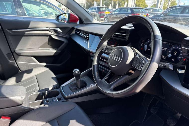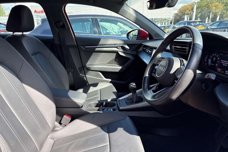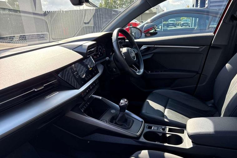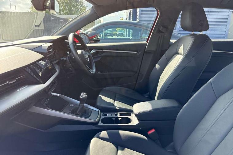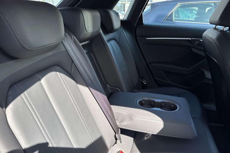 Audi connect emergency call and service, Audi drive select (Auto, Comfort, Dynamic and Individual), Audi smartphone interface, Audi Virtual Cockpit - 10.25" digital and colour instrument cluster, Automatic start/stop system with recuperation, Bluetooth interface, Collision avoidance assistant, Electromechanical power speed sensitive steering, Lane departure warning system, MMI Navigation Plus with high resolution 10.1" colour touch screen display, Service indicator, Trip computer, Voice control system with natural language interaction, Standard suspension, 2xUSB-C connection with data and charging functions, 6 passive loudspeakers, DAB Digital radio, 3rd brake light, Acoustic glass windscreen, Aluminium window trim, Auto dimming frameless rear view mirror, Body colour exterior mirrors, Body colour roof spoiler, Electrically adjustable/heated/folding/dimming door mirrors with kerb view includes integrated LED indications + kerb view function for passenger side, Front electric windows, LED daytime running lights, LED headlights and halogen rear lights, Light and rain sensors, Rear electric windows, Rear window, rear door windows and rear side windows in clear glass, Rear wiper, 12V socket and storage compartment in front centre console, 40/20/40 split folding rear seat bench with cupholder, Dual zone electronic climate control, Front and rear centre armrest, Front and rear headrests, Front door sill trims with aluminium inlay, Front/rear floor mats, Height and reach adjustable steering wheel, Interior lighting - Front and rear roof module including reading lights, glove compartment light and right hand side, Luggage compartment floor covering, Manual boot compartment lid, Manually adjustable front seats, Seat side bolsters, Steel grey cloth headlining, Twin leather upholstery, Aluminium interior elements pack - A3 Sportback, Sport styling pack - A3 Sportback, 3x3 point rear seat belts, Driver and front passenger airbag with passenger airbag deactivation, Electronic Stabilisation Control (ESC) including ABS, ASR and EDL, First aid kit with warning triangle and 2 safety vests, Front side airbags with head airbags and interaction airbag, Hill hold assist, Pre-sense front with pedestrian and cyclist detection, Seatbelt monitoring, Tyre pressure loss indicator, Anti theft alarm, Anti-theft wheel bolts, Electronically operated child lock, Immobiliser, Remote control central locking, Inlays with silk effect paint in platinum grey,