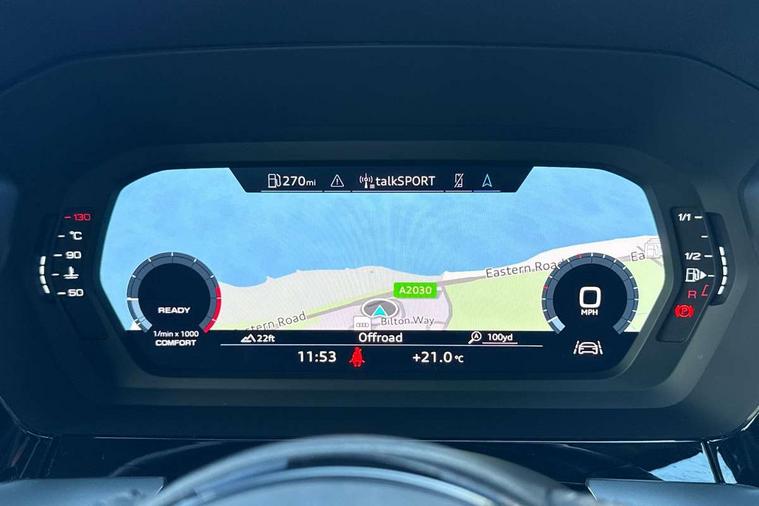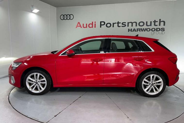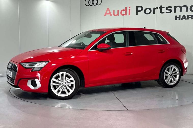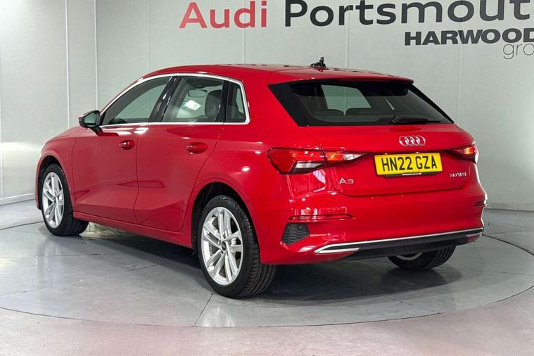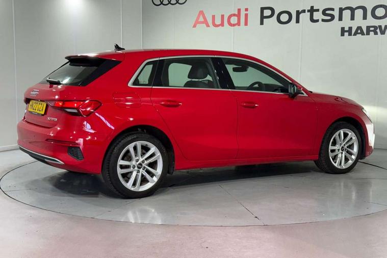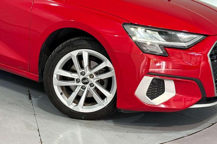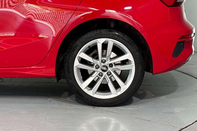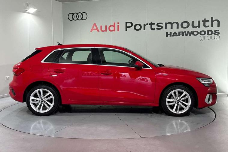 Audi connect emergency call and service, Audi drive select (Auto, Comfort, Dynamic and Individual), Audi smartphone interface, Audi Virtual Cockpit - 10.25" digital and colour instrument cluster, Automatic start/stop system with recuperation, Bluetooth interface, Collision avoidance assistant, Electromechanical power speed sensitive steering, Lane departure warning system, MMI Navigation Plus with high resolution 10.1" colour touch screen display, Service indicator, Trip computer, Voice control system with natural language interaction, Standard suspension, 2xUSB-C connection with data and charging functions, 6 passive loudspeakers, DAB Digital radio, 3rd brake light, Acoustic glass windscreen, Aluminium window trim, Auto dimming frameless rear view mirror, Body colour exterior mirrors, Body colour roof spoiler, Electrically adjustable/heated/folding/dimming door mirrors with kerb view includes integrated LED indications + kerb view function for passenger side, Front electric windows, LED daytime running lights, LED headlights and halogen rear lights, Light and rain sensors, Rear electric windows, Rear window, rear door windows and rear side windows in clear glass, Rear wiper, 12V socket and storage compartment in front centre console, 40/20/40 split folding rear seat bench with cupholder, Dual zone electronic climate control, Front and rear centre armrest, Front and rear headrests, Front door sill trims with aluminium inlay, Front/rear floor mats, Height and reach adjustable steering wheel, Interior lighting - Front and rear roof module including reading lights, glove compartment light and right hand side, Luggage compartment floor covering, Manual boot compartment lid, Manually adjustable front seats, Seat side bolsters, Steel grey cloth headlining, Twin leather upholstery, Aluminium interior elements pack - A3 Sportback, Sport styling pack - A3 Sportback, 3x3 point rear seat belts, Driver and front passenger airbag with passenger airbag deactivation, Electronic Stabilisation Control (ESC) including ABS, ASR and EDL, First aid kit with warning triangle and 2 safety vests, Front side airbags with head airbags and interaction airbag, Hill hold assist, Pre-sense front with pedestrian and cyclist detection, Seatbelt monitoring, Tyre pressure loss indicator, Anti theft alarm, Anti-theft wheel bolts, Electronically operated child lock, Immobiliser, Remote control central locking, Inlays with silk effect paint in platinum grey,