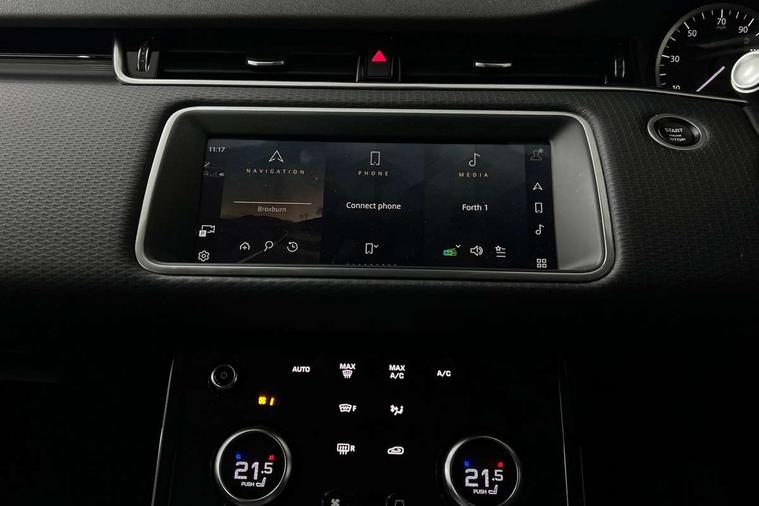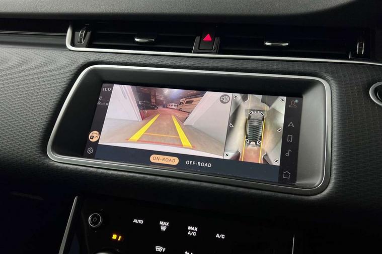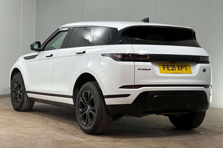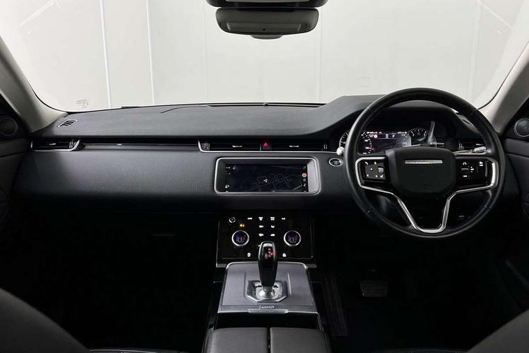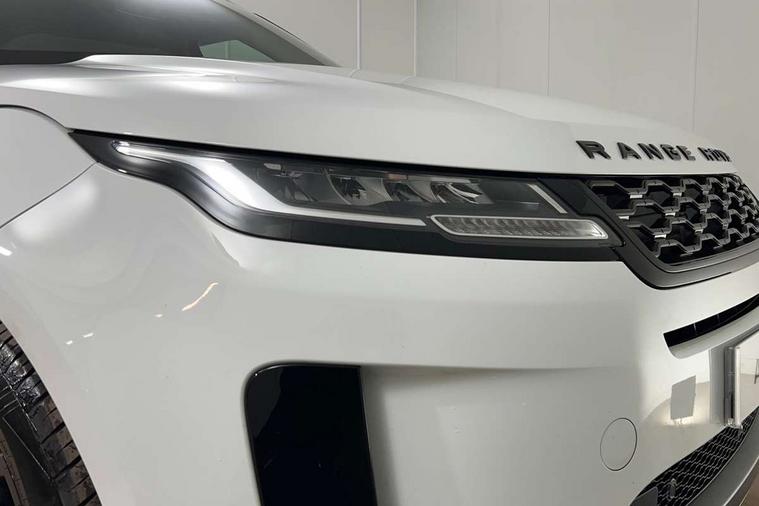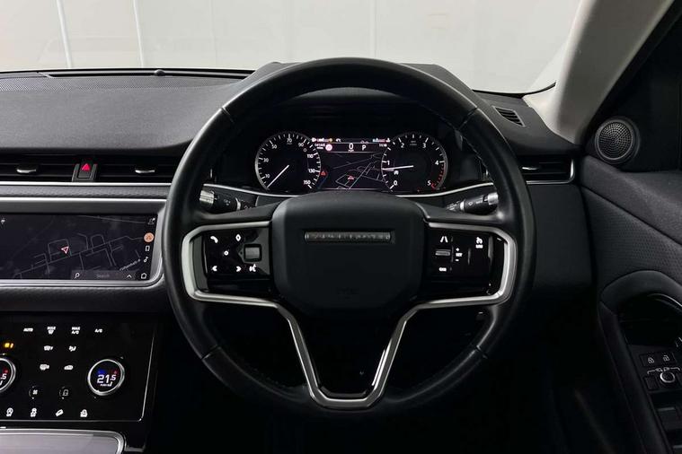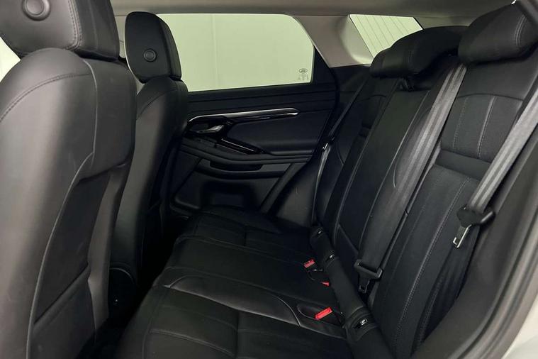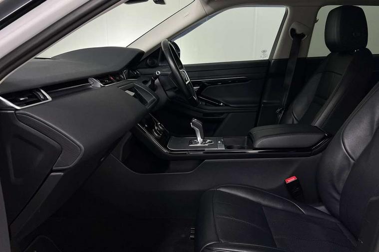 Alarm, Immobiliser, Intrusion sensor, Locking wheel nuts, Digital Audio Broadcast radio-DAB, Steering wheel mounted controls, 3 rear 3 point seatbelts, Anti-lock braking system (ABS), Customer configurable autolock, DSC - Dynamic Stability Control, Electronic brake force distribution, Electronic parking brake, Electronic traction control, Emergency braking, Front and rear seatbelt reminder, Hill descent control, Hill launch assist, Low traction launch, Power operated child locks, Roll stability control, Six airbags - Driver and passenger airbags/driver knee airbag/front side airbag and curtain airbags, Torque vectoring brake, Tyre pressure monitoring system, Electric windows with one touch open/close and anti trap, Evoque badge, Flush deployable exterior door handles, Heated rear window with timer, Heated washer jets, Heated windscreen, Power fold, auto-dimming, heated door mirrors with approach lights and auto dimming driver side, Rain sensing windscreen wipers, Rear fog lights, Tailgate spoiler, 40:20:40 split folding rear seats with centre headrest and armrest, Ambient interior lighting, Isofix system on outer rear seats, Overhead lighting console, Overhead stowage for sunglasses, Passive front head restraints, Rear air vents, Rear centre headrest, Sunvisors with illuminated vanity mirrors, Twin sliding front centre armrest, 3D 360 degree surround camera, Android Auto, Apple car play, Bluetooth connectivity, Brake pad wear indicator warning light, Driver condition monitor, Electronic power assisted steering (EPAS), Front and rear parking aid, InControl remote, Land Rover InControl apps, Lane keep assist, Pivi pro connected includes upgraded infotainment, connected navigation pro, Nuance speech licence, Push button starter, Traffic sign recognition with adaptive speed limiter, Voice control system, Wade Sensing, All terrain progress control, Efficient Driveline, Passive suspension, Terrain Response 2 Auto,