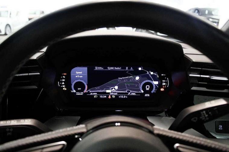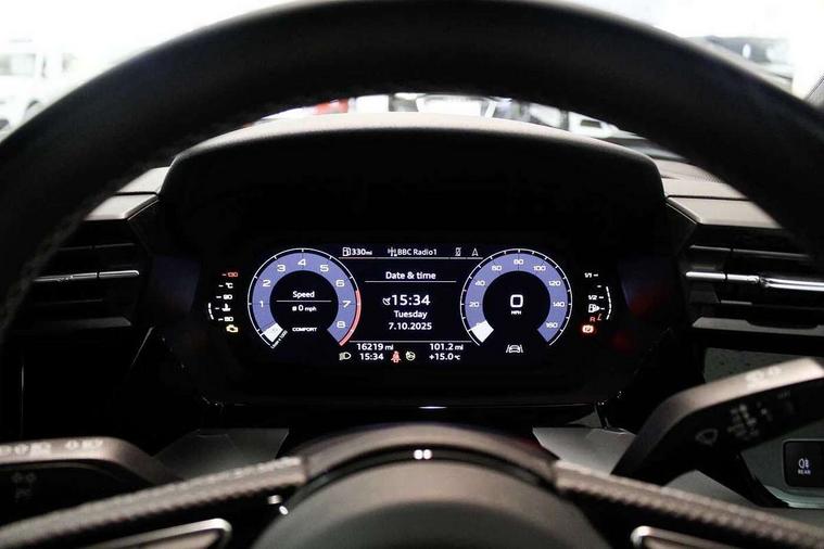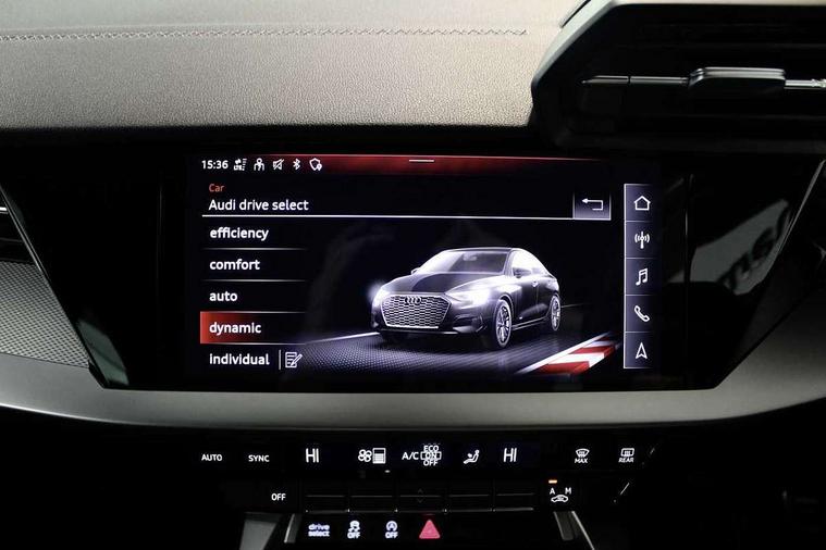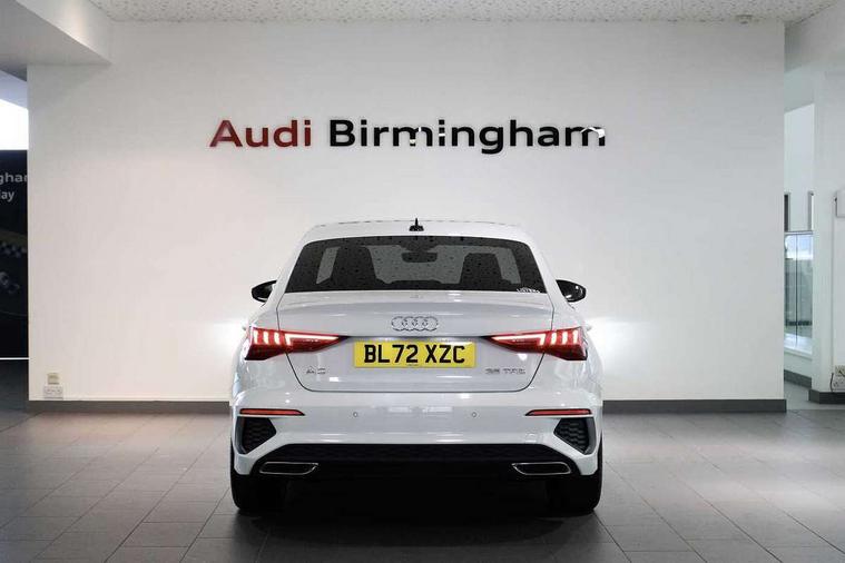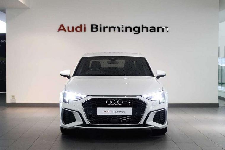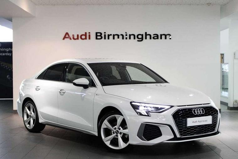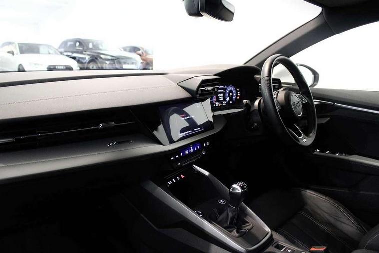 Aluminium air vent surrounds, Aluminium trim elements, Dark spectrum aluminium inlays, accent surfaces in the dashboard and centre console in platinum grey silk effect paint finish, Aluminium interior elements pack - A3 Saloon, LED interior lighting pack - A3 Saloon, S line styling pack - A3 Saloon, Anti theft alarm, Anti-theft wheel bolts, Immobiliser, Remote control central locking, 2x USB Type C ports (for charging and data transfer), 6 passive loudspeakers, CD player, DAB Digital radio, 3x3 point rear seat belts, Driver and front passenger airbag with passenger airbag deactivation, Electronic Stabilisation Control (ESC) including ABS, ASR and EDL, First aid kit with warning triangle and 2 safety vests, Front side airbags with head airbags and interaction airbag, Hill hold assist, Pre-sense front with pedestrian and cyclist detection, Seatbelt monitoring, Tyre pressure loss indicator, 3rd brake light, Acoustic glass windscreen, Aluminium window trim, Auto dimming frameless rear view mirror, Electrically adjustable/heated/folding/dimming door mirrors with kerb view includes integrated LED indications + kerb view function for passenger side, Front electric windows, Illuminated door sills with aluminium inserts at the front with S logo, LED daytime running lights, LED headlights with LED rear lights and dynamic rear indicators, Light and rain sensors, Model and engine designation badges at rear, Privacy glass - dark tinted rear window, rear door and side windows, Rear boot, Rear electric windows, Rear side wing doors, S line bumpers, S roof spoiler, 12V socket and storage compartment in front centre console, 3 seat bench in 2nd row, 40/20/40 split folding rear seat bench with cupholder, Black cloth headlining, Dual zone electronic climate control, Electronically operated child locks, Front and rear centre armrest in leather, Front and rear headrests, Front/rear floor mats, Height and reach adjustable steering wheel, Illuminated vanity mirror, Interior lighting - glove compartment light and right hand side, Luggage compartment floor covering, Manual boot compartment lid, Manually adjustable front sport seats, Seat side bolsters, Single front passenger seat, Stainless steel pedals and front footrest in black, Twin leather upholstery with front sports seats S embossed logo, Audi connect emergency call and service, Audi drive select (Auto, Comfort, Dynamic, Efficiency and Individual), Audi smartphone interface, Audi Virtual Cockpit - 10.25" digital and colour instrument cluster, Automatic start/stop system with recuperation, Bluetooth interface, Collision avoidance assistant, Cruise control + speed limiter, Electromechanical power speed sensitive steering, Lane departure warning system, MMI Navigation Plus with high resolution 10.1" colour touch screen display, Rear parking sensors, Service indicator, Voice control system with natural language interaction,
