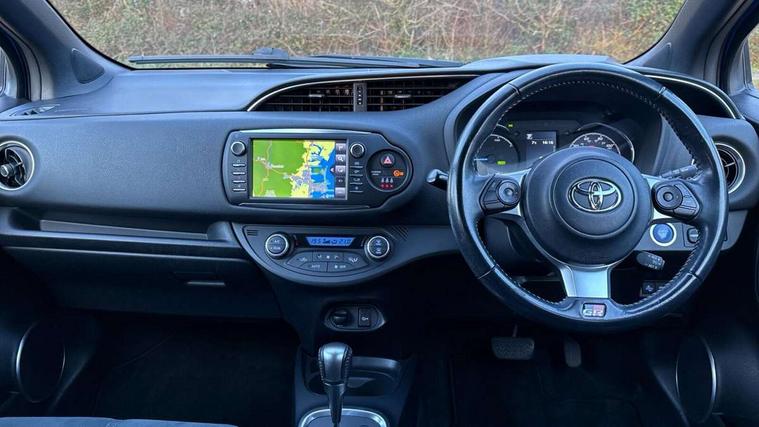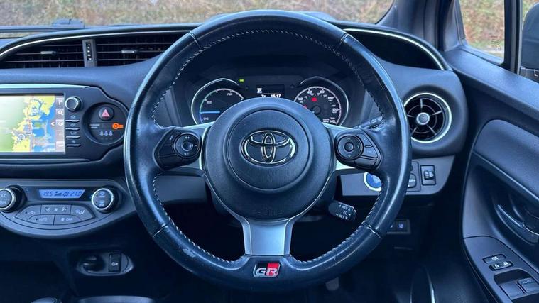Interior satin accents, Soft touch instrument panel, 17" Black alloy wheels, Space saver spare wheel, Engine immobiliser, Power and remote door locking, 6 speakers, DAB Digital radio, Steering wheel mounted audio/telephone switches, USB connection, 3 point seatbelts on all rear seats, ABS+EBD+Brake assist, Active headrests, Emergency brake light system (EBS), Front passenger airbag on/off switch, Front seatbelt reminder, Height adjustable front seatbelts with pre-tensioners and load limiters, Hill start assist control (HAC), Rear child proof door locks, Rear seat belt reminder, Supplemental restraint system (SRS) airbags - 7 airbags including driver, front passenger, curtain, side and knee airbags, Toyota safety sense including Road sign assist, Pre collision system, auto high beam and lane departure alert), Tyre pressure warning system, Vehicle stability control VSC + traction control, Auto up and down function on drivers window, Automatic wipers, Black door mirrors, Black door moulding, Black headlights finishing, Body colour bumpers, Body colour door handles, Electric adjustable heated door mirrors, Electric front windows, Electric rear windows, Follow me home headlights, Front fog lights, Gloss black honeycomb lower front grille, GR Sport logo, Headlight cut-off reminder, LED daytime running lights, LED High mounted stop lamp, LED rear lights, Manual dimming rear view mirror, Privacy glass, Projector headlights, Rain sensitive windscreen wipers, Rear spoiler, Rear window defogger, Rear wiper, Turning signal integrated indicators in door mirrors, 12v power outlet - front, 3 adjustable rear headrests, 3 Spoke GR Sport leather steering wheel, 60/40 split folding rear seat, Boot light, Driver and front passenger personal light, Driver and front passenger Whiplash Injury Lessening seats, Dual zone automatic air conditioning, Front and rear cup holders, Front seats with lumbar support, Glovebox, Height adjustable driver's seat, Illuminated entry system, Isofix seat fixing, Leather gearshift, Leather parking brake handle, Removable rear parcel shelf, Sliding front seats, Tilt/telescopic steering column, Ultra suede cloth upholstery, 4.2" coloured LED TFT multi information display, Analogue speedometer, Bluetooth connectivity, Cruise control with switch on steering wheel, Electric power steering, Hybrid system indicator, Key reminder warning, Multi information display switches on steering wheel, Push button start, Reversing camera, Road sign assist - RSA, Touch 2 multimedia system with 7" display, Suspension tuning,