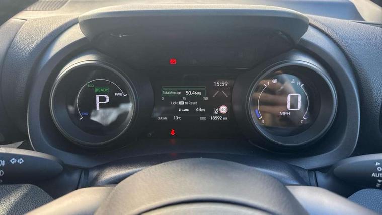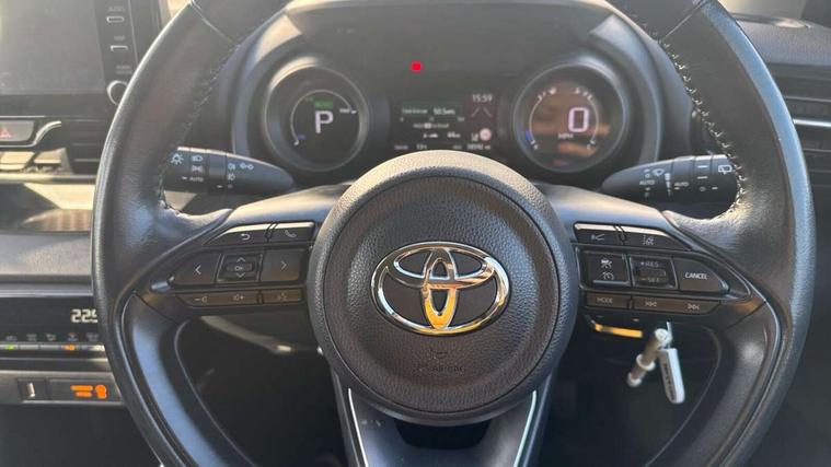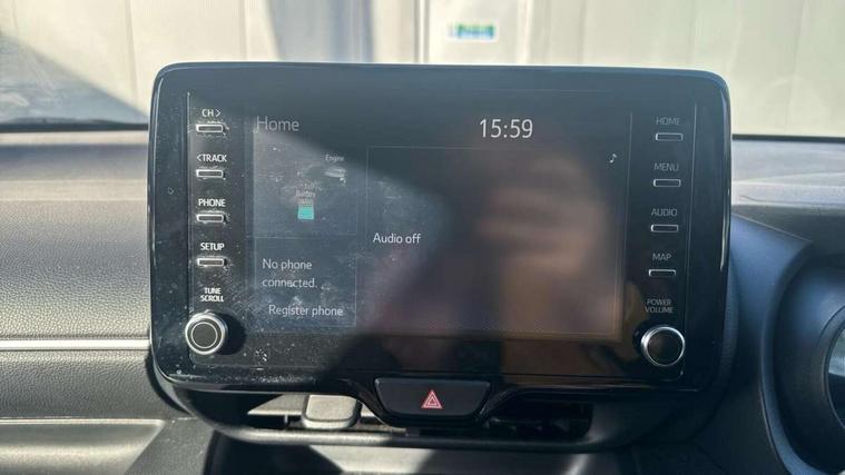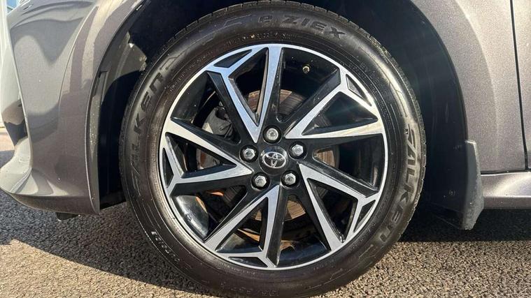 Soft touch instrument panel, Space saver spare wheel, 2x Master key, Alarm/immobiliser, Remote powered central double locking doors, 4 speakers, 8" Multimedia display touch screen, Toyota Touch 2 with DAB, USB connection, 3 point seatbelts on all rear seats, ABS+EBD+Brake assist, Active headrests, Electronic parking brake, Emergency brake light system (EBS), Front passenger airbag on/off switch, Front seatbelt reminder, Hill start assist control (HAC), Rear child proof door locks, Rear seat belt reminder, Supplemental Restraint System (SRS) 8 airbags: Driver & passenger's airbags, dual side curtain airbags, side impact airbags, front centre airbag, Toyota Safety Sense 2, Precollison + Night time Pedestrian & Cyclist Detection, Lane Trace Assist, Auto High Beam, Intelligent ACC & Road Sign Assist, Tyre pressure warning system, Acoustic windscreen glass, Auto windscreen wipers, Automatic headlights, Body coloured door mirrors, Electric adjustable heated door mirrors, Follow me home headlights, Front auto power windows with anti jam protection, Full LED rear lights, LED daytime running lights, LED front fog lights, LED front light guide, LED Headlights, LED High mounted stop lamp, LED Indicators, LED rear light guide, Manual headlight levelling, Painted chequered front grille, Rain sensor, Rear auto power windows with anti jam protection, Rear privacy glass, Rear side wing doors, Rear spoiler, Rear wiper, Shark fin antenna, Turning signal integrated indicators in door mirrors, 3 adjustable rear headrests, 3 seat bench in 2nd row, 3 spoke leather steering wheel, 60/40 split folding rear seat, Adjustbale boot height, Auto air conditioning, Coat hooks in rear grab handles, Cup holders (2 front & door), Data Communication Module (DCM) connected services, Fabric upholstery, Front armrest, Glovebox, Grey roof lining, Height adjustable driver's seat, Isofix seat fixing, Leather gearshift, Pollen filter, Shopping bag hooks, Single front passenger seat, Tilt/telescopic steering column, Adaptive cruise control, Adjustable speed limit with speed warning, Bluetooth connectivity, Colour binocular inspired displays with digital speedometer, E-call, Electric power steering, Hybrid energy display, Multi information display switches on steering wheel, Reversing camera, Smartphone integration with Apple CarPlay and Android auto, Voice recognition, Vehicle Stability Control (VSC),