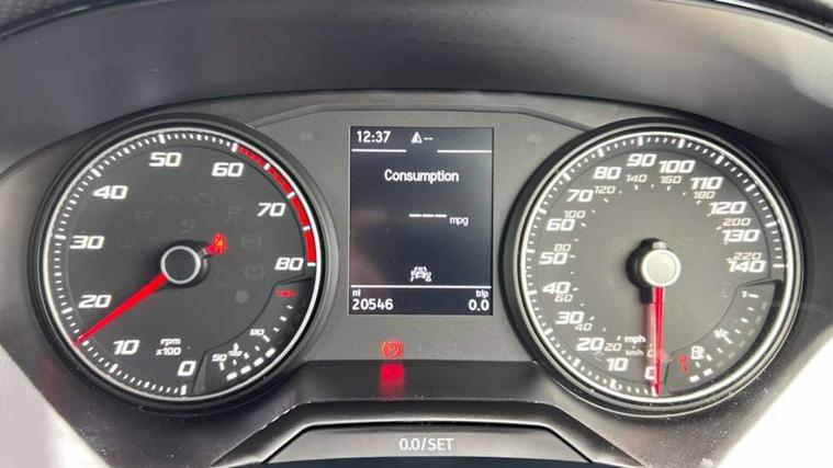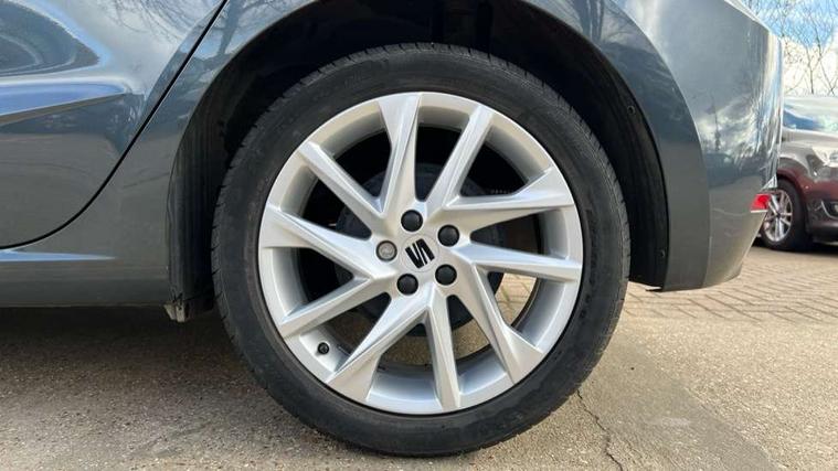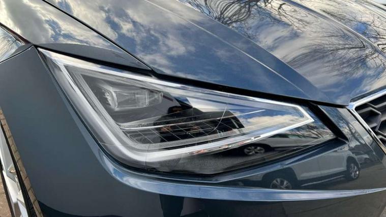 'Lights On' Reminder warning buzzer, 9.2" touchscreen navigation system with type C USB socket, Voice control and DAB/AM/FM radio, Auto start and stop system, Bluetooth audio streaming with handsfree system, Digital clock, E-call, Full link smartphone integration with mirror link, wireless apple carplay, Google android auto + USB Type C cable for apple and android devices, Lane assist, Low fuel warning light, Outside temperature gauge, Power Steering, Seat connect with safety, service, remote and online, SEAT drive profiles and ECO function, SEAT logo boot release, Speed limiter, Trip computer, Sports suspension, Auxiliary input socket, Radio/MP3 player, SD card slot, Steering wheel mounted controls, Anti theft roof antenna, Auto dimming rear view mirror, Automatic rain sensing wipers, Black door mirrors, Body colour bumpers, Body colour door handles, Brilliant black window surrounds, Dark tinted rear windows, Electric adjustable/heated/folding door mirrors, Electric front windows, Electric headlight adjustment, Electric rear windows, Front/rear fog lights, FULL LED automatic headlights with dynamic headlight range control, coming and leaving home, LED daytime running lights, LED tail lights, Rear side wing doors, Rear spoiler with FR twin exhausts, Rear wiper, Third brake light, 3 seat bench in 2nd row, 60/40 split folding rear seat, Ambient interior lighting, Chrome detailing and black headlining, Cloth upholstery, Dual zone climate control with combination filter, Front courtesy lights, Front cupholders x 2, Front reading lights, Gear shift indicator, Glovebox, Height adjustable front and rear headrests (five), Height adjustable front seats, Height/reach adjust steering wheel, Illuminated air vent surrounds, Illuminated boot, Instrument lighting with brightness control, Isofix, Leather multifunction flat bottomed sports steering wheel, Passenger sunvisor, Single front passenger seat, Sports seats, Sunvisors with mirror and driver side card holder, 3 point seatbelts on all 3 rear seats, ABS, Active front headrests, Child locks on rear doors, Electronic stability control, Energy recovery system, Front assist forward collision warning and autonomous emergency braking, Front driver and passenger side airbags with curtain airbag and front passenger airbag deactivation, Hill hold control, Multi-Collision braking, Seat belt reminder for front and rear seats, Tiredness recognition system, Tyre pressure monitoring system, Electronic engine immobiliser, Locking wheel bolts, Perimeter alarm and interior monitoring with backup horn and tow away protection, Remote central locking + deadlocks, 17" alloy wheels in Brilliant silver,