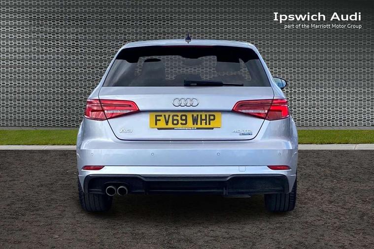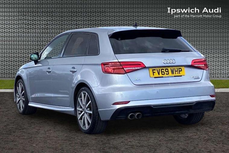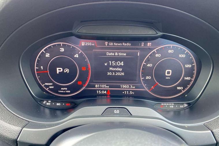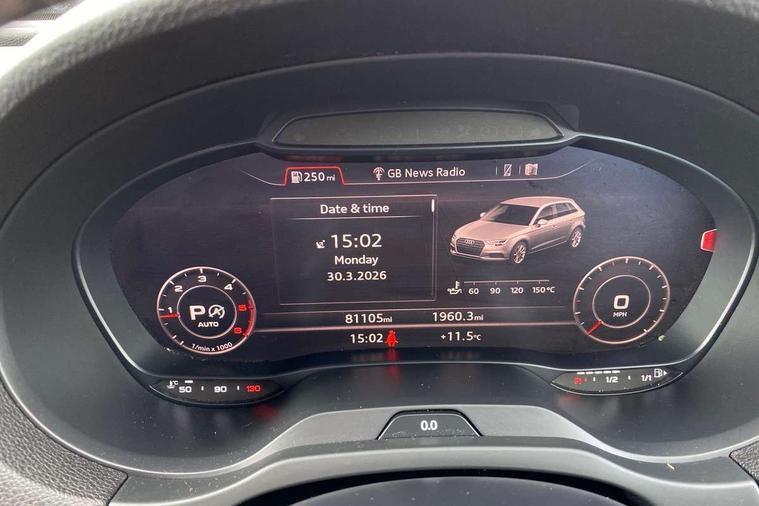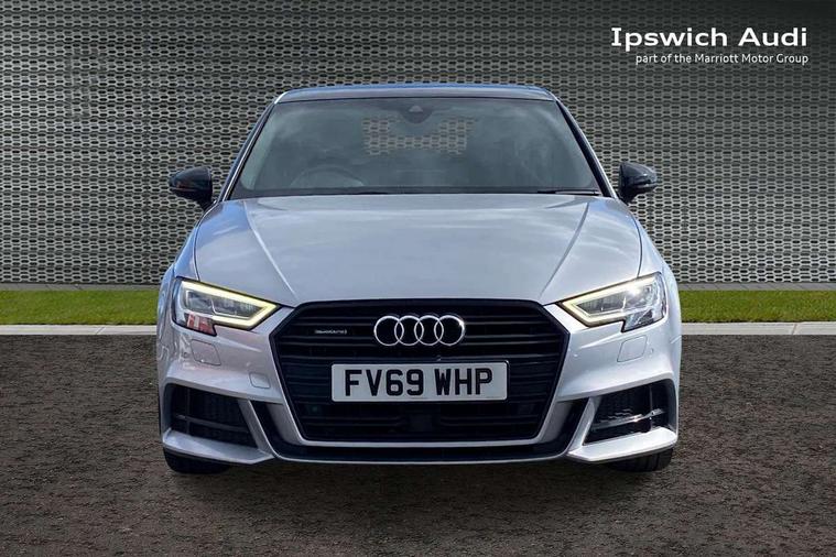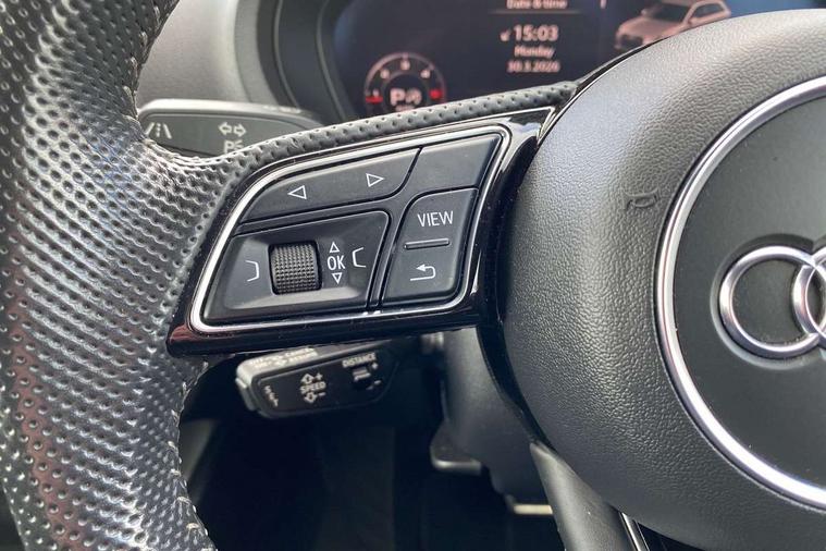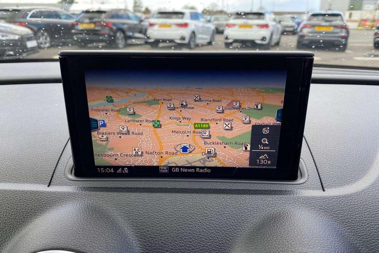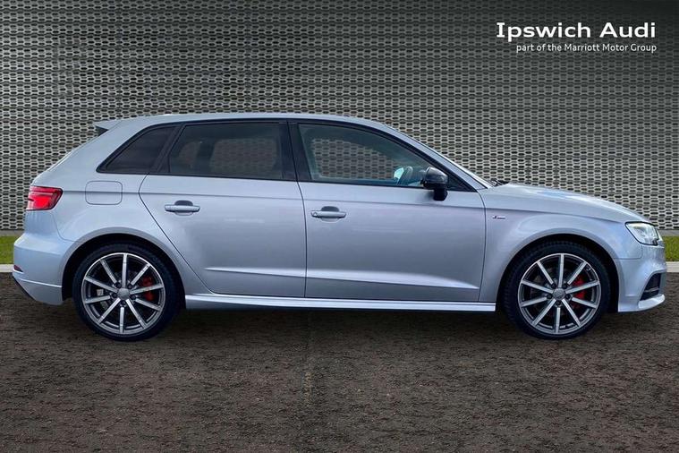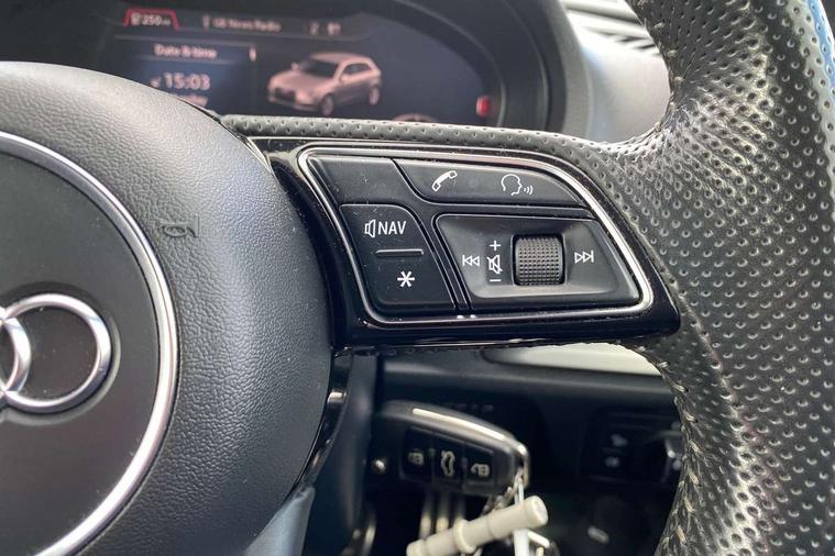 Aluminium air vent surrounds, Aluminium trim elements, Matt brushed aluminium inlays, Black styling pack - A3/S3, LED interior light pack - A3/RS3, Non smoking pack - A3, Storage and luggage pack - A3/RS3, 18" 10 spoke design alloy wheels in matt titanium look with diamond cut finish, Tyre repair kit, Anti theft alarm, Anti-theft wheel bolts, Remote control central locking, Thatcham category 1 alarm + immobiliser, 2 USB interfaces and Aux-In jack, Audi music interface, CD player, DAB Digital radio, MMI radio plus with 7" colour MMI screen and MMI controller, Online entertainment, 3 point seatbelts on all seats, ABS/EBD, Active bonnet, Active front headrests, Airbags - front driver/passenger, front & rear side, curtain, drivers knee, ASR, EDL, Electromechanical parking brake, ESC - Electronic Stability Control + traction control, Front passenger airbag deactivation, Hill hold assist, Manual rear child locks, Multi-Collision braking, Seatbelt warning, Tyre pressure warning, Warning triangle and first aid kit, Auto dimming interior rear view mirror, Body colour roof spoiler with aerodynamic inserts in high gloss black, Chrome exhaust tailpipes, Electric front windows, Electric rear windows, Electrically adjustable and heated door mirrors with integrated LED side indicators, Heated windscreen washer jets, LED daytime running lights, Light and rain sensors, Privacy glass - dark tinted rear and rear side windows from B-pillar backwards, Rear wiper, Sport specific side air inlet grille and diffuser insert, 3 adjustable rear headrests, 3 spoke leather multifunction sports steering wheel with paddle shift gear change controls, 60/40 split folding rear seat, Adjustable front centre armrest, Black cloth headlining, Dual zone electronic climate control, Front and rear interior lights with delay, Front/rear floor mats, Height and reach adjustable steering wheel, Illuminated door sill trims with S logo, Isofix child seat preparation for front passenger/outer rear seats inc passenger airbag deactivation including top tether, Lashing point in luggage compartment, Manual height adjustable front seats, Stainless steel pedals, Storage compartments in doors side trims, centre console and under front drivers seat, Tool kit, Audi drive select, Audi smartphone interface, Automatic start/stop system, Colour driver's information system display, Electro - mechanical power assisted steering, Mobile telephone preparation - bluetooth interface, SD card based MMI navigation, Service interval indicator, Speed limit display, Voice control system, Voice recognition for navigation system, Diesel particulate filter, Sports suspension,