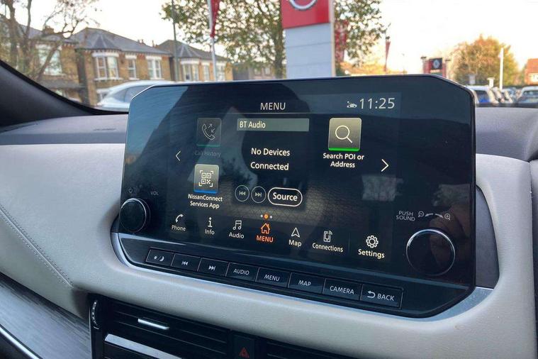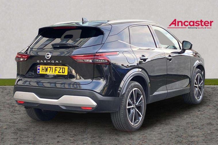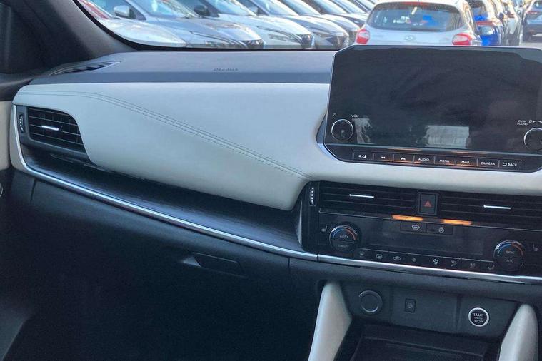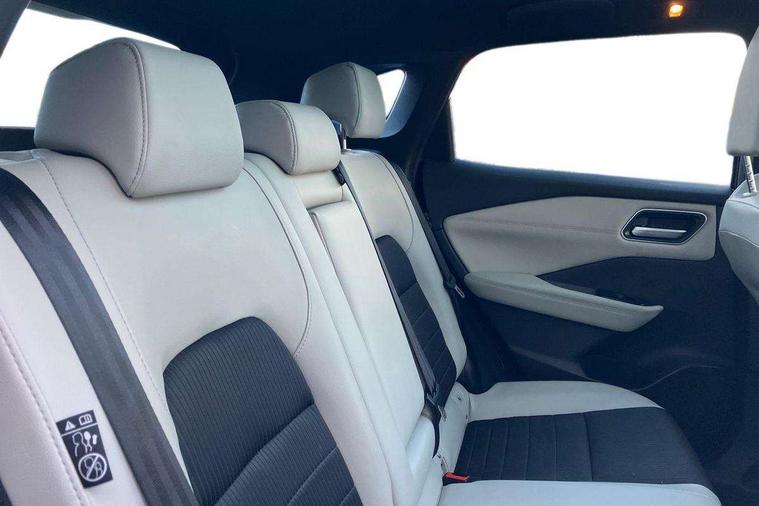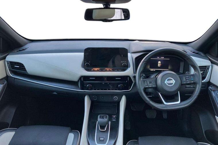 Heat pack - Qashqai, Tech Pack (ProPILOT + HUD), 19" alloy wheels, Capless fuel filler, Engine immobiliser, Nissan i-key, Remote central door locking with deadlocking, Thatcham Cat.1 alarm, 6 speakers, AM/FM audio system with DAB, Bluetooth audio streaming, Front USB connections (Type-A and Type-C), Rear USB charging only ports (Type-A and Type-C), 3x3 point rear seatbelt pretensioners + load limiters, ABS, ESP, EBD and brake assist, Active brake limited slip, Auto hold function, Child locks on rear doors, Curtain and front side, far side airbags, Driver and passenger airbags, Driver, passenger and 2nd row rear seat belt reminder, Electronic parking brake, Front seatbelt pretensioners + load limiters, Height adjustable front seatbelts, Hill start assist, Intelligent blind spot intervention, Intelligent front emergency braking with pedestrian, cyclist recognition and junction assist, Intelligent rear automatic braking, Tyre pressure monitoring system, Vehicle dynamic control, Auto dimming rear view mirror, Auto rear wiper when reversing, Body colour mirror caps, Body coloured door handles, Bodyside mouldings, Chrome side window finisher, Electric auto folding door mirrors, Electrically adjustable and heated door mirrors with LED turn indicator, Fixed panoramic glass roof with electric sunshade, Follow me home headlights, Intelligent auto headlights, LED daytime running lights, LED signature rear lights, One touch front and rear electric windows with remote opening and closing, Partially body coloured bumpers, Privacy glass, Rear roof spoiler, Rear styling plate, Roof rails, Shark fin antenna, Splash free rain sensing wipers, Super UV and infrared cut glass, Three blink turn signal, 12v power socket in dashboard and luggage, 2 way electrical driver lumbar adjustment, 2x Rear coat hooks, 3 rear headrests, 4 grab handles, 6 Luggage hooks - 4 on floor, 2 on side, 60/40 split folding rear seat, 8 way electric adjustable drivers seat, Ambient lighting around centre console, Ambient lighting in front doors, Centre console storage tray, Chrome interior door handles, Cloth/syntech leather monoform upholstery, Dark headlining, Driver and front passenger sunvisors with illuminated vanity mirrors, Driver seat back pocket, Dual zone automatic climate control with pollen filter, Front centre console and armrest, Front cupholder, Front door with bottle holders, Glovebox with light, Hard trunk cover, Height adjustable front headrests, Leather steering wheel, Luggage board system, Luggage space lighting, Manual lumbar support on passenger seat, Manually adjustable passenger (slide recline + lifter), Multifunction steering wheel, Passenger seat back pocket, Rear armrest with 2 cupholders, Rear door bottle holders, Soft PVC kneepad, Steering wheel gearshift paddles, Steering wheel switches, Tilt/telescopic adjustable steering wheel, Two rear isofix child seat anchorage points with top tether, Welcome light and doors with console tray ambient lighting, Blind spot warning, Drive modes (sport, normal, eco, snow), Electric speed sensitive power steering, Emergency and breakdown call, Front and rear parking sensors, Full Digital 12.3" TFT Digital Combimeter, Hands free power tailgate, Idle stop/start system, Intelligent Cruise control (ICC), Intelligent driver alert system, Intelligent forward collision warning, Intelligent lane intervention, Lane departure prevention, Lane departure warning system, Moving object detection, Push button starter, Rear cross traffic alert, Traffic sign recognition with legal speed adjustment, Trip computer,
