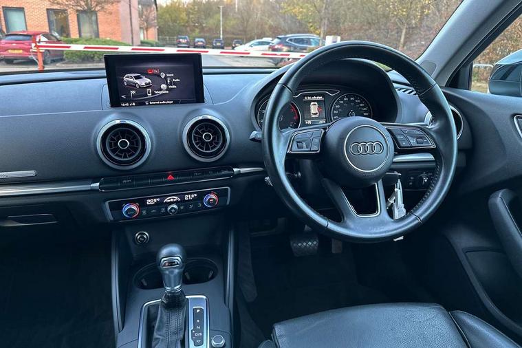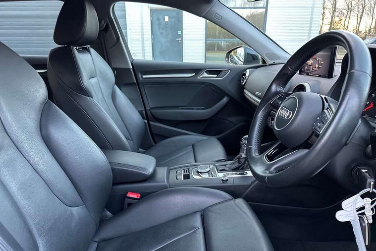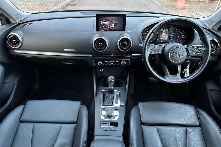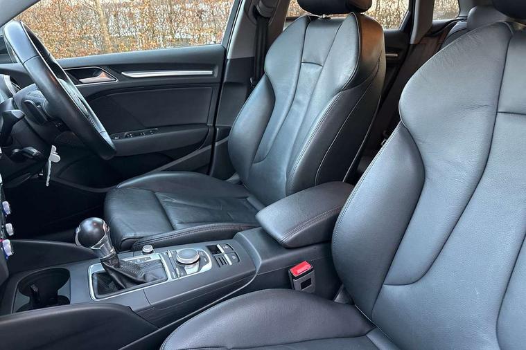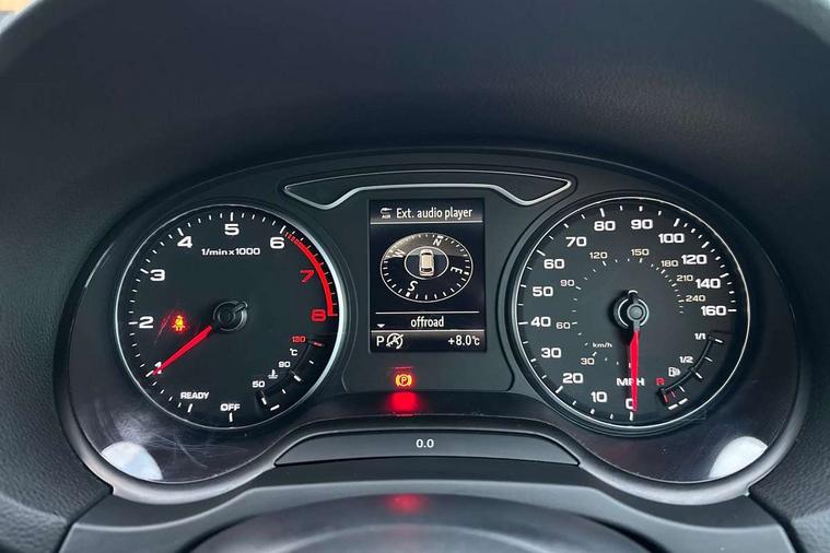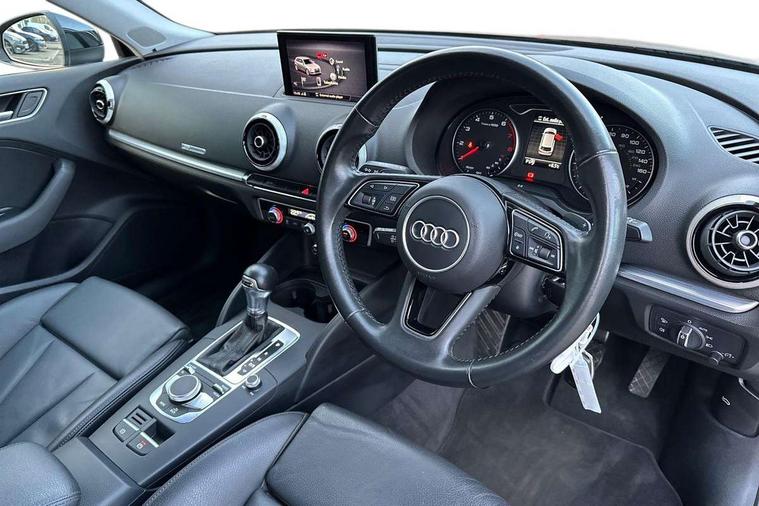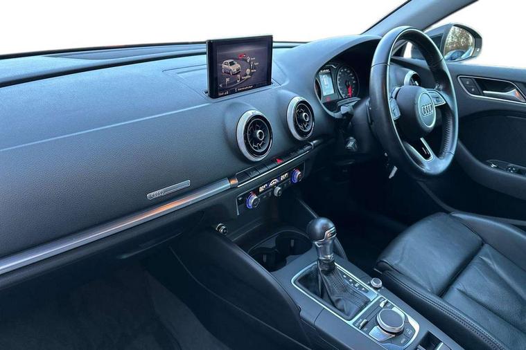 Audi drive select, Audi smartphone interface, Automatic start/stop system, Colour driver's information system display, Electro - mechanical power assisted steering, Mobile telephone preparation - bluetooth interface, SD card based MMI navigation, Service interval indicator, Speed limit display, Voice control system, Voice recognition for navigation system, Dynamic suspension, 2 USB interfaces and Aux-In jack, Audi music interface, CD player, DAB Digital radio, MMI radio plus with 7" colour MMI screen and MMI controller, Online entertainment, Aluminium window trim, Auto dimming interior rear view mirror, Body colour bumpers, Body colour door mirrors, Body colour roof spoiler with aerodynamic inserts in high gloss black, Chrome exhaust tailpipes, Electric front windows, Electric rear windows, Electrically adjustable and heated door mirrors with integrated LED side indicators, Heated windscreen washer jets, Light and rain sensors, Matt black radiator grille, Rear wiper, Sport specific side air inlet grille and diffuser insert, Xenon headlights with LED Daytime running light, 3 adjustable rear headrests, 3 spoke leather multifunction sports steering wheel with paddle shift gear change controls, 60/40 split folding rear seat, Adjustable front centre armrest, Aluminium door sill trims, Dual zone electronic climate control, Front and rear interior lights with delay, Front/rear floor mats, Height and reach adjustable steering wheel, Isofix child seat preparation for front passenger/outer rear seats inc passenger airbag deactivation including top tether, Lashing point in luggage compartment, Manual height adjustable front seats, Rock grey headlining, Storage compartments in doors side trims, centre console and under front drivers seat, Tool kit, Interior light pack - A3 Hatchback/Sportback/Cabriolet, Non smoking pack - A3, Storage and luggage pack - A3/RS3, 3 point seatbelts on all seats, ABS/EBD, Active bonnet, Active front headrests, Airbags - front driver/passenger, front & rear side, curtain, drivers knee, ASR, EDL, Electromechanical parking brake, ESC - Electronic Stability Control + traction control, Front passenger airbag deactivation, Hill hold assist, Manual rear child locks, Multi-Collision braking, Seatbelt warning, Tyre pressure warning, Warning triangle and first aid kit, Anti theft alarm, Anti-theft wheel bolts, Remote control central locking, Thatcham category 1 alarm + immobiliser, Aluminium air vent surrounds, Aluminium mistral silver inlay, Aluminium trim elements, Tyre repair kit,