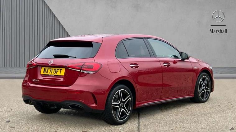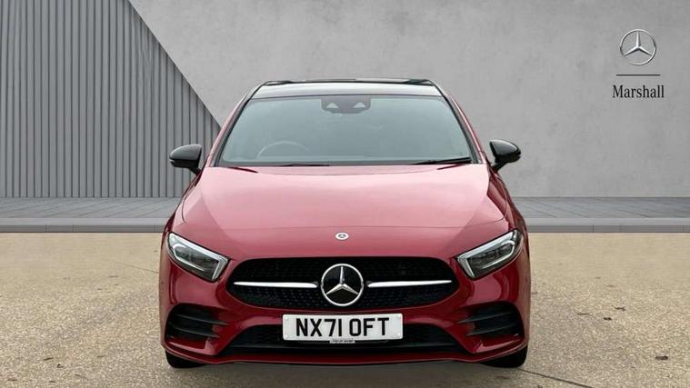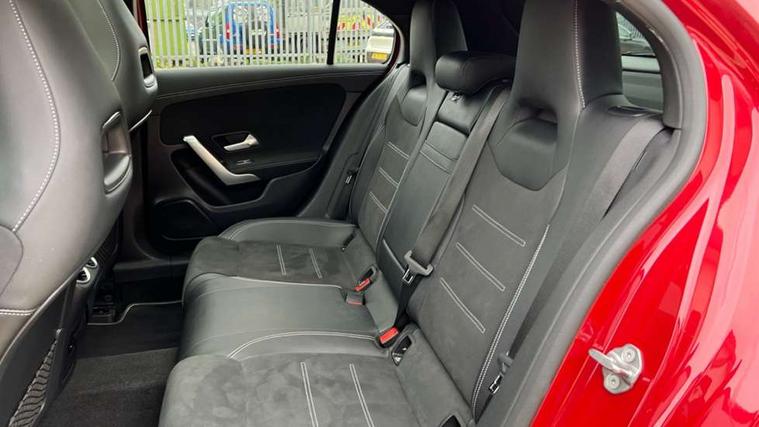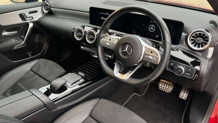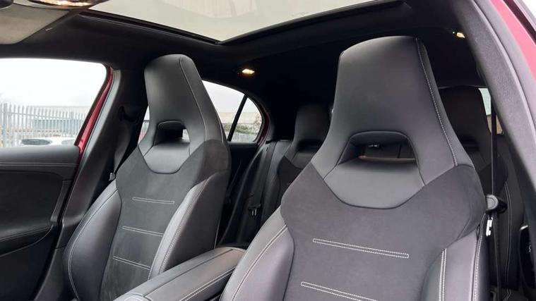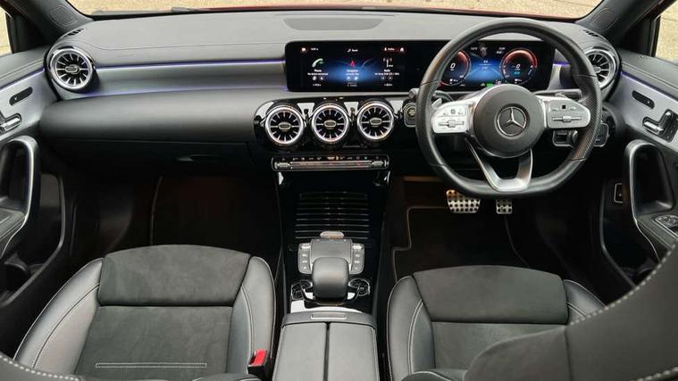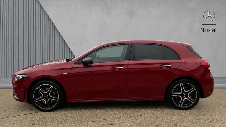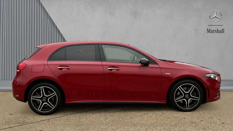 Matrix look light longitudinal grain aluminium trim element, Light and sight pack - A Class, Mirror package - A Class, Night pack - A Class Saloon/Hatchback, Seat comfort pack - A Class, 18" AMG 5 twin spoke light alloy wheels aerodynamically optimised painted in black with highsheen finish, Summer tyres, Tirefit sealant kit, Alarm system/interior protection/immobiliser, Keyless entry lock/unlock, Keyless Go, Remote central locking and crash sensor with emergency opening function, Urban guard vehicle protection system with immobiliser and interior protection, 10 speakers, 2 USB ports (type C) in rear stowage compartment and one in front of center console, DAB Digital radio, MBUX multimedia system with DAB digital radio and touchpad including satellite navigation, Mercedes-Benz sound system - 100W, 3 rear 3 point seatbelts, ABS with Brake Assist, Active bonnet, Adaptive brake assist with hold function and hill start assist, Black seatbelts, Childproof locks manually operated for rear doors and electrically operated for rear power windows, Crash responsive emergency lighting, Driver and passenger head and side airbags, Drivers knee airbag, Dual stage driver/passenger airbags, Electronic parking brake, ESP curve dynamic assist, ESP with ASR, Front and rear seatbelt reminder, Front brake callipers with Mercedes Benz lettering, Perforated front brake discs, Radar based regeneration, Tyre pressure monitoring system, Warning triangle and first aid kit, Window airbags, 4 Electric Front and Rear windows, Adaptive brake lights, AMG bodystyling - Front apron with splitter in chrome, rear apron with chrome trim and chrome visible trim elements in tailpipe, Black weather strip, Body colour bumpers, Body colour door handles, Body colour side skirt, Body coloured door mirrors, Edition badging on the front wings, Electric adjustable and heated door mirrors with integrated LED side indicators, Exclusive diamond radiator grille, Exhaust system - Twin visible tailpipes in polished stainless steel, Headlamp assist automatic headlamp activation, Heated glass rear windscreen + timer control, High gloss black beltline, LED High level third brake light, LED tail lamp, Multibeam LED with adaptive highbeam assist plus, Panoramic sliding sunroof, Privacy glass, Radio aerial, Rain sensing windscreen wipers with two sensitivity settings, Rear fog lights, Rear wiper, Window line trim strip in high gloss black, 3 pin charging cable plug, 3 Spoke flat bottom leather multi function steering wheel with perforated leather in grip area, 40:20:40 split folding rear seats, Artico man-made leather/Microfibre Dinamica upholstery with contrast stitching in light grey, Auto Mercedes-Benz child seat recognition sensor, Black air vents with surround in silver chrome, Black roof lining, Brushed stainless steel sports pedals with rubber studs, Charging socket, Controller on centre console with chrome surround, Electrically adjustable front memory seats including lumbar support, Floor mats with black top stitching and embroidered edition logo and piping in light grey, Front centre armrest with storage compartment, Front seat backs luggage nets, Front seat cushion length adjustment, Galvanished gear shift paddles on steering wheel, Heated front seats, Height/reach adjustable steering column, Illuminated front door sills with changeable cover, Interior lighting - 64 colour Ambient lighting, Interior mirror with reading lamps in black and frameless, ISOFIX and top tether child seat fixing points in two outer rear seats, Pre-entry climate control, Rear armrest with 2 cupholders, Rear head restraints, Seat occupancy sensor for front passenger seat, Sports seats with integrated headrests, Stowage compartment in centre console with retractable cover, Sunvisors with illuminated vanity mirrors, Touchpad on center console, Twin front cupholders, Two zone thermotronic luxury automatic climate control, Ultrasonic sensors positioned in the front and rear bumpers, 10.25" Digital instrument cluster display screen, 10.25" media display, 180 degree rear view camera with parking guidelines, Acoustic ambient protection, Active parking assist with visual and audible warning of detected obstacles, Attention assist, Brake pad wear indicator warning light, Car wash mode, Direct steering, Dual bluetooth interfaces, DYNAMIC SELECT with a choice of driving modes (ECO, Comfort, Sport and Individual), ECO start/stop function, Fluid level warning indicator for fuel, oil, coolant and washer fluid, Hard-disk navigation, Hey Mercedes Voice activation, Lamp failure indicator, Lane keeping system, Mercedes me connect including emergency call system, accident recovery, breakdown management and maintenance, Mercedes me remote services, Outside temperature gauge, Owners manual in English, Pre-installation for car sharing, Preinstallation for Mercedes Benz link, Remote and charging services plus, Service indicator (ASSYST), Smartphone integration with Apple CarPlay and Android auto, Traffic sign assist, Trip computer, 7.4 kW monophase on board charger, Comfort suspension, Mode 3 charging cable 11 kW, Rear axle multi-link,