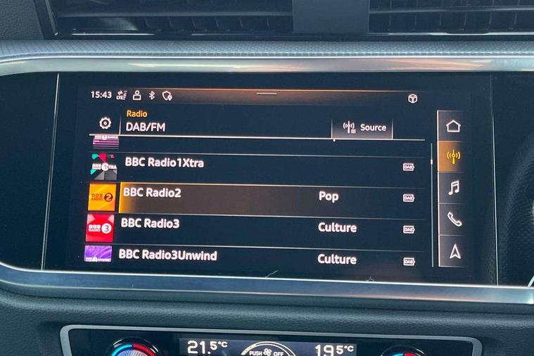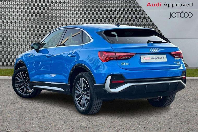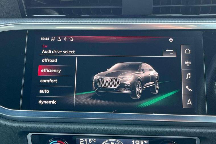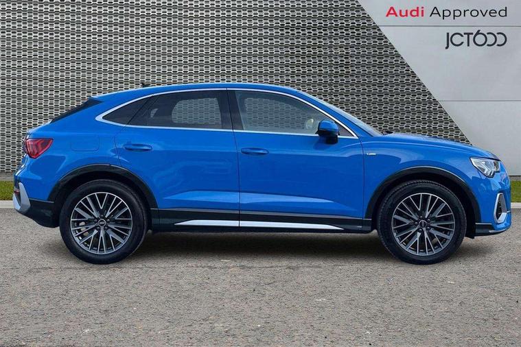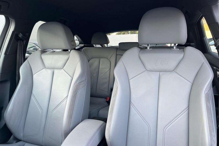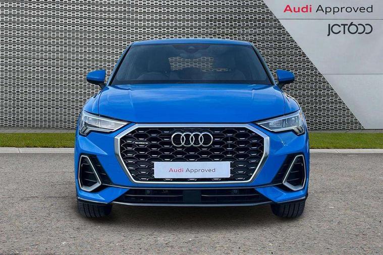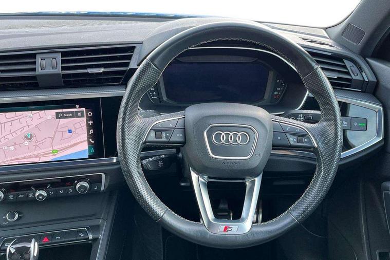 Black dashboard, Dark matt brushed aluminium inlay, Leatherette door armrest, MMI touch colour display in glass look, black with surround in aluminium look, Non smoking pack - Q3, Anti theft alarm, Anti theft wheel bolts, Audi pre-sense front with pedestrain and cyclist recognition, Remote central locking, 2 USB-C ports with charge and data functions, 6 passive loudspeakers, DAB digital radio module, 3x3 point rear seatbelts, 6 airbags - Driver, front passenger, curtain and side windows, Electrically operated child locks on rear doors, Electromechanical parking brake, Electronic stabilisation control including ABS, ASR and EDL, Hill descent control, Hill hold assist, Pre sense basic, Seatbelt monitoring, Tyre pressure warning, Warning triangle and first aid kit, Acoustic windscreen, Aluminium window trim, Auto dimming frameless rear view mirror, Diffuser grille in grained matt black, Diffuser trim in selenite silver, Electrically folding, adjustable and heated door mirrors with integrated LED side indicators and kerb view function for passenger side, Front and rear electric windows, Front fog lights, Front side air inlets in selenite silver, Front underbody protection in manhattan grey paint finish, Grille surround in aluminium silver matt, High gloss black finish B and C pillars, LED headlights with LED daytime running lights and dynamic rear indicator, LED rear lights, Privacy glass dark tinted rear and rear-side windows (from B-pillar backwards), Radiator grille in titanium black with inlay in matt aluminium silver, Rain and light sensors, Rear underbody protection in matt black, S line badges on front wings, Side skirt insert in matt Platinium grey, 12V socket in rear centre console, 40:20:40 folding with manual adjustment for 60:40 forwards/backwards position and backrest angle, Adjustable rear seat bench/backrest with centre armrest and cupholder, Black cloth headlining, Dual zone electronic climate control, Front and rear black floor mats with contrast stitching, Front and rear headrests, Front and rear roof module including reading lights, Front centre armrest, Glove compartment lighting, Height and reach adjustable steering wheel, Illuminated door sill trims with S logo, ISOFIX child seat mounting for front passenger with airbag deactivation and outer rear seat including top tether attachment point for outer rear seats, Luggage compartment light, Manual front seats with height adjustment, Perforated leather gearknob, Stainless steel luggage compartment sill finisher, Stainless steel pedals, Audi connect safety and service (e-call), Audi drive select, Audi lane departure warning, Audi smartphone interface includes wireless Apple carplay/Android Auto, Audi Virtual Cockpit - 10.25" display, Bluetooth interface, Camera based traffic sign recognition, MMI Navigation Plus with high resolution 10.1 inch touchscreen colour display, Power operated tailgate, Progressive steering, Service interval indicator, Start stop system with recuperation, Voice control system with natural language interaction, Sports suspension,