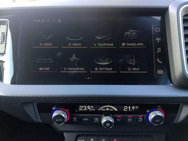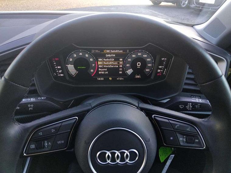 Aluminium trim for control switches, air vents and digital instrument cluster, Silver grey accent areas including air vents, door handle recesses and centre console in diamond paint finish, Slate grey inlays polygon structure in fine paint finish, Luggage compartment pack - A1, Anti theft alarm, Anti theft wheel bolts and loose wheel warning, Audi pre-sense front with pedestrain and cyclist recognition, Immobiliser, Remote central locking with 2 foldaway keys, 1 x SDXC card reader, 2 x USB type C connection points, DAB Digital radio, MMI radio plus with 8.8" colour MMI display screen and MMI touch, 3x3 point rear seatbelts, Brake assist function, Driver and front passenger airbag with front side and head airbags, Electronic Stability Control including ABS, EBD, ASR and EDL, Front passenger airbag deactivation switch, Hill hold assist, Manual rear child locks, Seatbelt height adjustment for front seats, Seatbelt monitoring, Tyre pressure warning light, Warning triangle and first aid kit, Auto dimming rear view mirror, Body coloured bumpers, Body coloured door mirrors, Electric front and rear windows, Electrically adjustable, heated, folding door mirrors with integrated LED side indicator, Front side air inlets in grained matt black and C frame in titanium black, Heat insulating glass windscreen and side windows, Heated rear windscreen, High level LED brake light, LED headlights with LED rear lights + dynamic rear indicators + headlight adjustment and high beam, turning light + LED daytime running lights, Radiator grille and rear diffuser in matt titanium black, Radiator protective grille frame in matt aluminium silver, Rain and light sensors, Rear fog lights, Rear side wing doors, Rear wing door, Rear wiper, Side front spoiler lips in grained matt black, 12V socket in centre console with two cup holders, 3 rear seats with headrests, 3 seat bench in 2nd row, 40:60 Split folding rear seat or folded fully, Door sill trims with aluminium inlay, Driver and passenger seat with manual height adjust with forward and backwards adjustment, Front head restraints, Front passenger seat, Front/rear floor mats, Height and reach adjustable steering wheel, ISOFIX child seat mounting for front passenger and outer rear seats including top tether attachment point of outer rear seats, Leather gear knob with aluminium trim, Leatherette handbrake grip, Luggage compartment light with front and rear reading lights, Manually adjustable lumbar support in front seats, Novum cloth upholstery with front sport seats, Titanium grey cloth headlining, 10.25" Digital instrument cluster display classis style instrument dials + speed, odometer, time, outside temperature, telephone menu + fuel level warning, Audi drive select - power steering assistance + engine, Audi smartphone interface with connect compatible smartphone via USB directly MMI display + Nav, music, third party apps controlled via MMI controller, Automatic start/stop system, Bluetooth interface, Cruise control, Driver's information system, Electromechanical power steering, Emergency e-call, Emergency services call system, Lane departure warning system, Service interval indicator, Speed limiter, Voice control system, Washer fluid level indicator, Dynamic suspension,