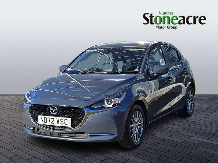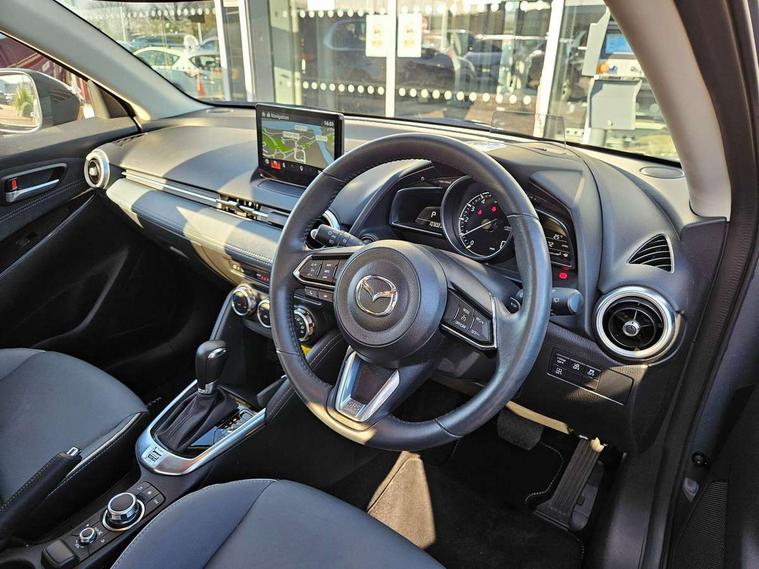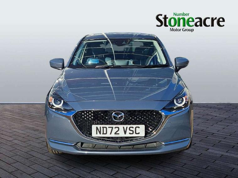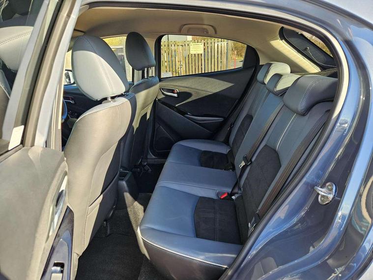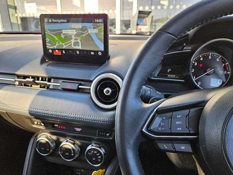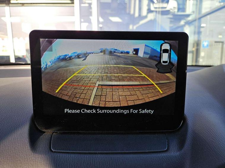 Blue/grey soft touch dashboard, 16" Bright finish alloy wheels, Emergency tyre repair kit, Deadlocking system, Immobiliser, Power door locks, Remote central locking, Smart keyless entry, Thatcham accredited alarm and immobiliser, AM/FM/DAB radio with 6 speakers with USB and AUX inputs, Multimedia Commander including separate volume dial, Steering wheel mounted audio/bluetooth controls, 2x3 point front seatbelts with pre-tensioners, 3 point seatbelts on all rear seats, Anti-lock braking system (ABS), Autonomous emergency braking, Collision mitigation braking system, Dynamic stability control + Traction control, ESP, Front and rear curtain airbags, Front driver, passenger and rear seat seatbelt warning, Front dual stage driver and single stage front passenger airbags, Front side airbags, Front smart city brake support, G-Vectoring control plus, Hill launch assist, Manual child lock in rear doors, Passenger airbag cut-off switch, Tyre pressure monitoring system, Auto dimming rear view mirror, Auto headlight levelling, Body colour door mirrors, Body coloured front bumper with bright lower bezel, Body coloured rear bumper with bright lower mouldings, Chrome exhaust tailpipes, Chrome finish signature wing on front grille, Chrome front lower bezel, Chrome rear lower bezel, Coming/leaving home lighting function, Dusk sensing headlights, Electric adjustable/heated/folding door mirrors, Electric front/rear windows with one touch auto up/down for driver's window, Gloss black front grille, LED Headlights, LED indicator lights, LED third brake light, Privacy glass, Rain sensing front wipers with adjustable sensitivity and speed, Rear side wing doors, Rear wiper, Shark fin antenna, Signature LED daytime running lights, 3 seat bench in 2nd row, 60/40 split rear seats, Climate control air conditioning, Driver, Front passenger and two rear grab handles with coathooks, Drivers seat manual slide recline and height adjustment, Drivers/front passengers covered vanity mirrors and drivers ticket holder, Folding rear seats, Front centre storage with two cupholders, Front head restraints, Front passenger and driver door pockets, Front passenger seat manual slide, recline and height adjust, Front passenger seatback pockets, Gear shift indicator, Glovebox, Heated front seats with 3 stage setting, Heated leather steering wheel, Interior courtesy light with integrated spotlight, ISOFIX child seat anchorage points attached on outer rear seats, Leather gear knob, Leather handbrake, Leather upholstery with black granlux inserts, Luggage compartment light, Satin silver dials, Single front passenger seat, Three height adjustable rear head restraints, Tilt/telescopic adjustable steering wheel, Adjustable speed limiter, Analogue rev counter, Cruise control, Digital instrument cluster, Digital speed display meter, Drive mode selection and paddle shift, E-call, Emergency stop signalling system, Engine start/stop button, Head up display - Colour active driving display, Integrated bluetooth, Lane departure warning system, Lane keep assist, Mazda connect with 8" colour touch screen, Navigation system, PAS, Rear parking sensor, Reversing camera, Service indicator, Trip computer, Wireless Apple CarPlay and wired Android Auto, i-stop,