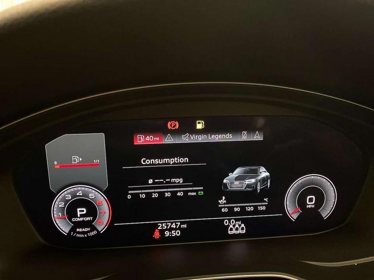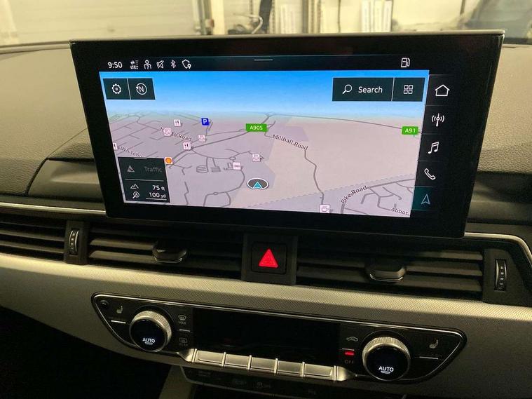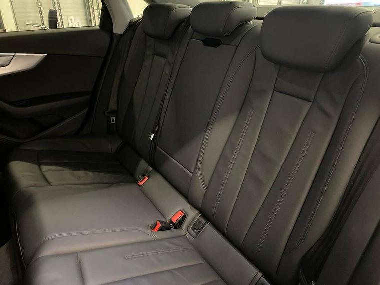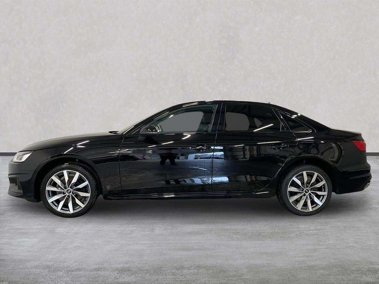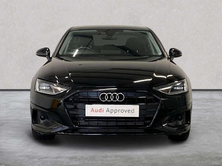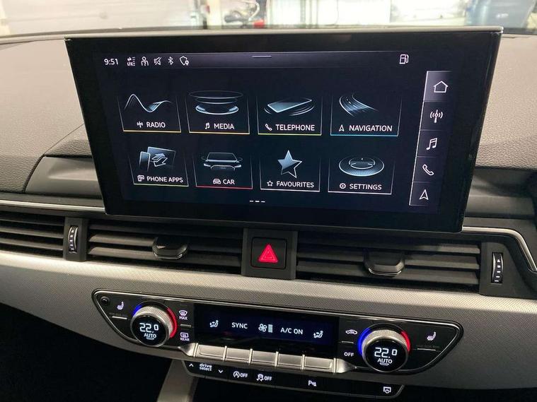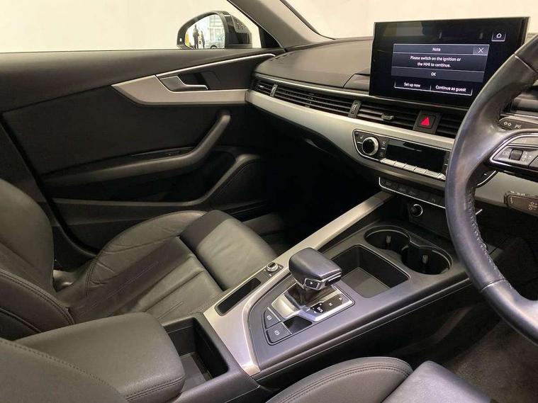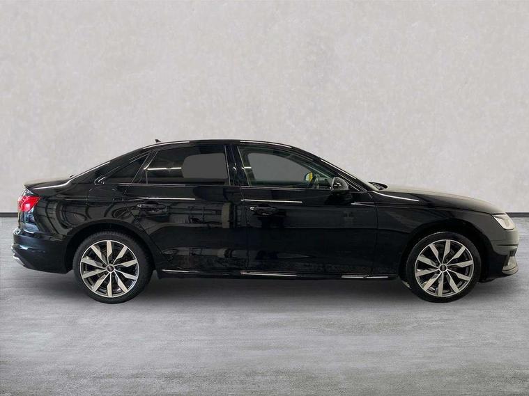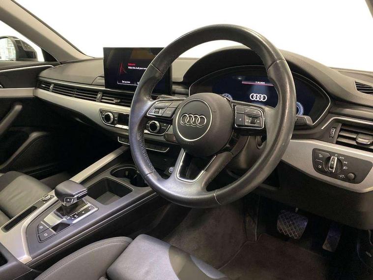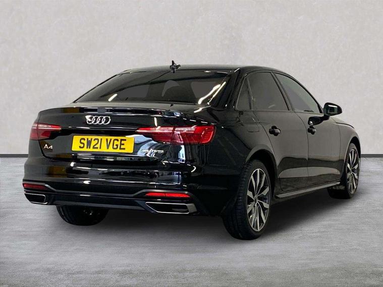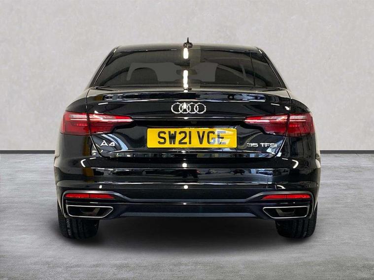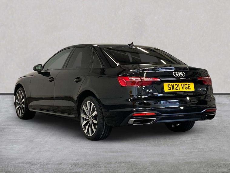 Aluminium ellipse silver inlays, High gloss package - A4, LED Interior light pack - A4/S4, Titanium black styling pack - A4 Saloon, 18" 10 spoke dynamic design alloy wheels, Tyre repair kit, Anti theft alarm, Anti theft wheel bolts, Keyless Go, 2 USB charging ports, 8 passive loudspeakers, DAB digital radio reception, 3 rear seatbelts, 6 airbags - Driver, front passenger, curtain and side windows, Electronic Stabilisation Control (ESC) including ABS, ASR and EDL, Hill hold assist, Multi collision brake assist, Pop-up bonnet for pedestrian protection, Pre sense city, Seatbelt monitoring, Warning triangle and first aid kit, Auto dimming rear view mirror, Body colour door handles, Body colour side sill trim, Body coloured door mirrors, Electrically folding auto dimming/adjustable/heated door mirrors with LED side indicators and kerb view function for passenger side, LED headlights and rear lights with LED daytime running lights, Matt aluminium silver tailpipe trim, Privacy glass, Rain and light sensors, Rear diffuser in matt titanium black with trim strip in matt aluminium silver, Sport front and rear bumpers with side skirts, Windscreen with acoustic glazing, 3 spoke high multi-function leather sport steering wheel with paddle shift and height and reach adjustable, 4 way electric lumbar support for driver and front passenger, 40/20/40 split folding 3 rear seat bench in 3 parts with rear centre armrest, Deluxe 3 zone electronic climate control, Door sill trims with aluminium inlay, Front and rear head restraints, Front centre armrest, Heated front seats, ISOFIX child seat mounting and top tether, Manual seat adjustment, Tool kit, Twin leather upholstery + front sports seats, Audi connect safety and service (e-call), Audi connect with Amazon Alexa Integration, Audi drive select, Audi parking system plus with front and rear sensors, Audi smartphone interface, Audi virtual cockpit, Automatic start-stop system with coasting functionality and efficiency programme, Bluetooth interface, Cruise control system with speed limiter, Electric boot lid release, Electromechanical power steering, Email, calendar and text messages displayed via MMI, MMI Navigation plus with MMI touch includes 10.1" high resolution colour MMI display, 3D map, Rear view camera, Voice control system, 54 litre fuel tank, Comfort dynamic suspension,