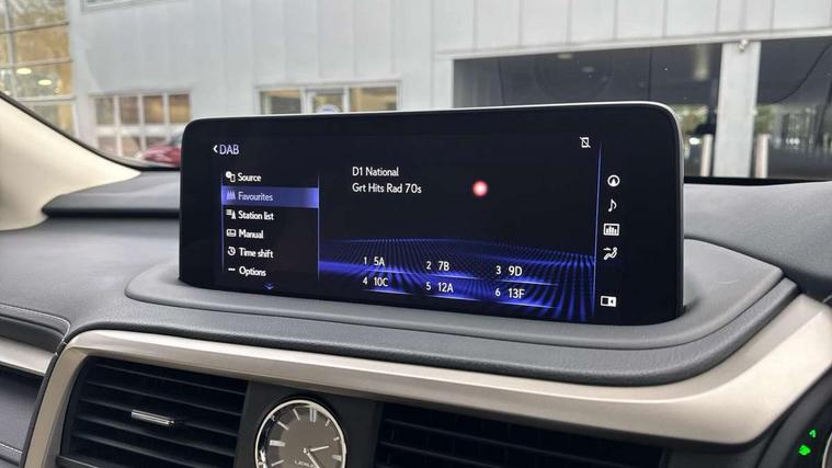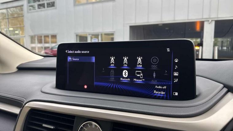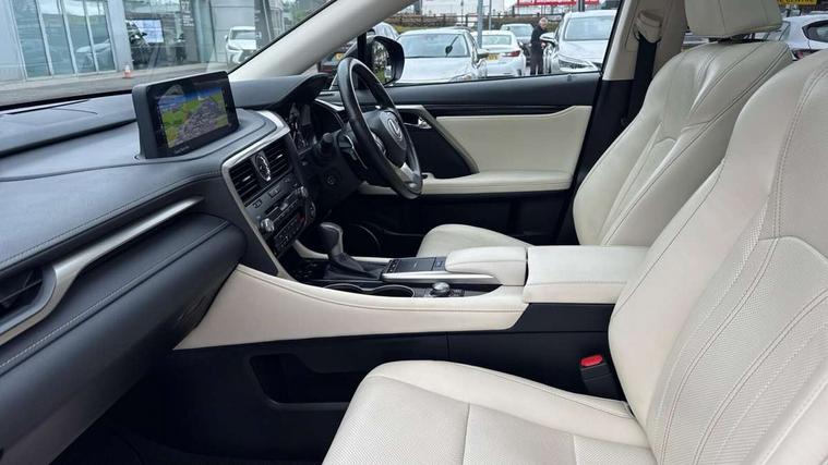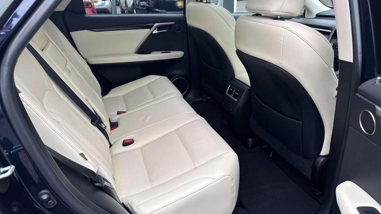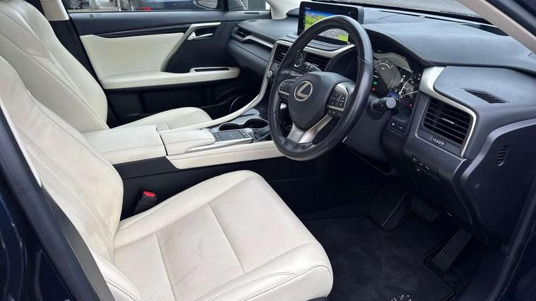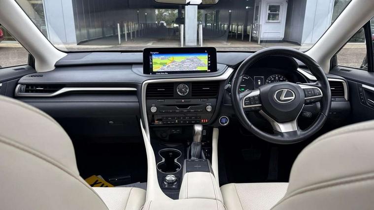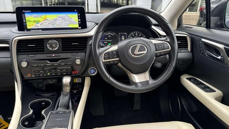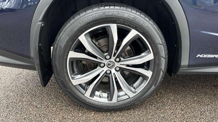 Black grain inlay, 20" Alloy wheels, Temporary spare wheel, Anti theft system with alarm, intrusion sensor, tilt sensor, glass breakage sensor and engine immobiliser, Locking wheel nuts, Security window etching, Smart keyless entry, Two motion door lock with double lock, 12 speakers Pioneer audio, AUX socket with VTR compatibility, DAB Digital radio, DVD, Front and rear USB ports, 3 point ELR front and rear seatbelts with pretensioners, ABS, Curtain airbags, Driver and front passenger 2 stage airbag, Driver/front passenger side airbags, Drivers knee airbag, EBD + Brake Assist, Electronic parking brake, Electronically controlled braking, Front passenger seat cushion airbag, Hill assist control, Lexus safety system - dynamic radar cruise control, pre collision system day and night, lane tracing assist, road sign, automatic high beam, OTA, Passenger airbag cut-off device, Rear passenger side airbags, Traction control, Tyre pressure warning, WIL whiplash protection front seats, 3 eye LED headlights with auto high beam, Auto dimming rear view mirror, Front and rear electric windows, Headlight washers, Heated, auto-folding door mirrors, auto dimming with rerverse tilt and memory, LED brake lights and rear lights with emergency brake signal, LED cornering headlights, LED daytime running lights, LED front and rear sequential indicators, LED front fog lights, Power back door system, Power back door with kick sensor, Privacy glass, rear doors and tailgate, Puddle lights, Rain sensor windscreen wipers, Rear side wing doors, Rear wash/wipe, Roof rails, 2 map pockets in the rear, 2 way electric lumbar support, 2 way manually adjustable front headrests, 2 way manually adjustable rear headrests, 2 x fixed shopping bag hooks in boot, 2 x Sunvisors with vanity mirror and lamp, 3 seat bench in 2nd row, 3 x 12V power sockets, 4 x tie down hooks in the boot, 40:20:40 split folding rear seats, 60/40 split folding rear seat with 40/20/40 folding ability, 8 way electric adjust front seats, Card holder installed in driver and passengers sun visors, Centre and rear armrest with 2 cupholders, Centre armrest with storage box, Climate concierge, Driver seat memory function, Driver's seat easy access auto retraction function, Dual zone climate control air conditioning system with S flow and Nanoe technology, Electrically adjustable leather steering wheel with paddle shifts and auto retraction function, Electrically adjustable steering column, Glasses holder in roof lighting panel, Heated front seats, Heated steering wheel, Isofix standard child seat restraint mounting, Leather gear lever, LED interior illumination, Rear armrest with storage, Self charging hybrid, Single front passenger seat, Sliding/reclining rear seats, Small compartment to right of steering wheel, Smooth leather upholstery, Textile carpet mats, Ventilated front seats, 12.3" Touchscreen display and remote touch interface, 4 driving modes EV/Eco/Normal/Sport, Analogue clock with GPS function, Apple car play/Android Auto, Bluetooth mobile phone connectivity, Electric power steering, Front and rear parking sensors with intelligent clearance sonar, Lane change flasher function, Lexus link connected services with available optional wifi, Lexus Premium Navigation with full European map capability, street view and connected services, Multi-information display 4-inch TFT, Push button starter, Reversing camera with back guide lines, Wireless Smartphone charger, E-Four Automatic transmission, Vehicle Dynamics Integrated Management (VDIM), Vehicle Stability Control (VSC),