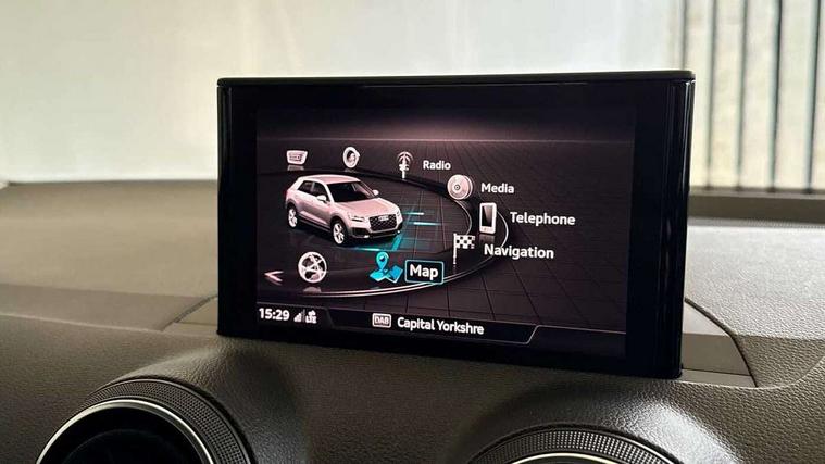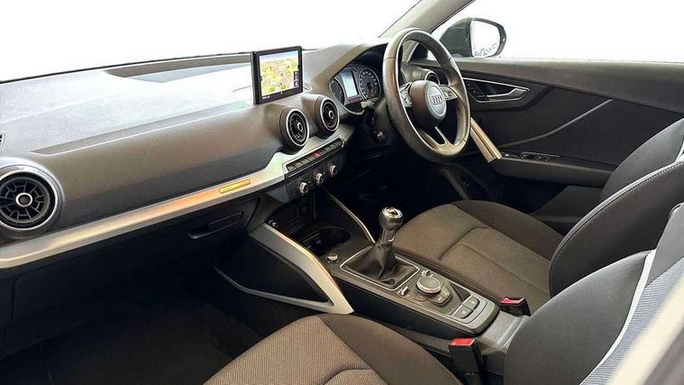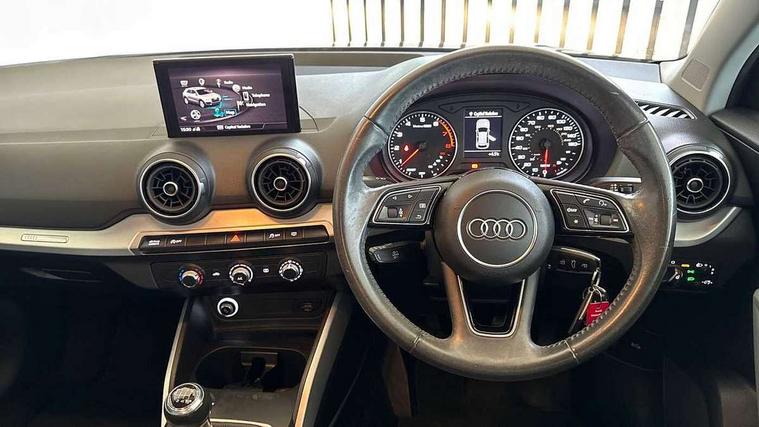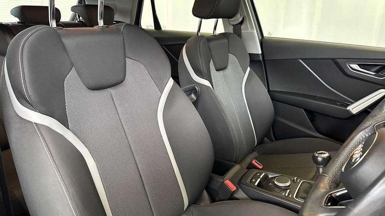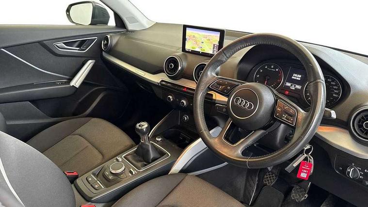 Audi drive select, Audi smartphone interface, Automatic start/stop system with recuperation, Bluetooth interface includes bluetooth audio streaming, Cruise control, MMI - Multi Media Interface control system, MMI SD card integrated nav with 3D map display, dynamic route guidance with TMC, MMI search, natural voice recognition and myAudi special destinations, Power operated tailgate, Progressive steering, Service interval indicator, Dynamic suspension, 2 x SDXC card reader, Audi music interface - apple iPod, apple iPhone, USB storage media, compatible MP3 players, 2 x USB charging points and 1 x Aux-in, CD Drive, DAB digital radio and AM/FM radio, MMI radio plus with 7" colour MMI screen and MMI controller, Air inlet in manhattan grey metallic, Black window trims, Body colour door mirrors, Chrome exhaust tailpipe, Electrically adjustable and heated door mirrors with integrated LED side indicators, Front and rear electric windows, Front underbody guard and rear diffuser trim in selenite silver, Front windscreen with grey tinted sunband, Halogen headlights including headlight range adjustment, High gloss black radiator grille, Interior mirror, LED indicator lights, Manual folding door mirrors, Rain and light sensors, Rear wiper, Side skirts in manhattan grey, Wheel arch trims in manhattan grey, 60/40 split folding rear seat bench, Door sill trims with aluminium inlay, Electronically operated child locks, Front centre armrest, Front headrests, Front sports seats, Front/rear floor mats, Height/reach adjust steering wheel, ISOFIX child seat mounting for front passenger with airbag deactivation and outer rear seat including top tether attachment point for outer rear seats, Manual seat adjustment including seat height adjustment for front seats, Storage compartments - Glovebox, cupholder compartment in centre console, storage compartment in rear centre console, front and rear door pockets, Three rear headrests, Titanium grey cloth headlining, Non smoking pack - Q2, 3x3 point rear seatbelts, 6 airbags - Front, curtain and front side airbags, Electromechanical parking brake, Electronic stabilisation control including ABS, ASR and EDL, Extended and proactive pedestrian protection, Hill hold assist, Multi collision brake assist, Pre-sense front with pedestrian recognition, Seatbelt monitoring, Tyre pressure warning light, Warning triangle and first aid kit, Anti theft alarm, Anti theft wheel bolts, Central locking system with remote control key, Aluminium interior element,