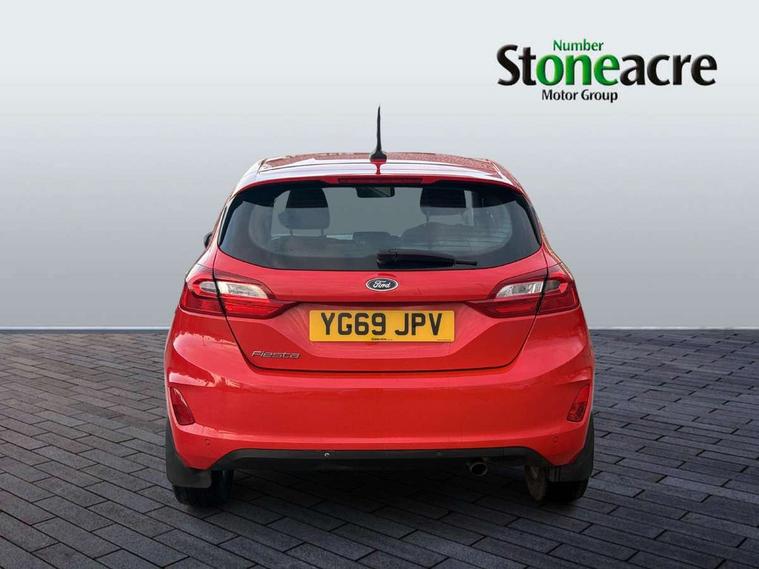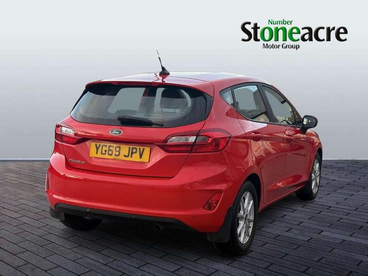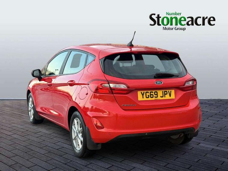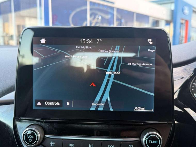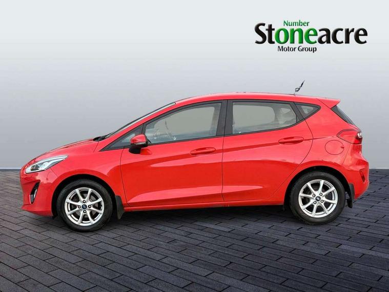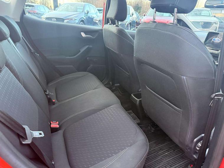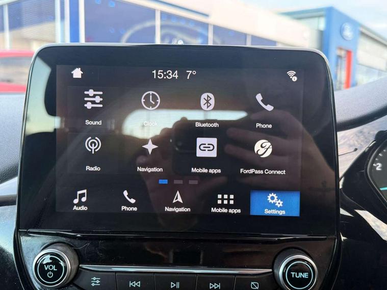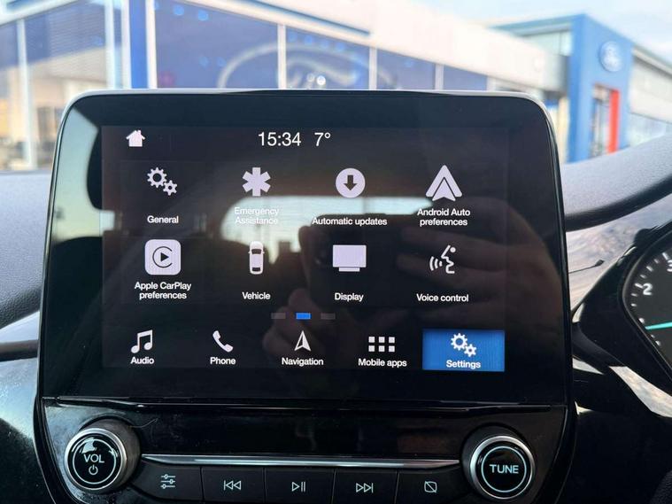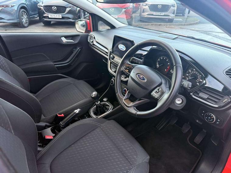 NCAP Pack - Fiesta, MyKey system, Remote central locking & engine immobiliser, Thatcham Cat.1 alarm, 2 USB ports, Auxiliary input socket, DAB Digital radio, Steering wheel mounted controls, 3 point seatbelts on all rear seats, ABS+EBA, Curtain airbags, Driver and passenger airbags, Drivers knee airbag, Electronic stability control with hill start assist, Front passenger airbag deactivation, Front side airbags, Seatbelt warning, Tyre pressure monitoring system, Automatic headlights, Body colour bumpers, Body colour door handles, Body colour electric adjustable heated door mirrors with integral indicators, Body colour rear spoiler, Chrome beltline trim, Cornering front fog lights, Electric front windows/one touch facility, Halogen projector style headlights with static cornering lights + LED daytime running lights, Quickclear heated windscreen, Rear wiper, Tinted glass, Upper front grille chrome surround, 12V Accessory socket in centre console, 3 spoke leather trimmed steering wheel with audio control, 60/40 split folding rear seat, Adjustable head restraints, Ambient lighting, Boot carpet, Chrome inner door handles, Cloth upholstery, Footwell illumination, Front map reading lights, Front seat and rear pockets, Height adjustable driver's seat, Illuminated glovebox, Leather gear knob, Leather trimmed handbrake handle, Load area light, Luxury woven headliner, Manual air conditioning, Overhead console with sunglasses holder, Pollen filter, Rake/reach adjustable steering wheel, Rear centre head restraint, Bluetooth system, Electric power steering, Ford easy fuel, Trip computer,