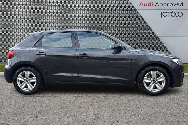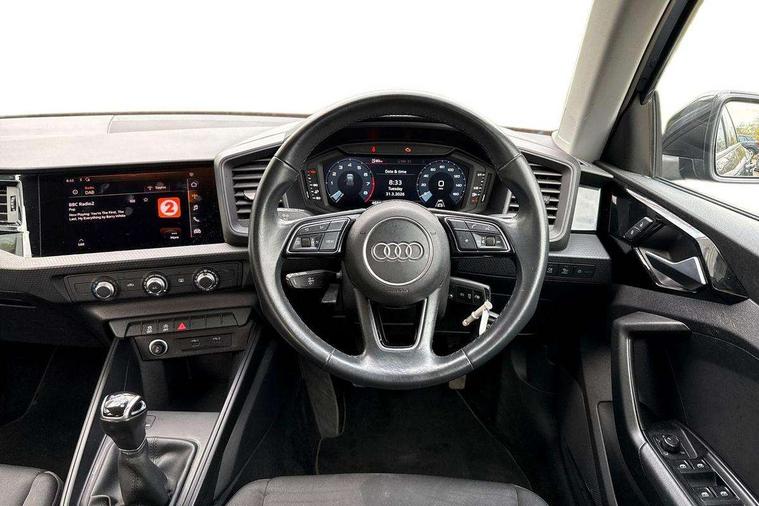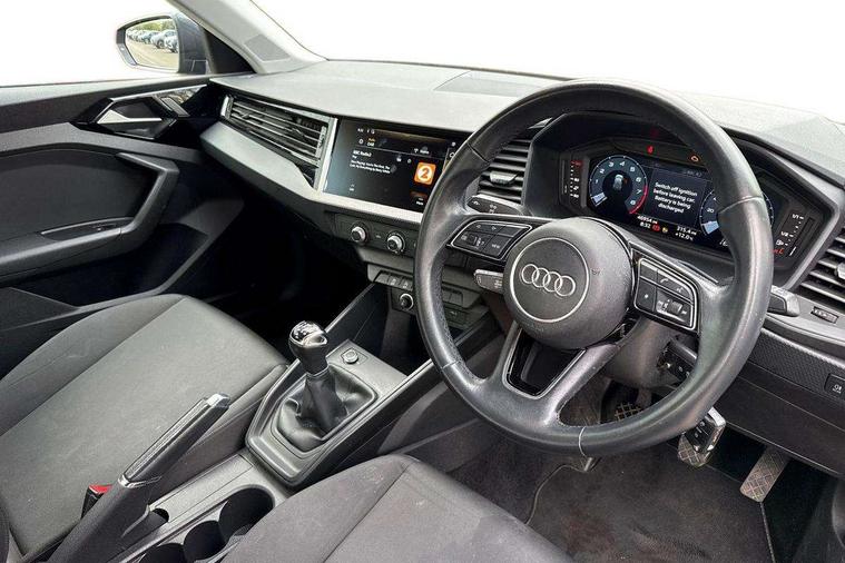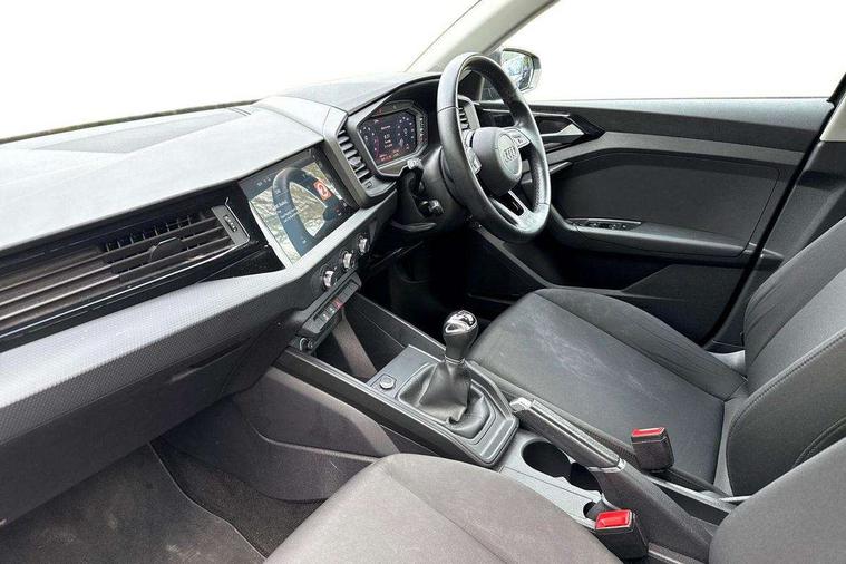 Black inlays polygon structure, Luggage compartment pack - A1, 15" 5 arm design alloy wheels, Anti theft alarm, Anti theft wheel bolts and loose wheel warning, Audi pre-sense front with pedestrain and cyclist recognition, Immobiliser, Remote central locking with 2 foldaway keys, 1 x SDXC card reader, 1 x USB type C and 1 USB type A charging points, 6 passive loudspeakers, DAB Digital radio, MMI radio plus with 8.8" colour MMI display screen and MMI touch, 3x3 point rear seatbelts, Brake assist function, Driver and front passenger airbag with front side and head airbags, Electronic Stability Control including ABS, EBD, ASR and EDL, Front and rear seatbelt reminder, Front passenger airbag deactivation switch, Hill hold assist, Seatbelt height adjustment for front seats, Seatbelt monitoring, Tyre pressure warning light, Warning triangle and first aid kit, Auto dimming rear view mirror, Body coloured bumpers, Body coloured door mirrors, Electric front and rear windows, Electrically adjustable, heated, folding door mirrors with integrated LED side indicator, Front side air inlets with front spoiler lip and rear diffuser in matt black grained, Heat insulating glass windscreen and side windows, Heated rear windscreen, LED headlights with LED rear lights + dynamic rear indicators + headlight adjustment and high beam, turning light + LED daytime running lights, Radiator grille in matt black, Rain and light sensors, Rear fog lights, Rear wiper, 12V socket in centre console with two cup holders, 3 rear seats with headrests, 3 spoke leather multifunction plus steering wheel, 40:60 Split folding rear seat or folded fully, Air vents, door handle recesses and centre console in black, Delta cloth upholstery, Driver and passenger seat with manual height adjust with forward and backwards adjustment, Front head restraints, Front/rear floor mats, ISOFIX child seat mounting for front passenger and outer rear seats including top tether attachment point of outer rear seats, Leather gear knob with aluminium trim, Leatherette handbrake grip, Luggage compartment light with front and rear reading lights, Manual air conditioning, Titanium grey cloth headlining, 10.25" Digital instrument cluster display classis style instrument dials + speed, odometer, time, outside temperature, telephone menu + fuel level warning, Audi connect safety emergency and service including E-call, Audi smartphone interface with connect compatible smartphone via USB directly MMI display + Nav, music, third party apps controlled via MMI controller, Automatic start/stop system, Bluetooth interface, Driver's information system, Electromechanical power steering, Lane departure warning system, Service interval indicator, Speed limiter, Voice control system, Washer fluid level indicator, Dynamic suspension,