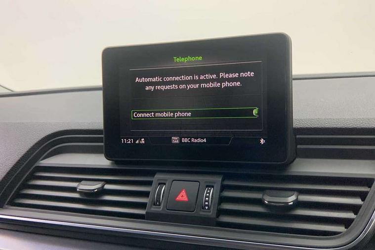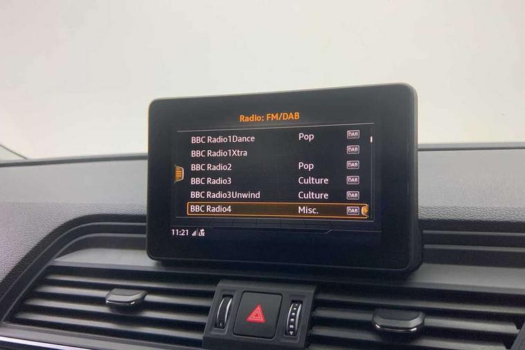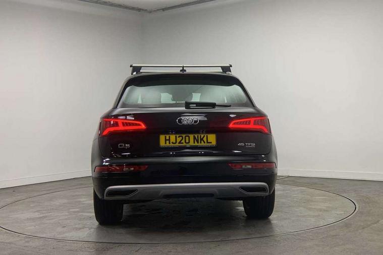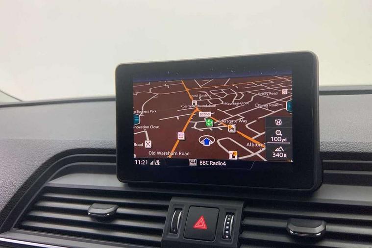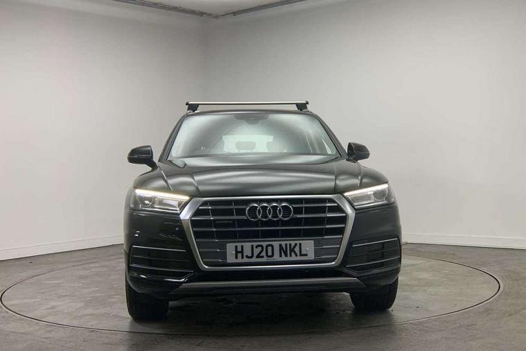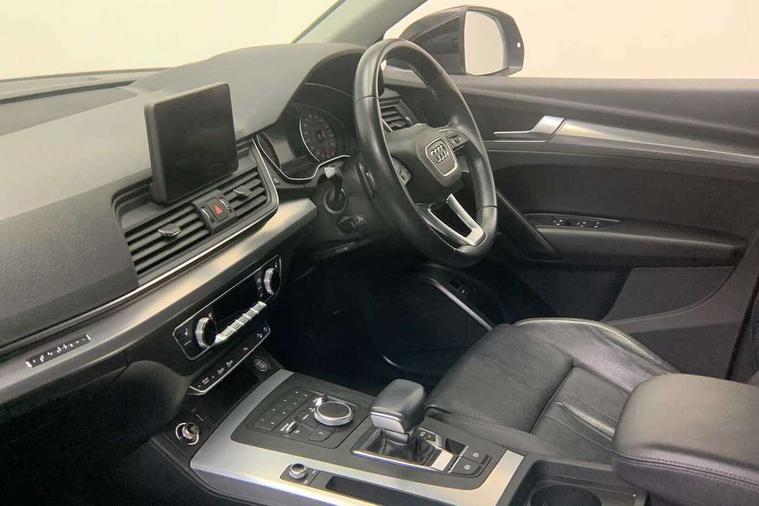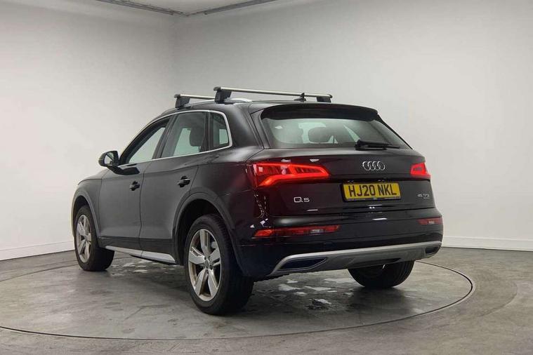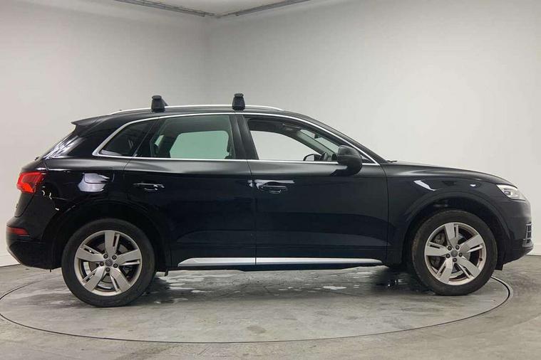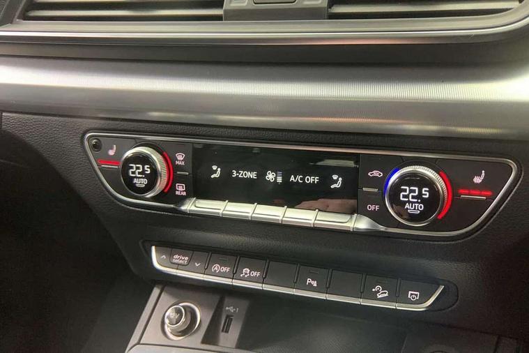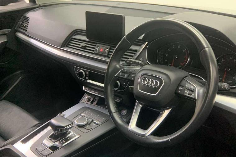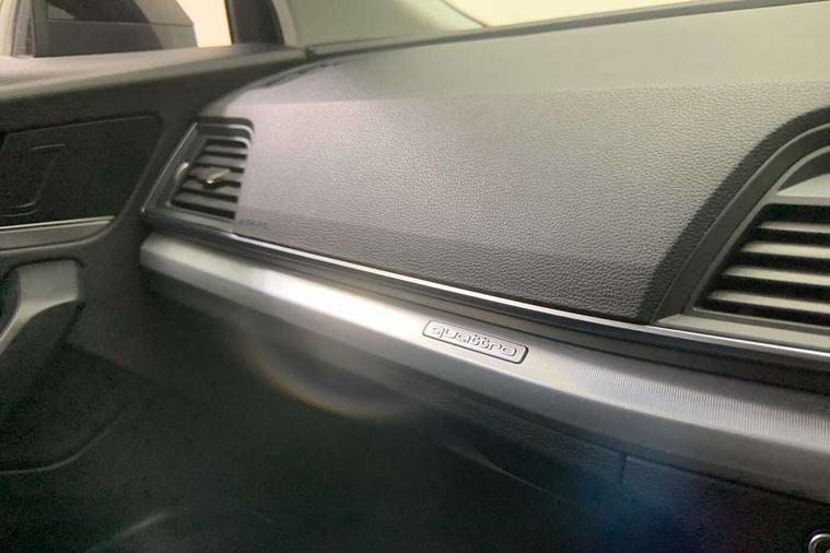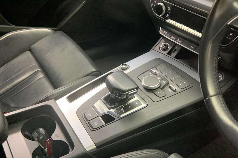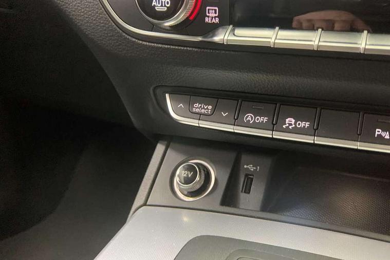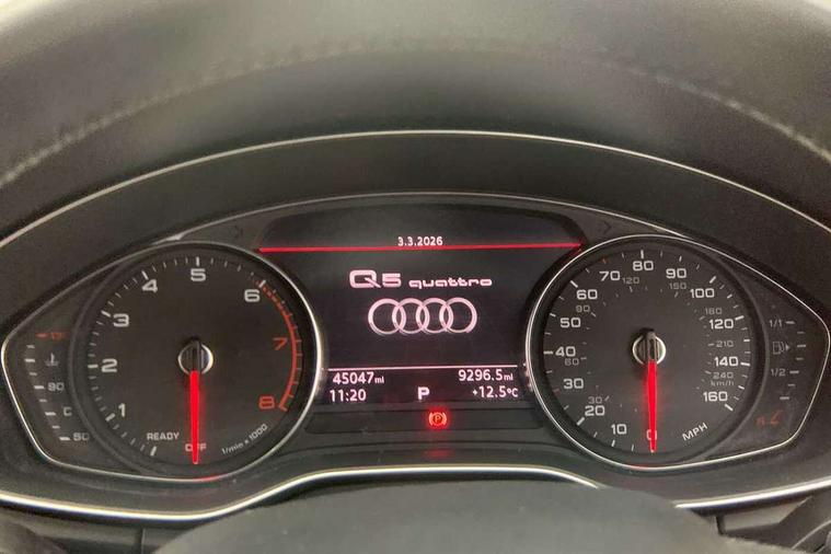 Aluminium rhombus inlay, High gloss pack - Q5, Non Smokers pack, Anti theft alarm, Anti-theft wheel bolts, Keyless Go access/ignition system, Remote central locking, 2x SD card slot, CD player, DAB Digital radio, MMI radio plus with 7" colour MMI screen and MMI controller, 3 point seatbelts on all seats, 6 airbags - Driver, front passenger, curtain and side airbags, Electromechanical parking brake, Electronic stabilisation control including ABS, ASR and EDL, Front passenger airbag deactivation, Hill descent control, Hill hold assist, Multi collision brake assist, Pop-up bonnet for pedestrian protection, Pre sense city, Seat belt force limiter, Seatbelt monitoring, Tyre pressure warning, Warning triangle and first aid kit, Acoustic windscreen, Air inlets in matt titanium black with blades in matt aluminium silver, Aluminium roof rails, Auto dimming rear view mirror, Automatic headlight levelling, Body colour bumpers, Body colour door mirrors, Chrome exhaust tailpipe, Electric adjustable/heated/folding door mirrors, Front and rear electric windows, LED rear lights, Light and rain sensor for auto activation of lights and windscreen wipers, Loading sill protector in stainless steel, Matt selenite silver underbody protection, Privacy glass with front acoustic glazing, Rear diffuser strip in selenite silver, Rear spoiler, Rear wiper, Side skirts in matt selenite silver, Twilight grey matt radiator grille with matt aluminium horizontal chrome struts, Xenon headlights with LED Daytime running light, 2 x USB charging port with aux input socket, 3 rear headrests, 3 spoke high multi-function leather steering wheel with shift paddles, 40:20:40 split folding rear seat with rear centre armrest, Cloth headlining, Deluxe 3 zone electronic climate control, Door sills trims with aluminium inlays, Front centre armrest, Front/rear floor mats, Heated front seats, Height adjustable front head restraints, Height/reach adjustable steering column, ISOFIX child seat mounting and top tether, Luggage compartment carpet, Manual seat adjustment with 4-way electric lumbar support, Removable luggage compartment floor, Sunvisors with vanity mirrors, Tool kit, Trunk roller cover, 7" Colour driver information system, Audi connect safety and service (e-call), Audi drive select, Audi parking system plus with front and rear sensors, Audi Pre sense collision avoidance, Audi smartphone interface, Automatic start-stop system with coasting functionality and efficiency programme, Cruise control + speed limiter, Electro - mechanical power assisted steering, MMI Navigation, Mobile telephone preparation - bluetooth interface, Power tailgate, Service interval indicator, Voice control system, Dynamic suspension, Quattro on demand,